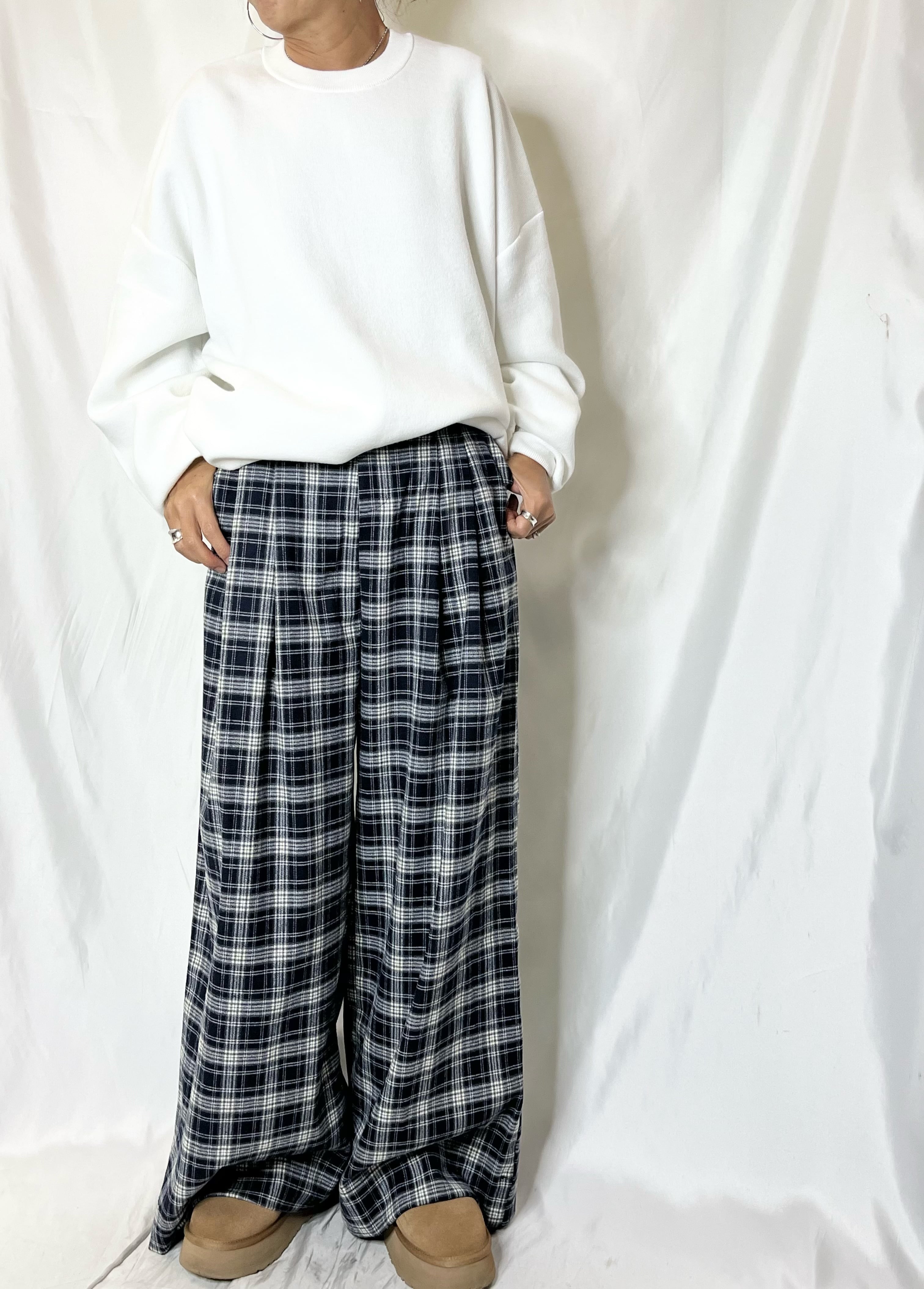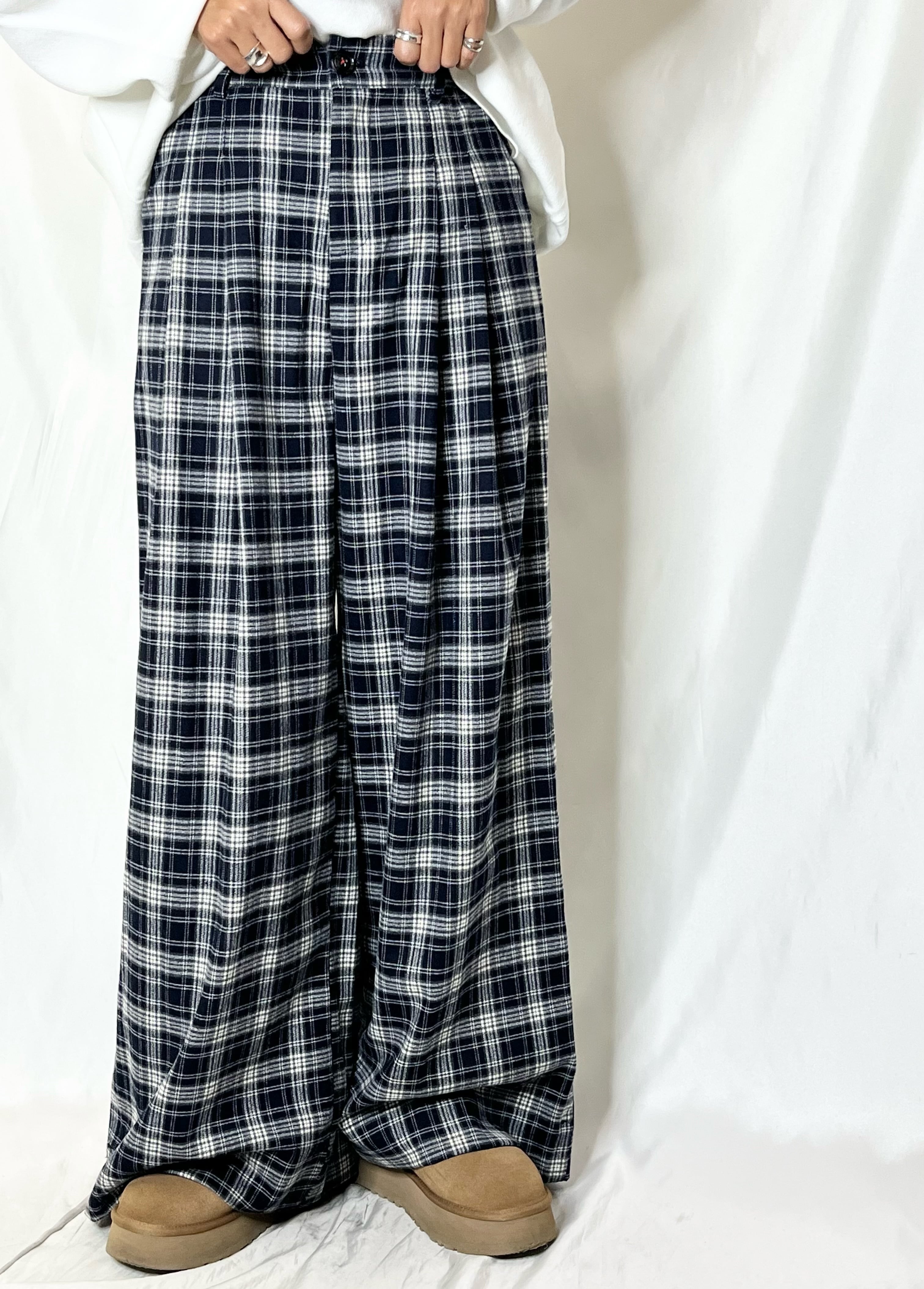 チェックタックワイドパンツ