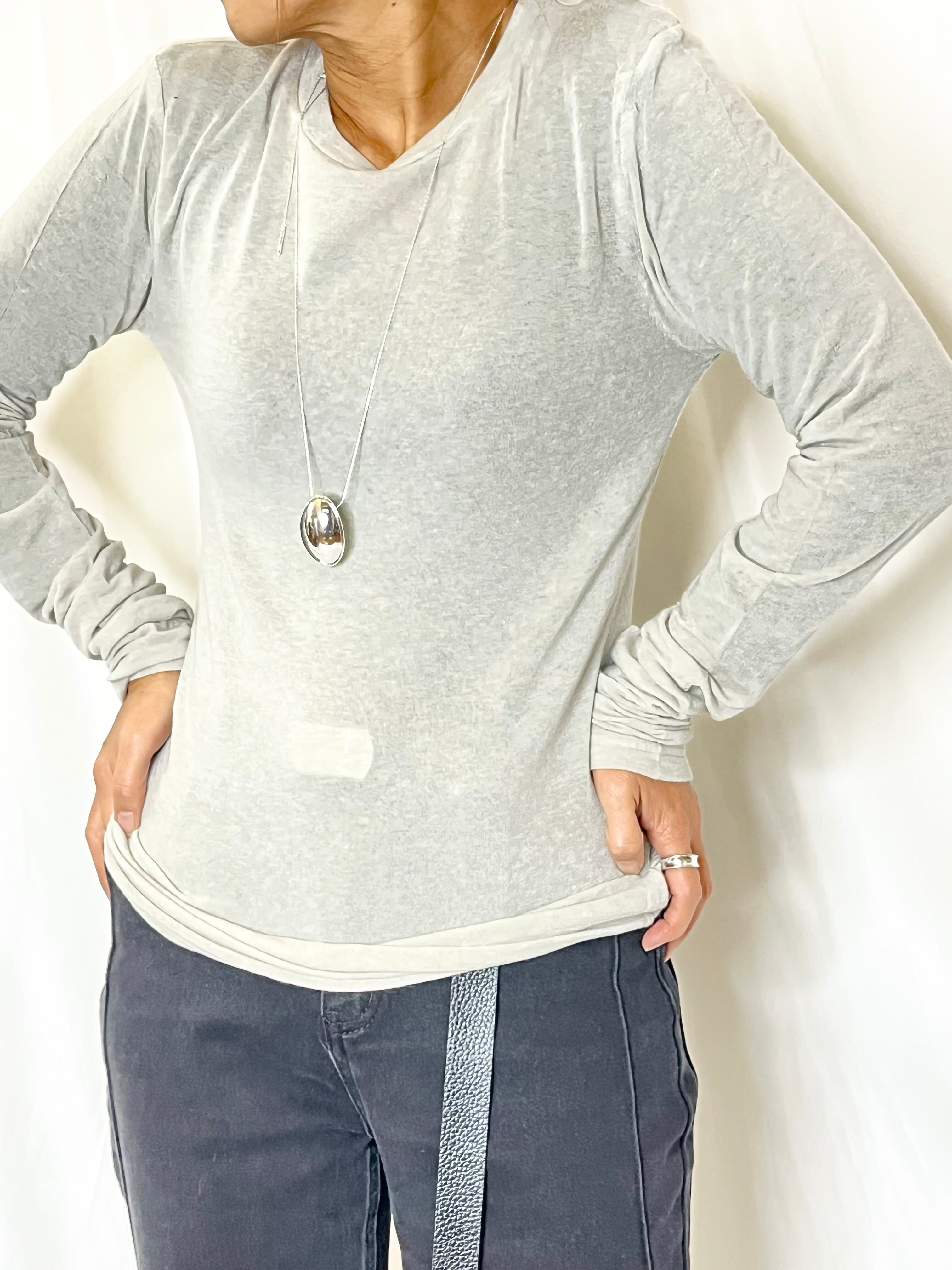 着丈、袖丈を長くし上から着るニット等からのチラ見せもし易くレイヤードにおすすめです。