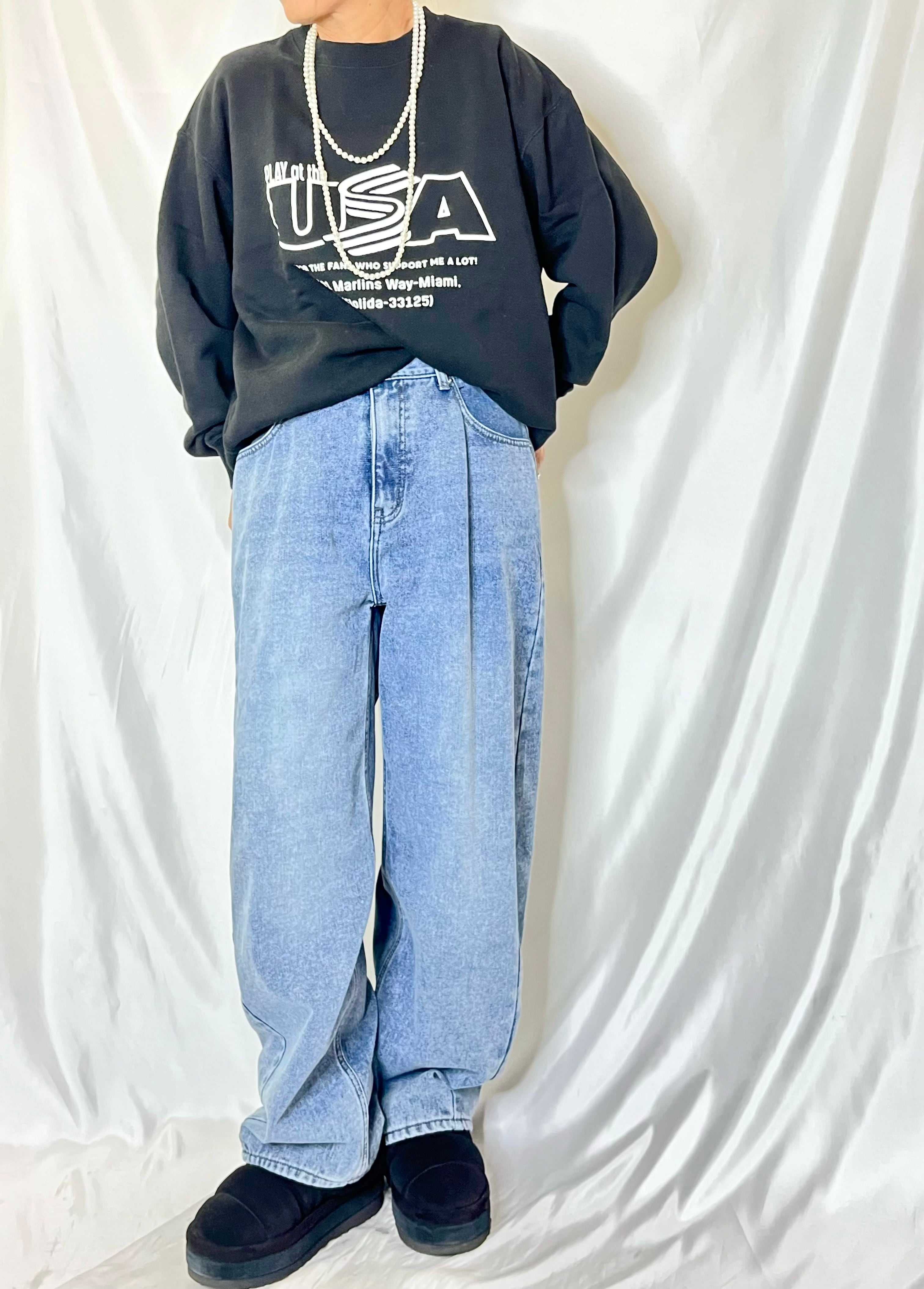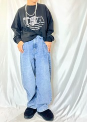 ゆったりしたカーブシルエットがおしゃれなプリーチカラーの暖かデニム。
