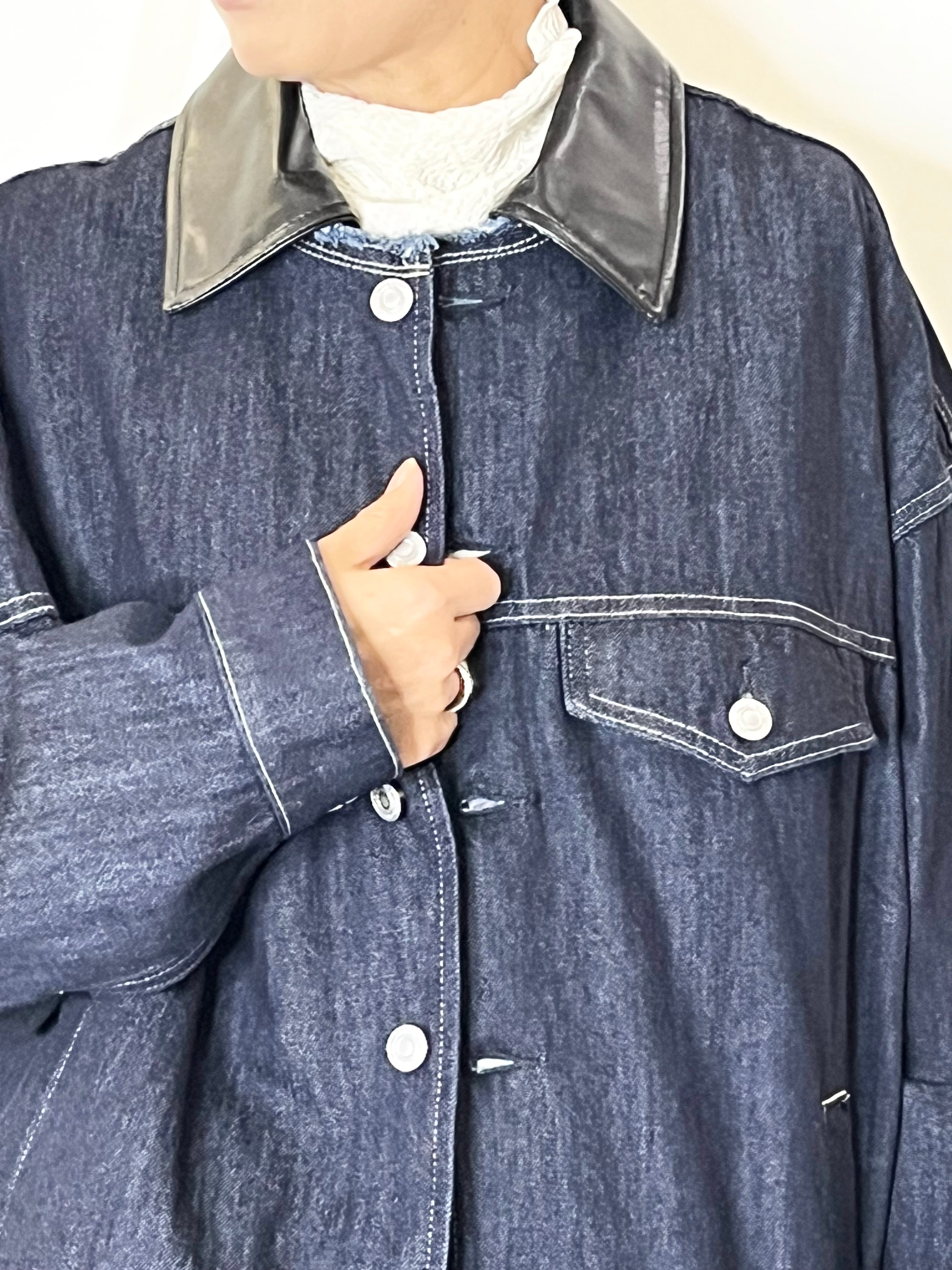 2way襟レザーデニムジャケット