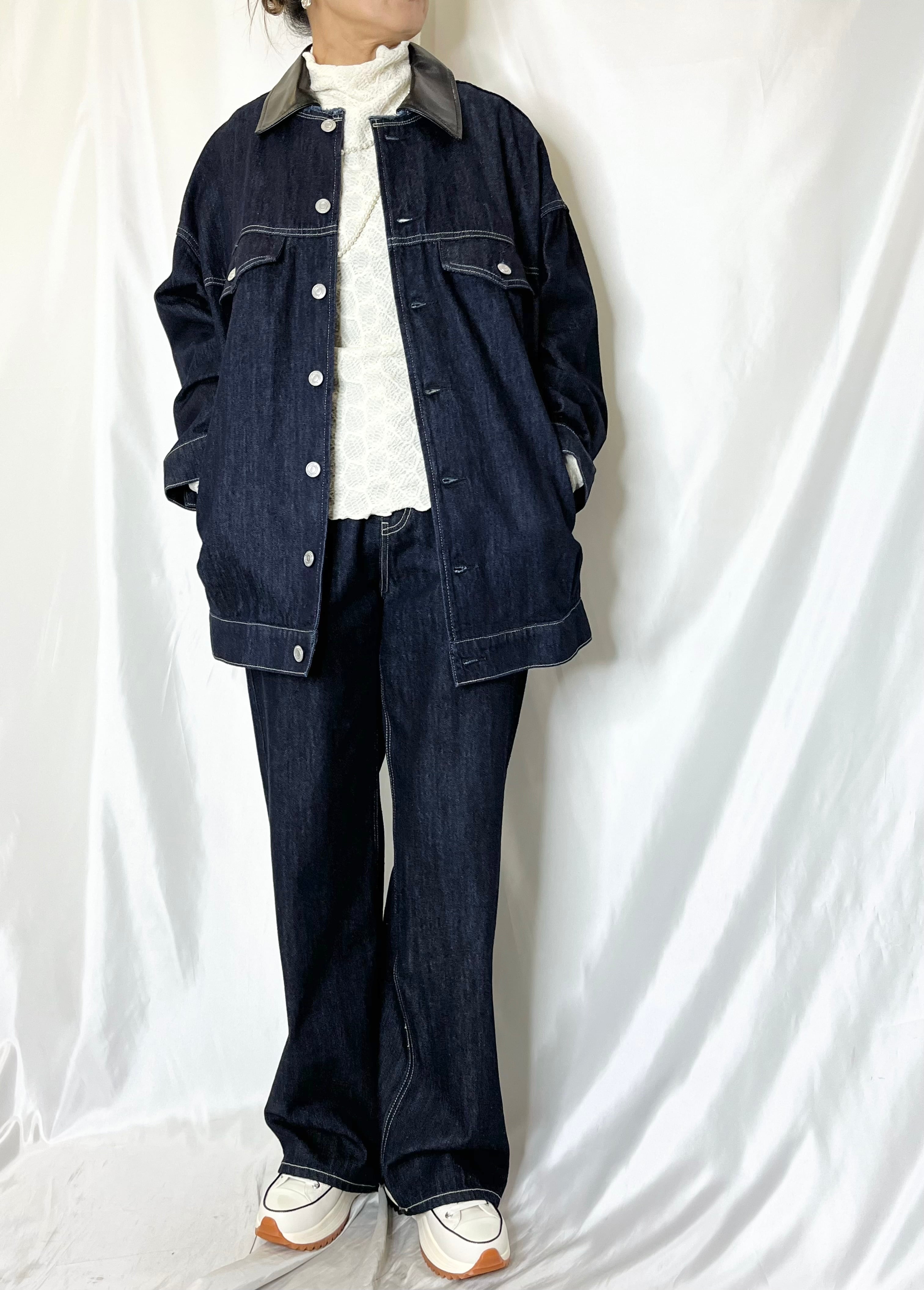 cafune 2way襟レザーデニムジャケット