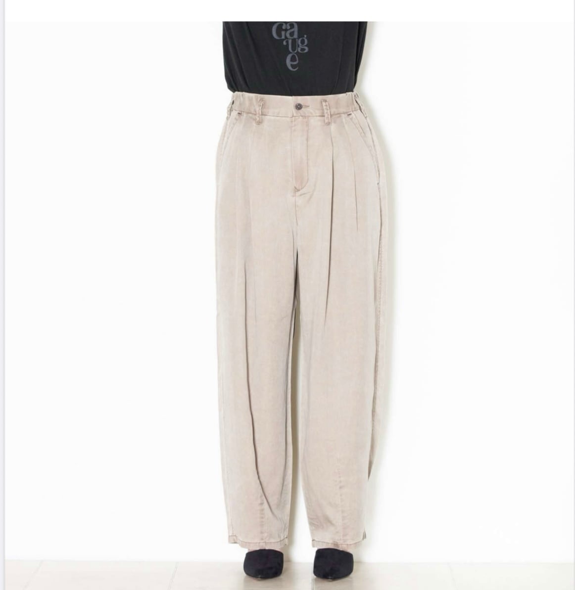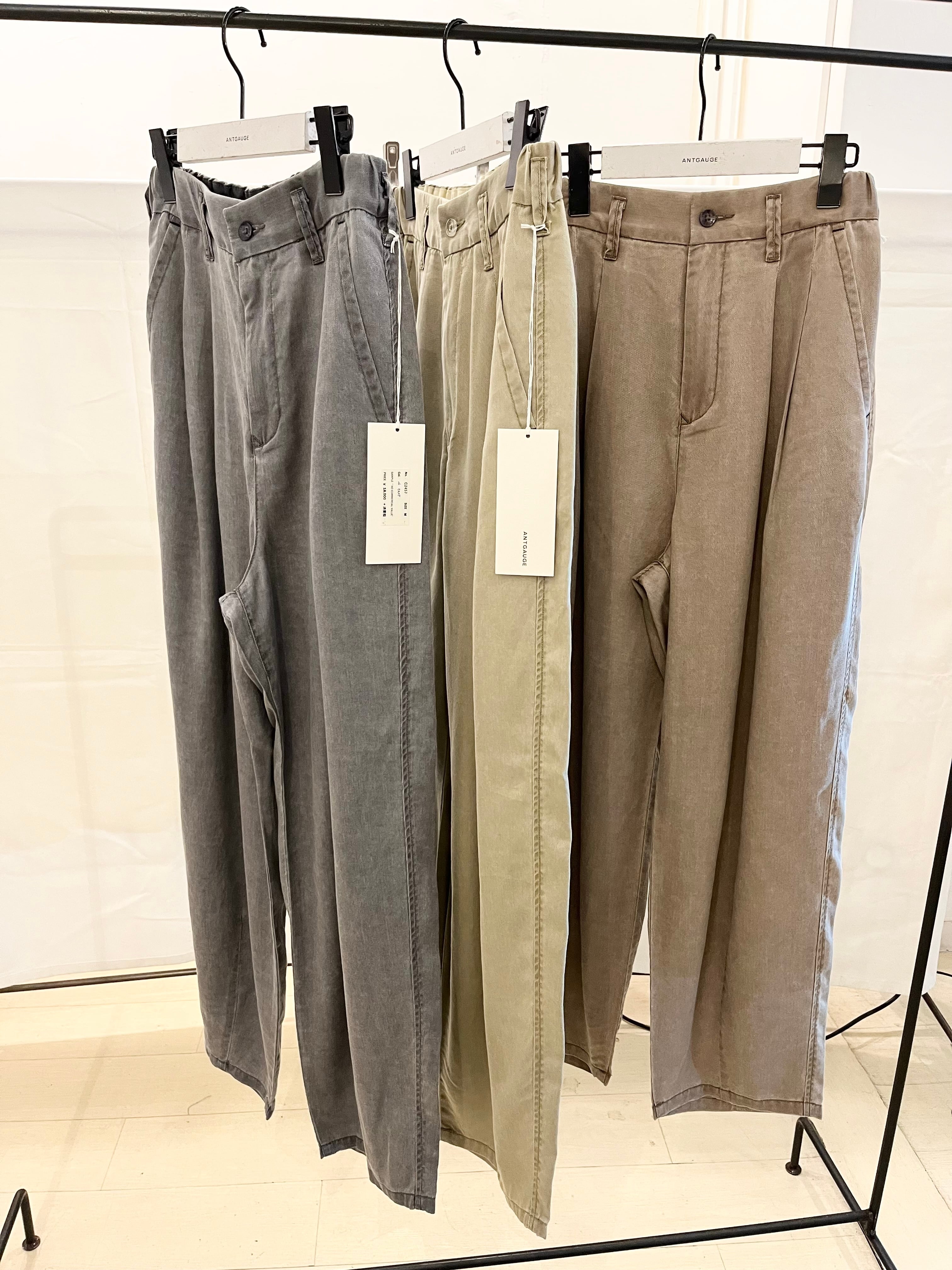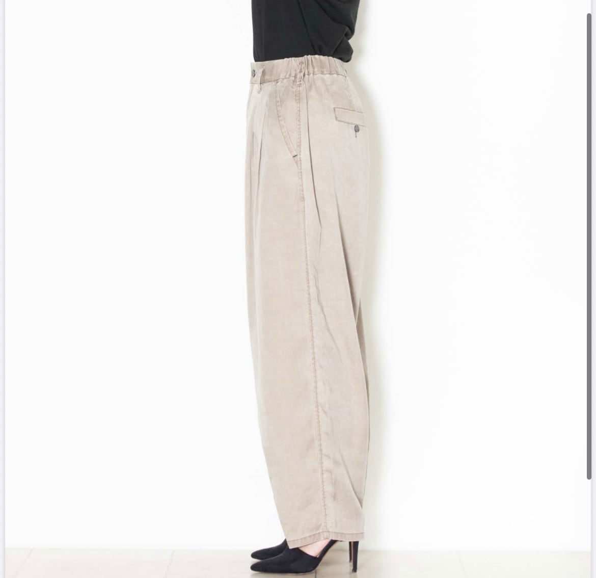 深めに入れたタックが腰回りに立体的なゆとりを作りラフで、こなれた雰囲気なトラウザー。