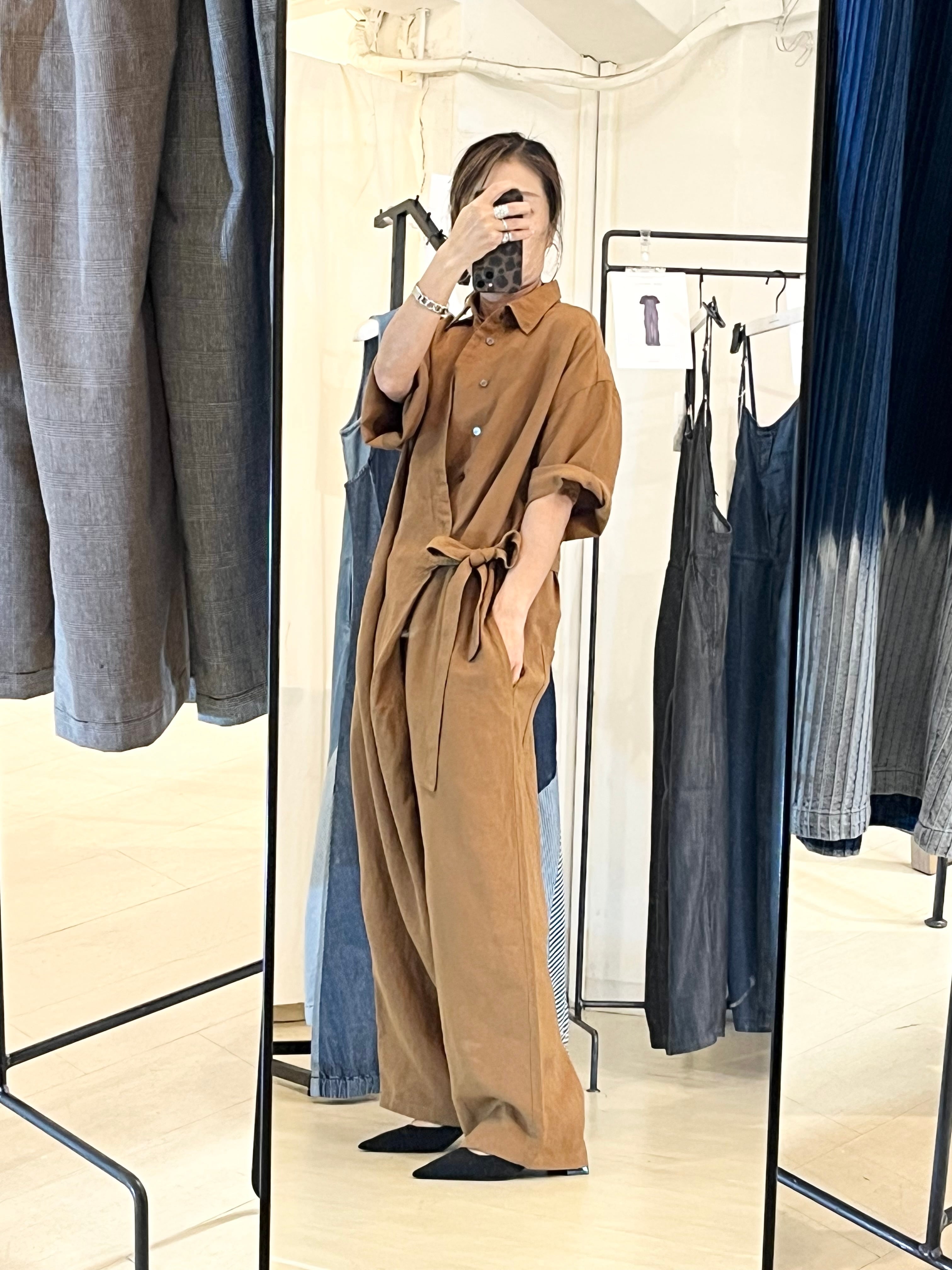 ウエストは紐の結び方次第でしっかりウエストマークした着こなしからルーズな着用までアレンジ可能。