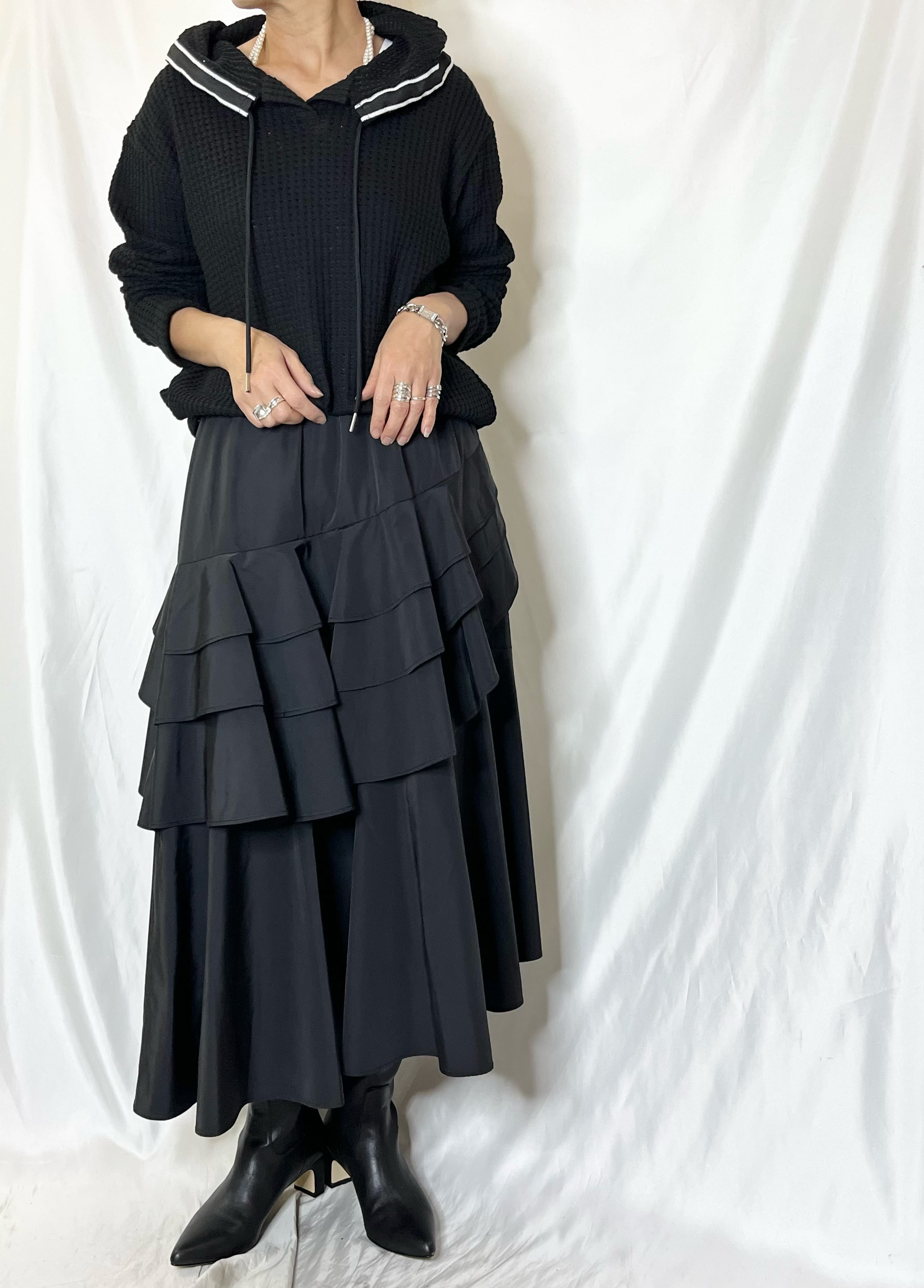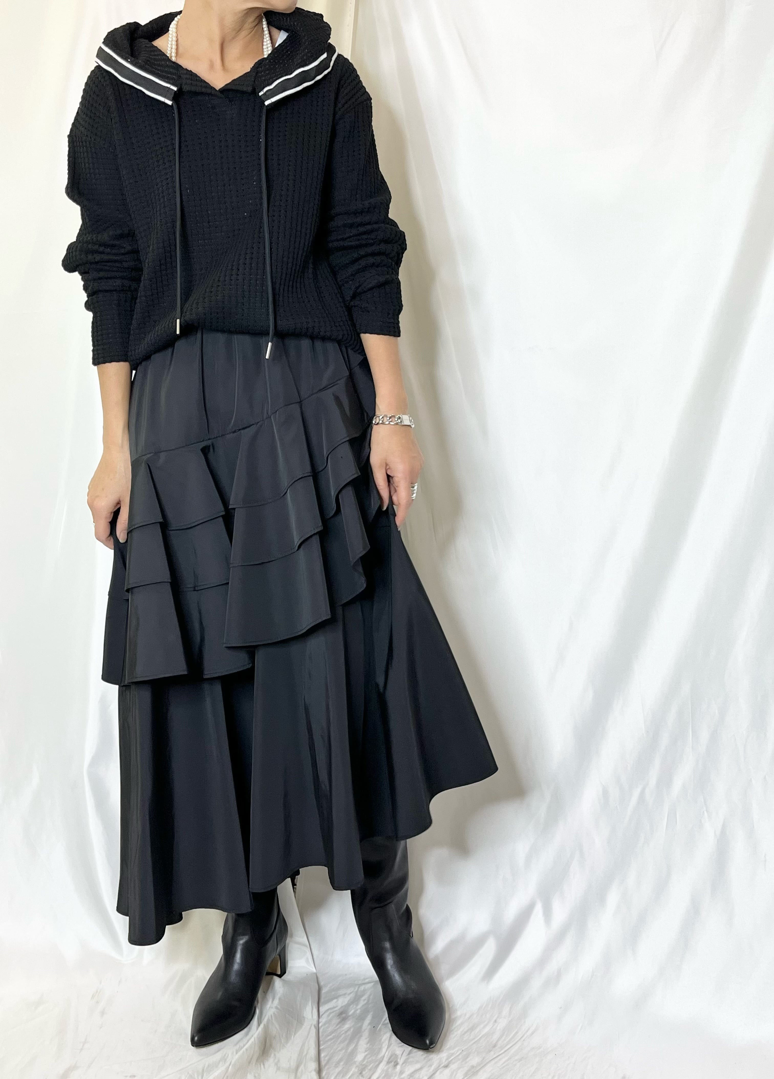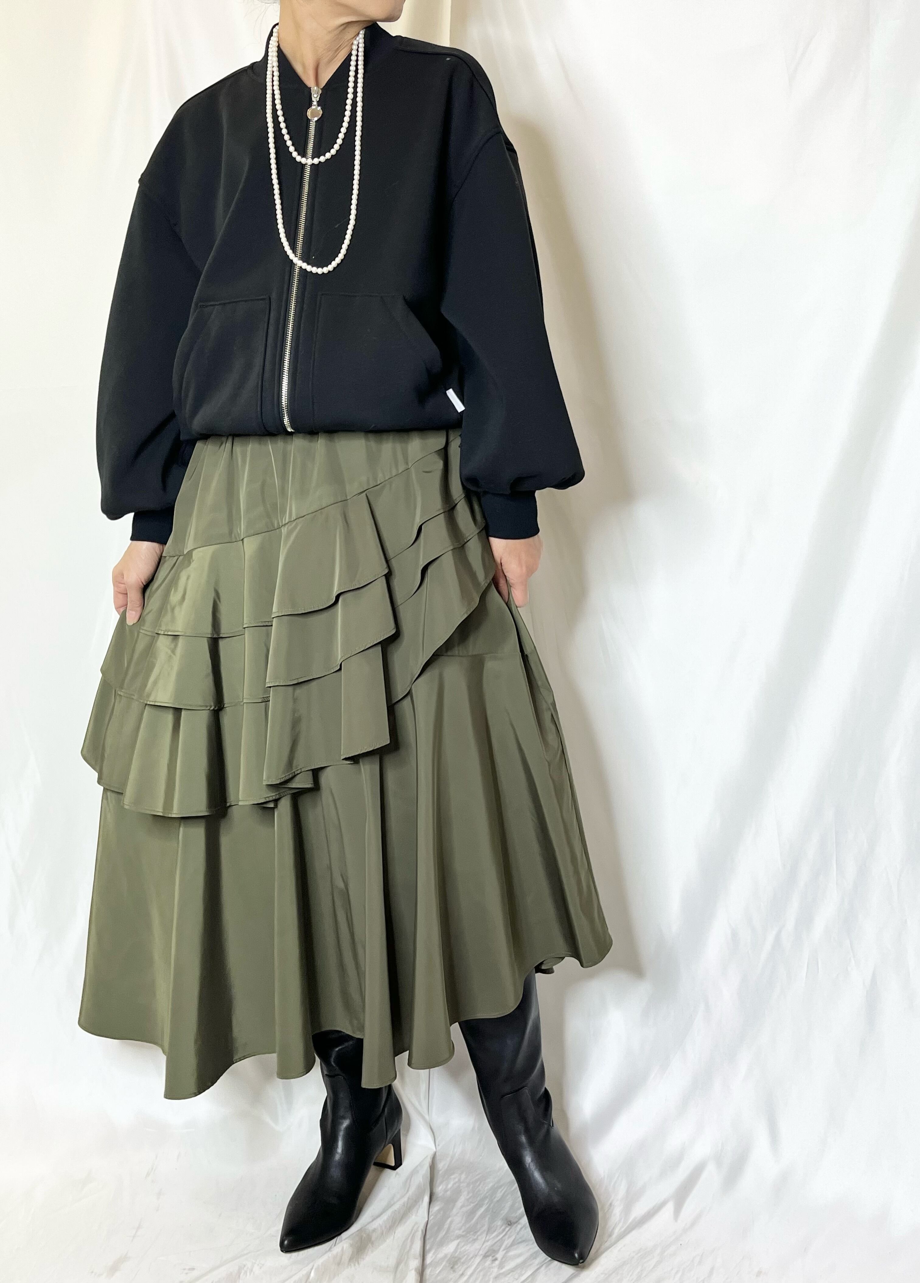 シーズンレスに着用できてニットやスウェット、春夏にはTシャツともオシャレに決まるオススメスカートです!