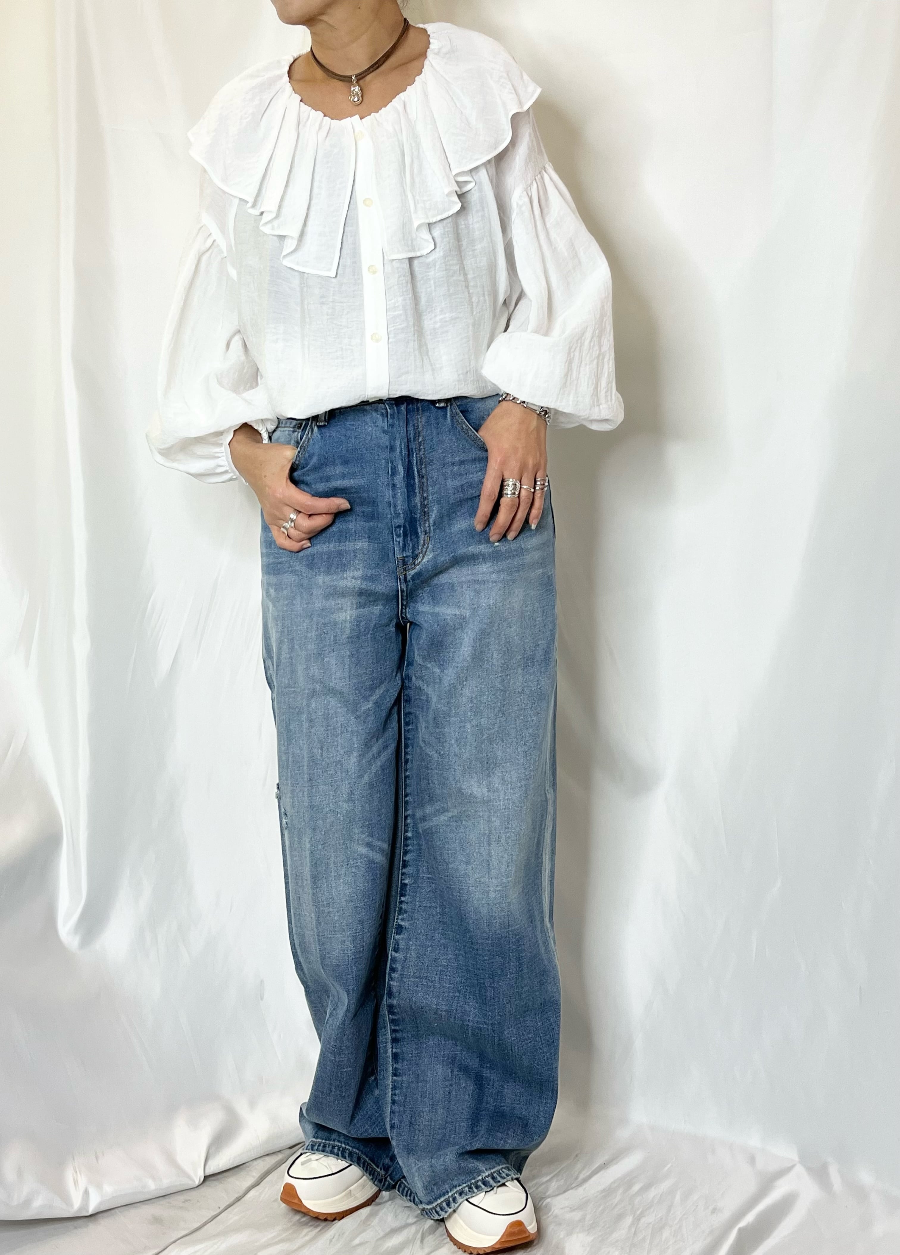 可愛いデザインですが、デニムやサロペットと合わせるのがオススメ!