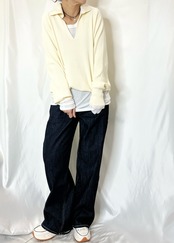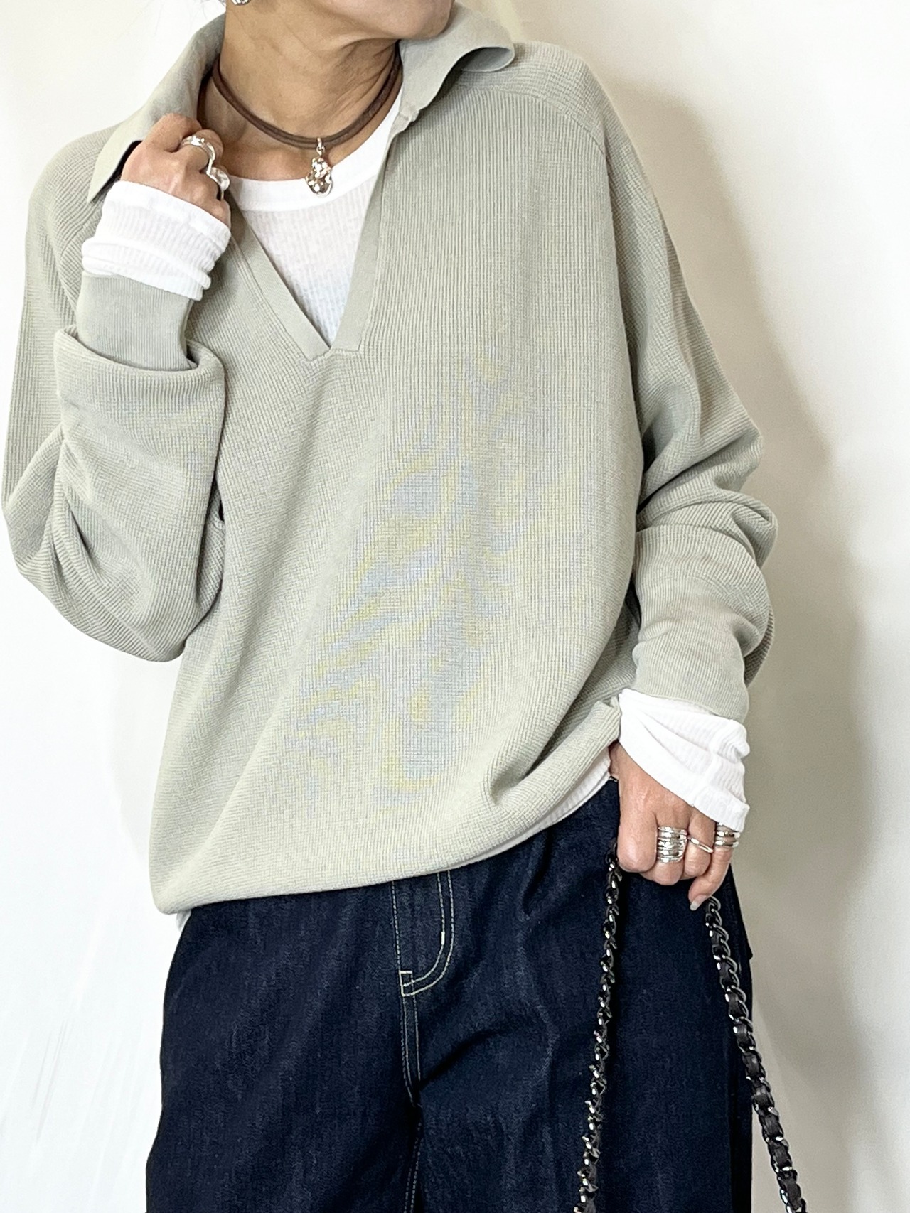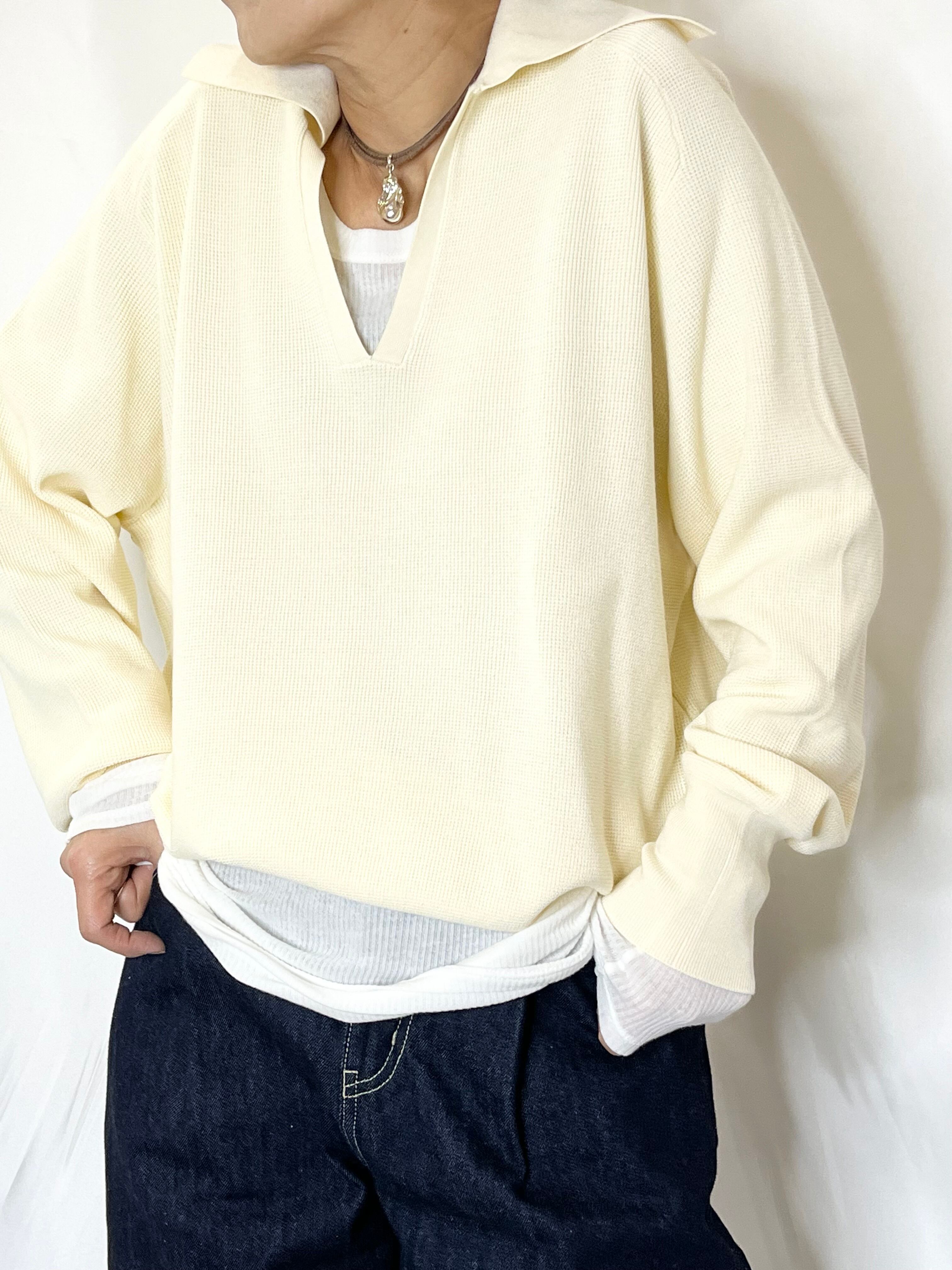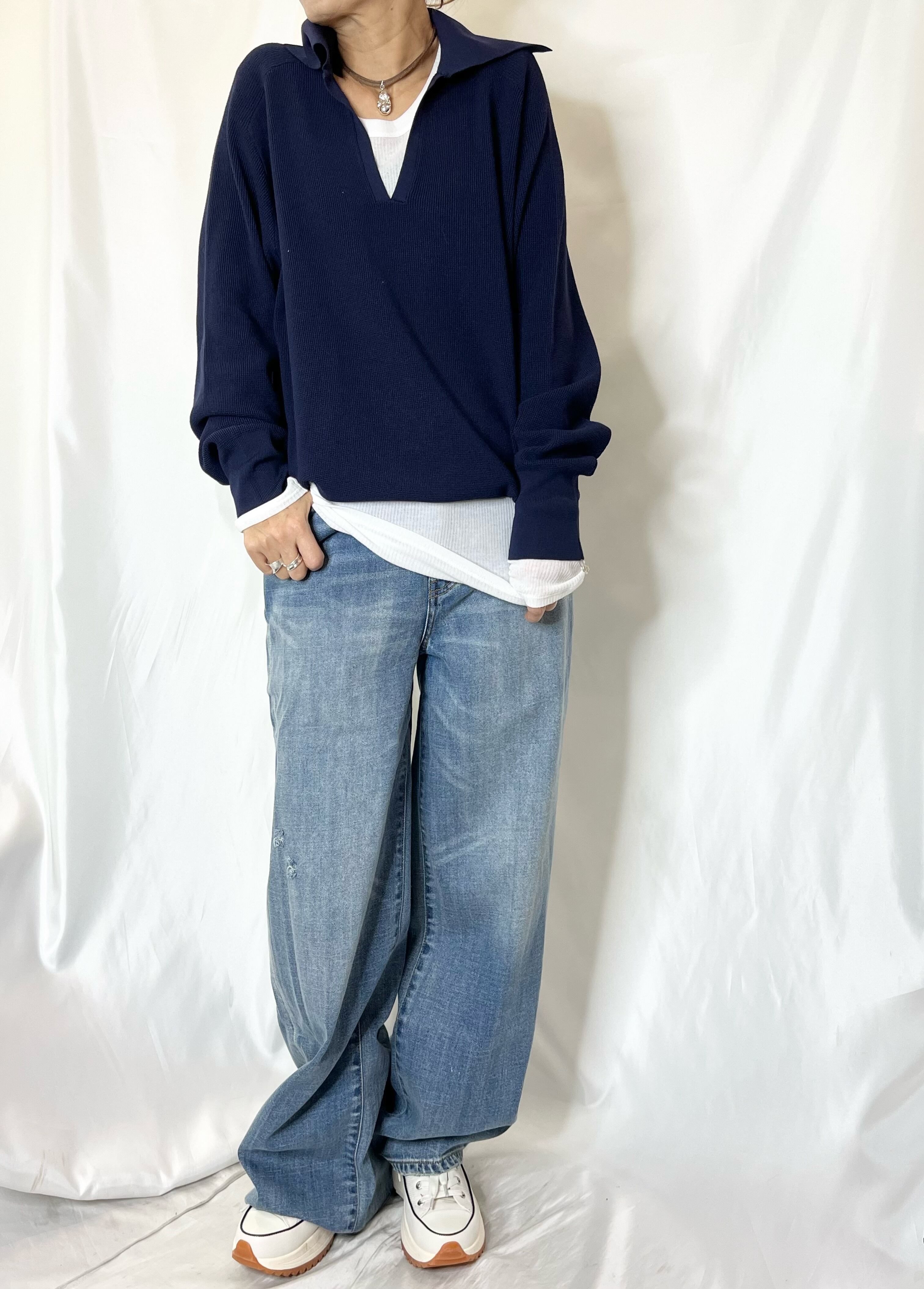 スキッパー襟なのでシャツやロンTとの重ね着コーデも楽しめます♪