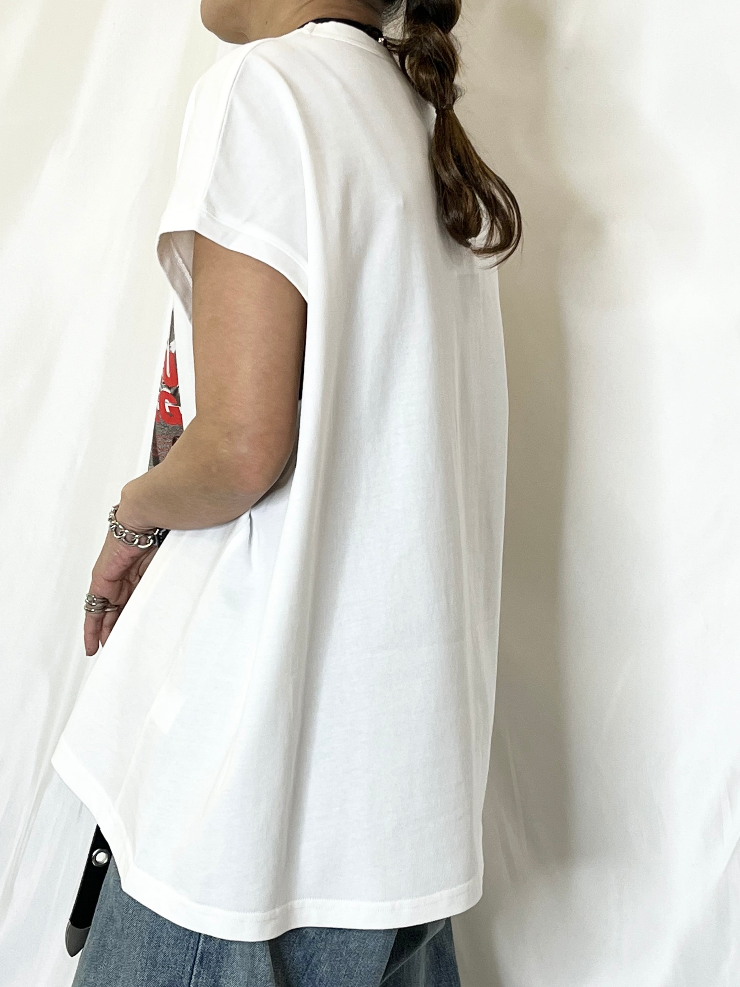 さらに、パウダー加工・リンス洗い・染み込み プリント・半ラバープリントなど複数の加工を 重ね、アメカジではなく“パリジェンヌ風”の洗 練されたヴィンテージTシャツに仕上げました。