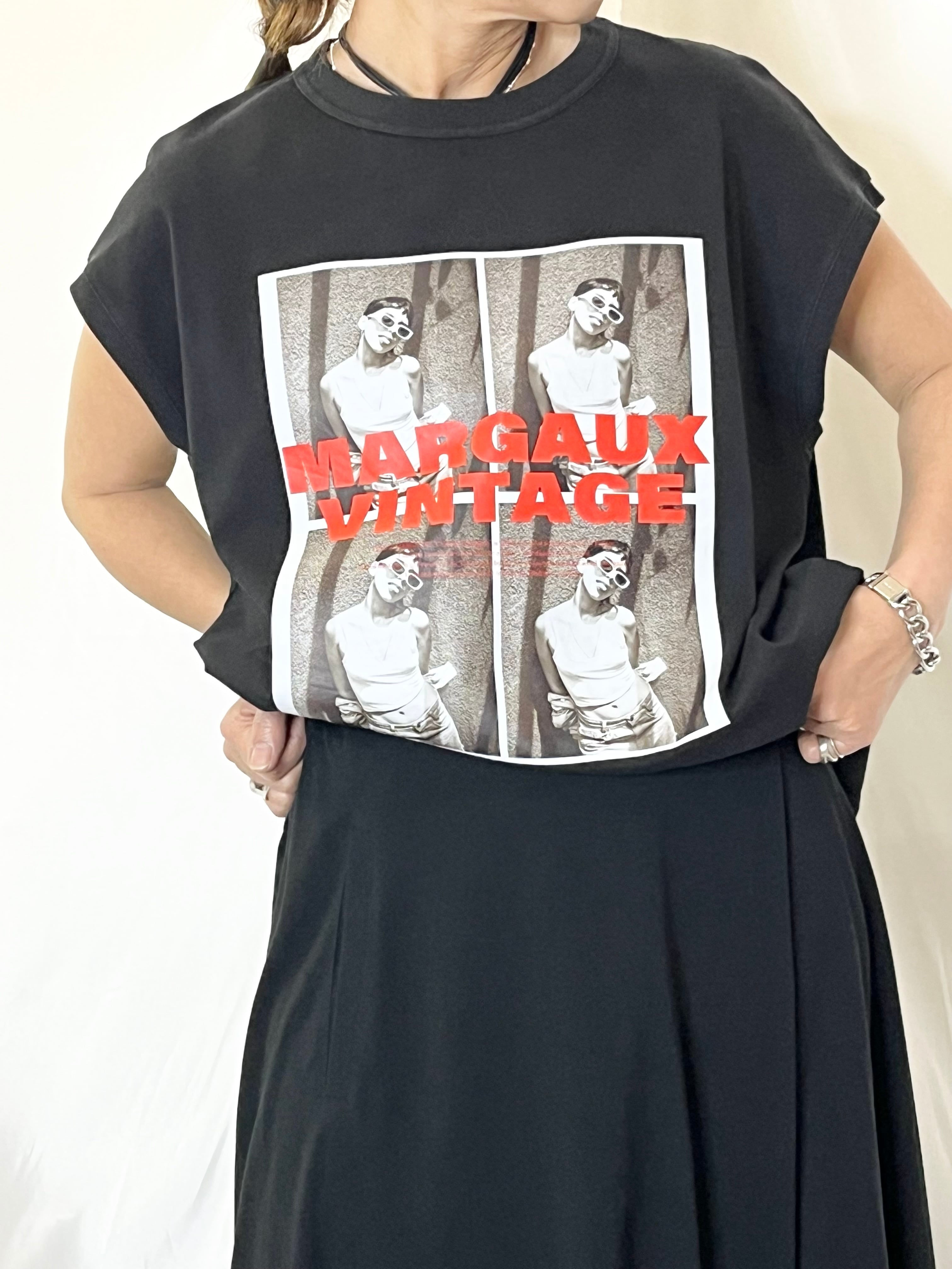 MARGAUX VINTAGE 転写プリントノースリーブTEE