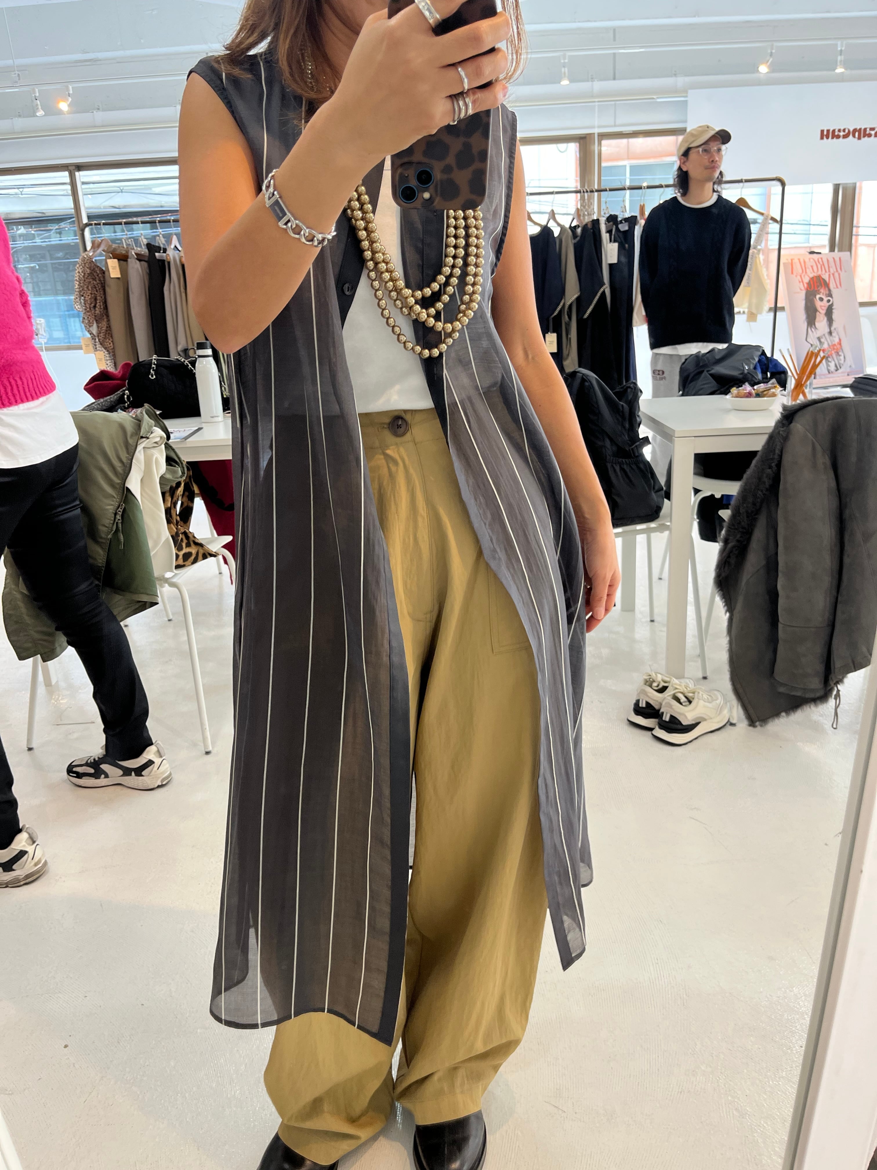 MARGAUX VINTAGE シアーストライプノースリPO