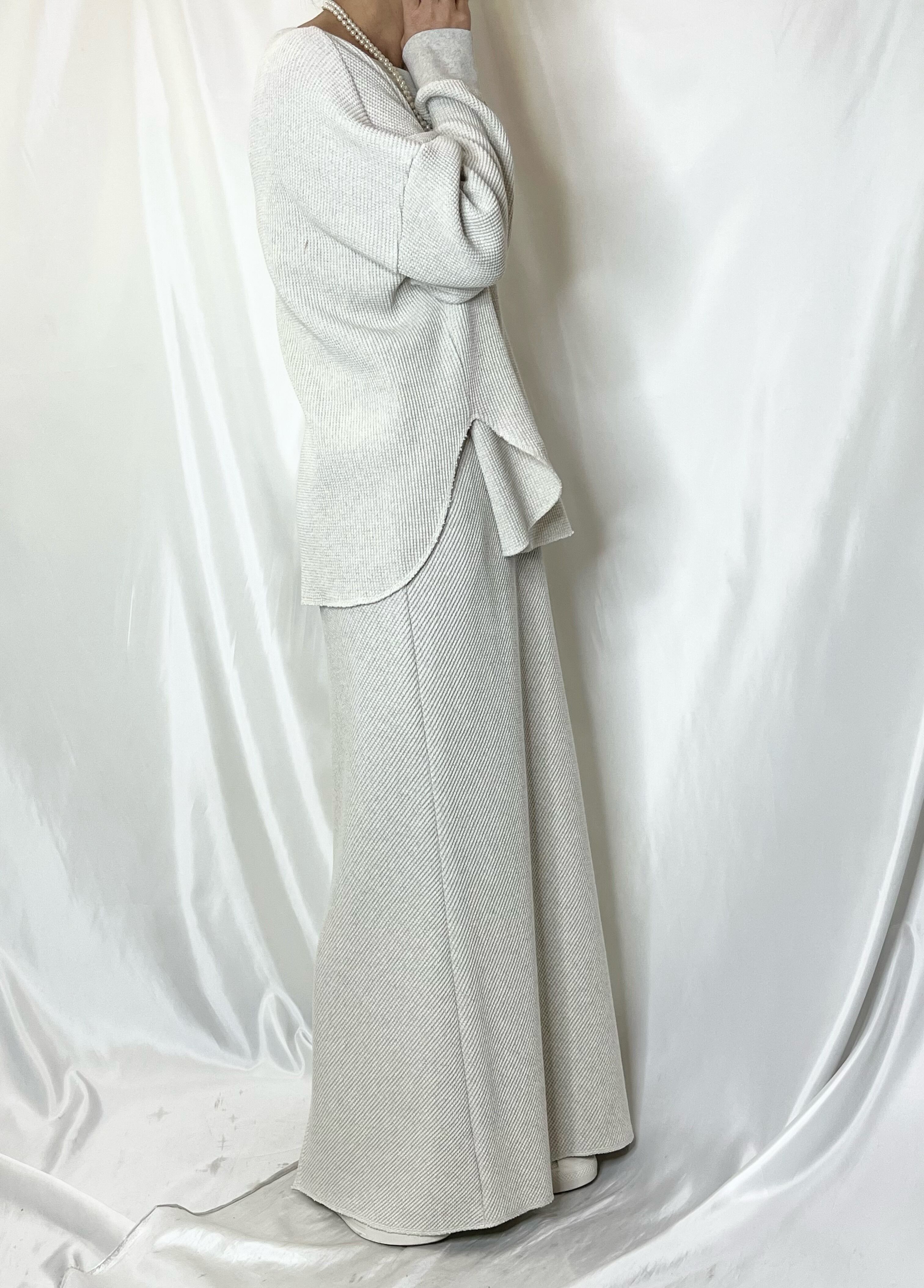 スウェットほどラフにならず、程よくきちんと感のある一枚。単品使いはもちろん同素材のスカートと合わせた春らしいセットアップスタイルもおすすめです。
