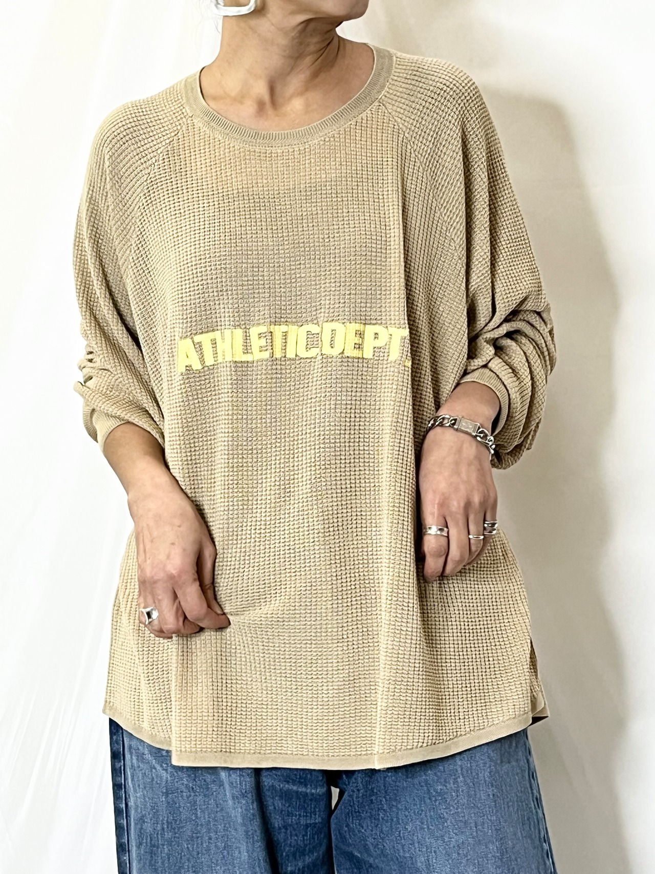 ニットワッフル編みドルマンスリーブ