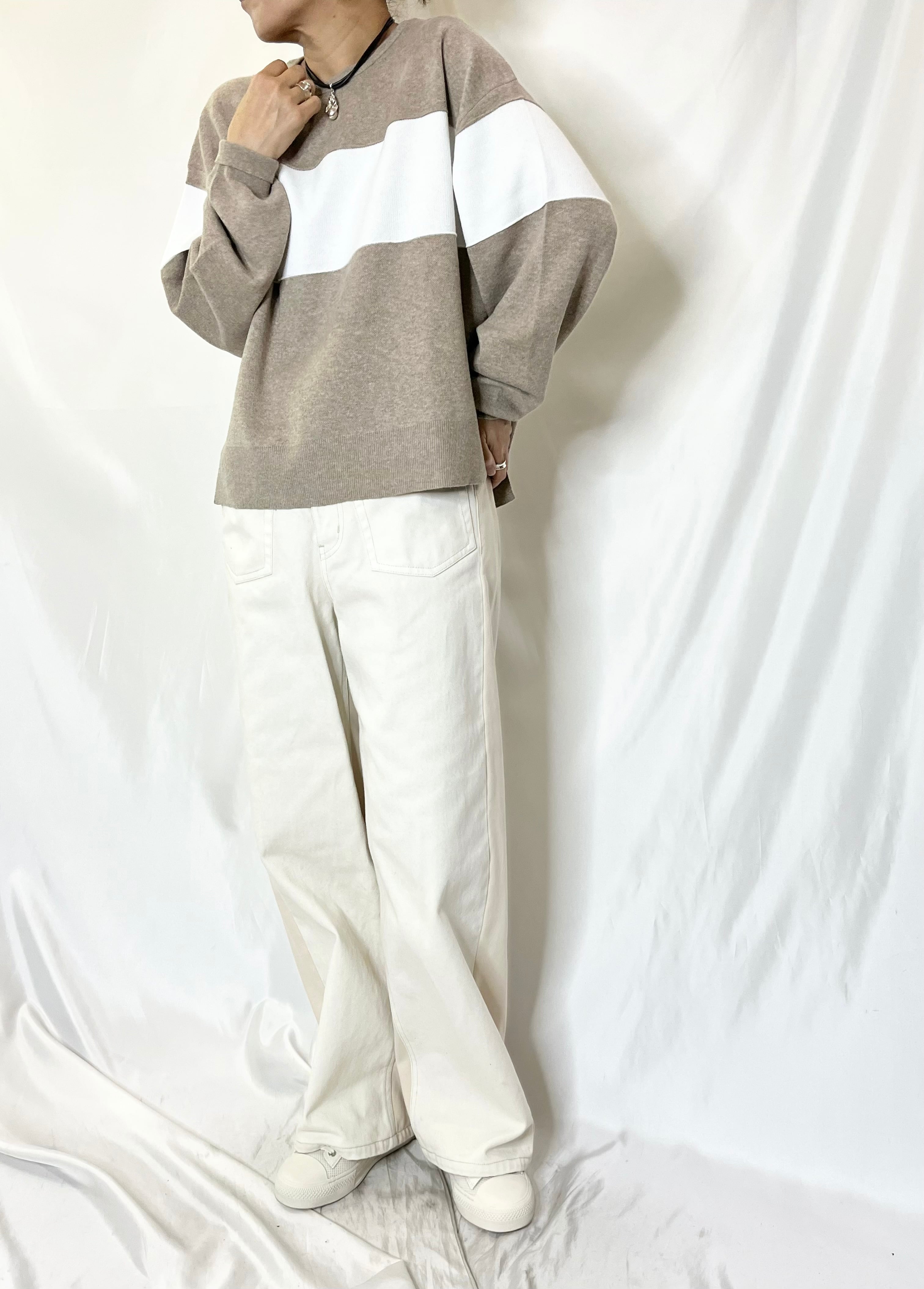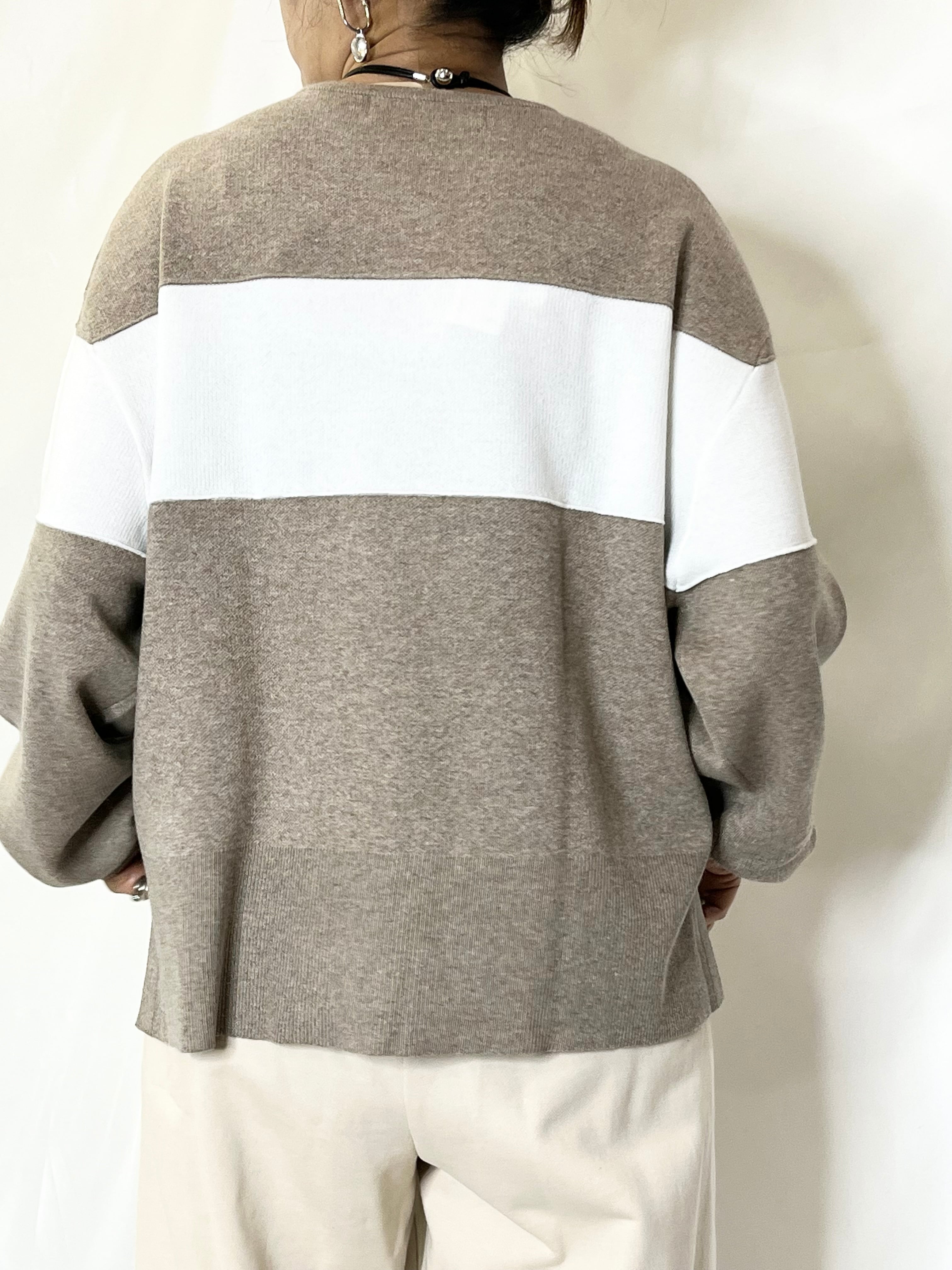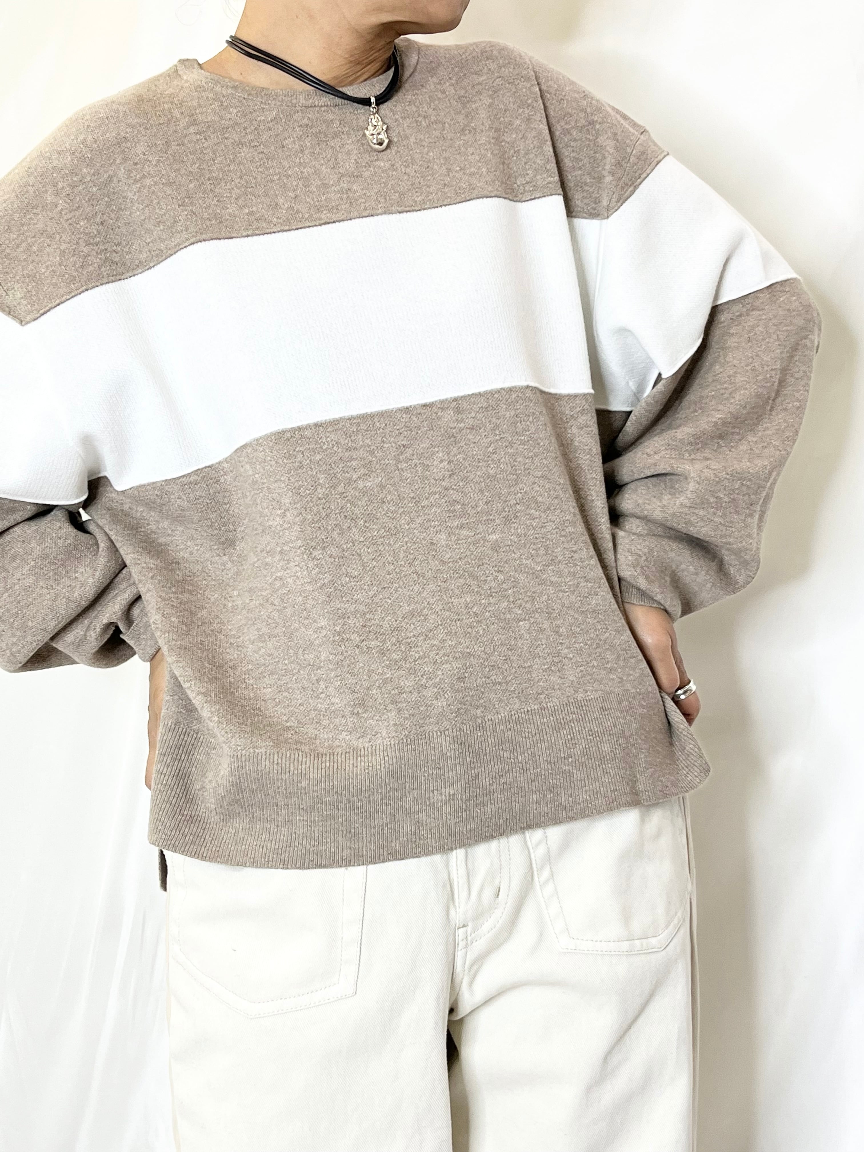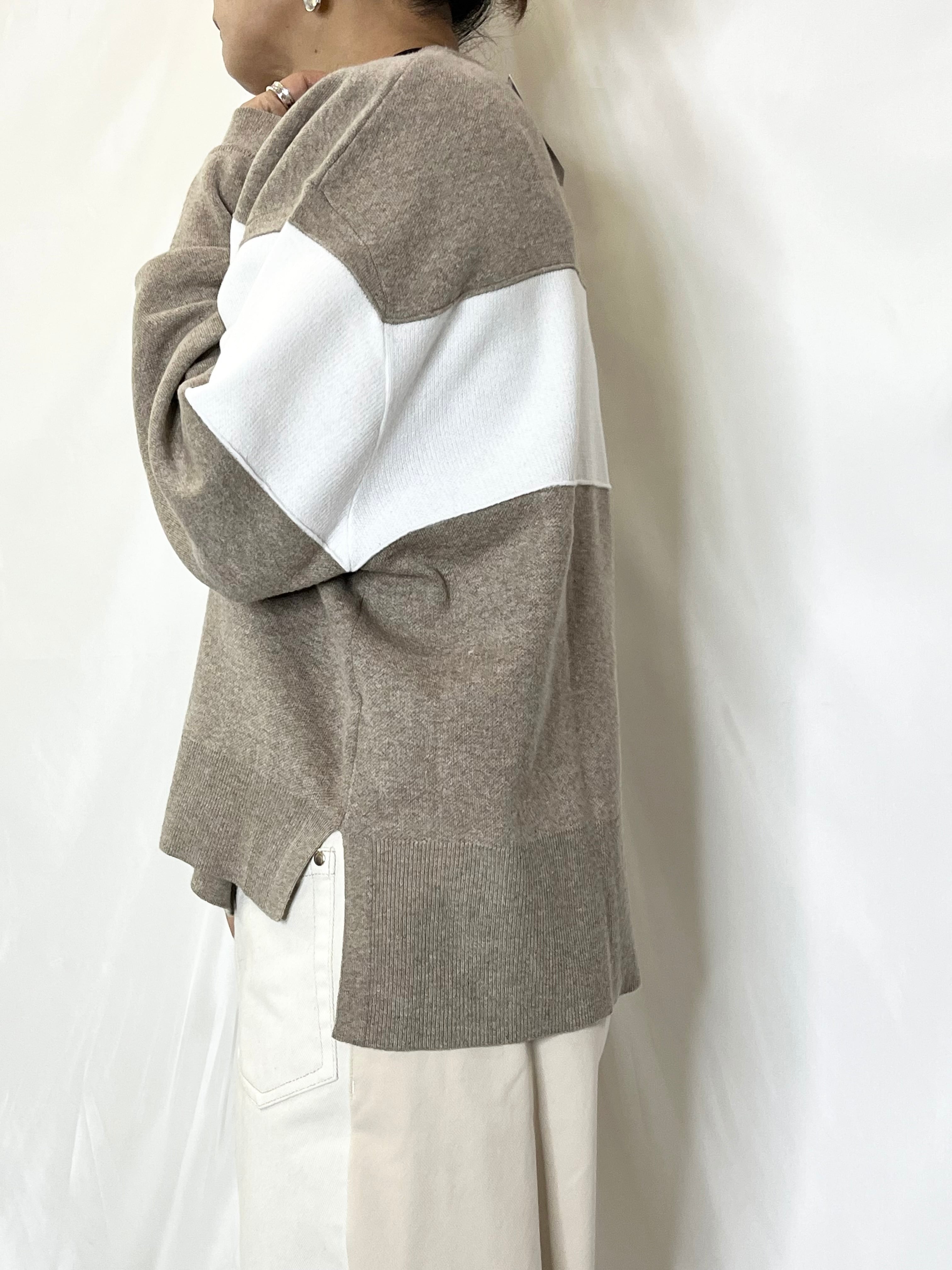バイカラーデザインが目を引く大人可愛いニットプルオーバー。