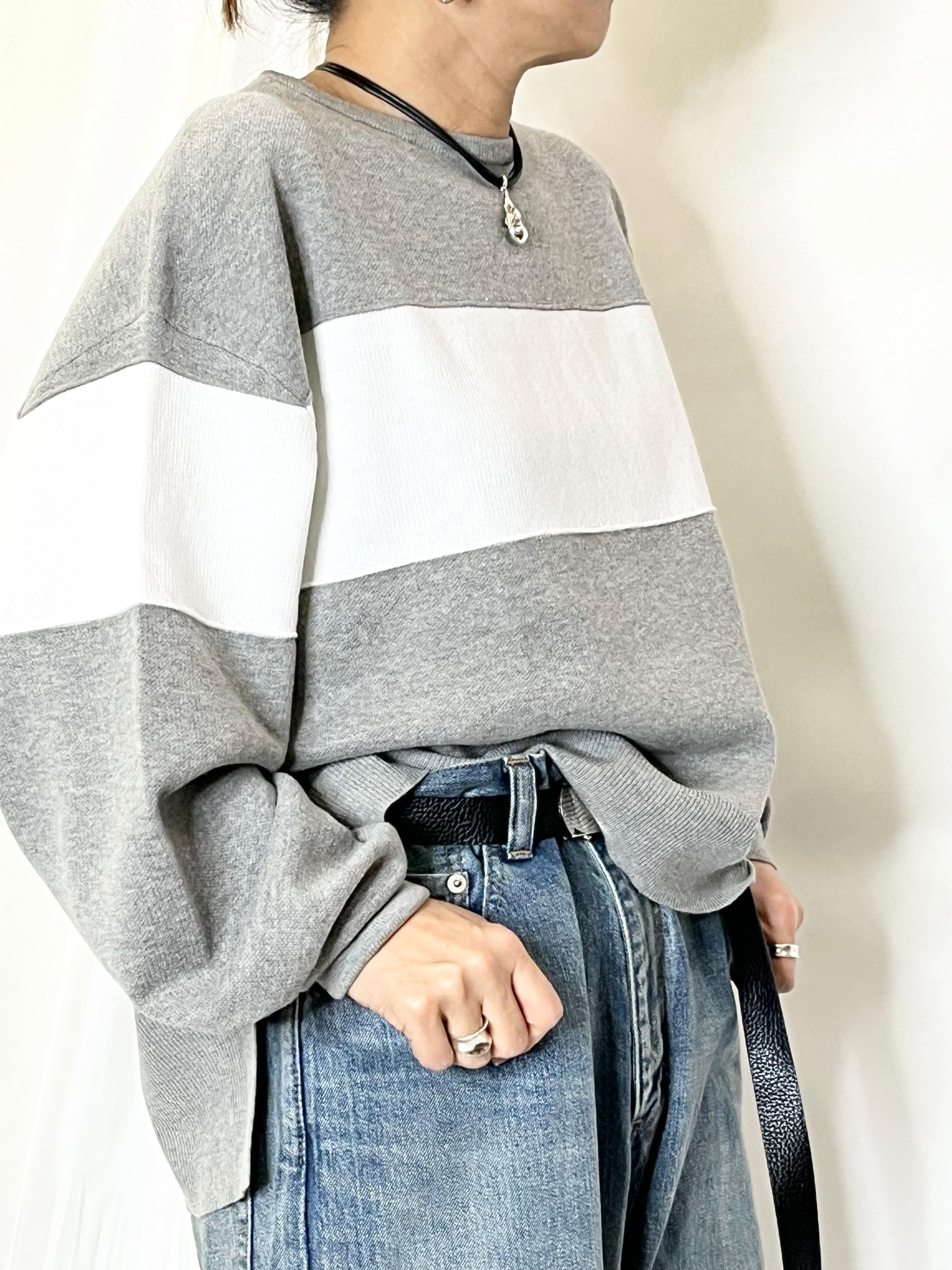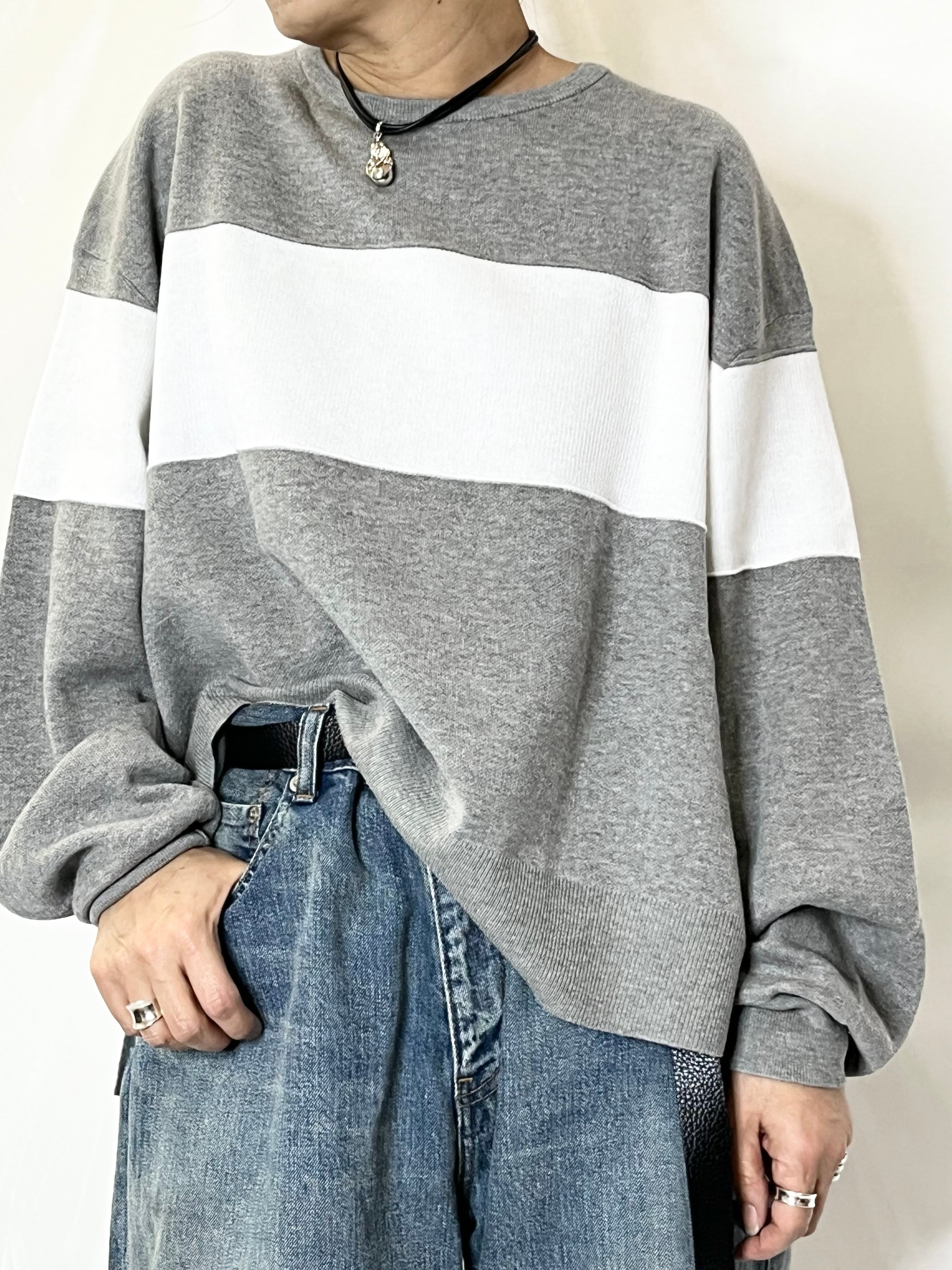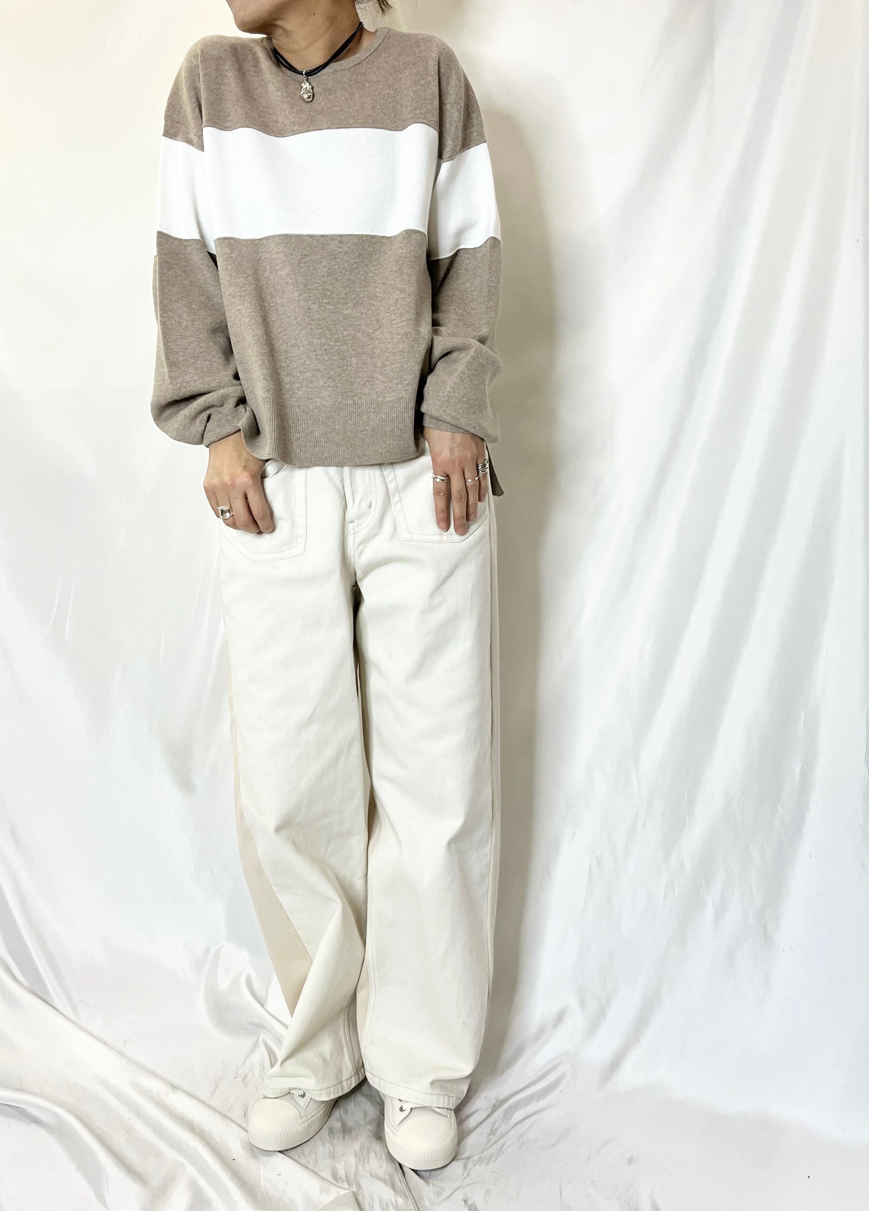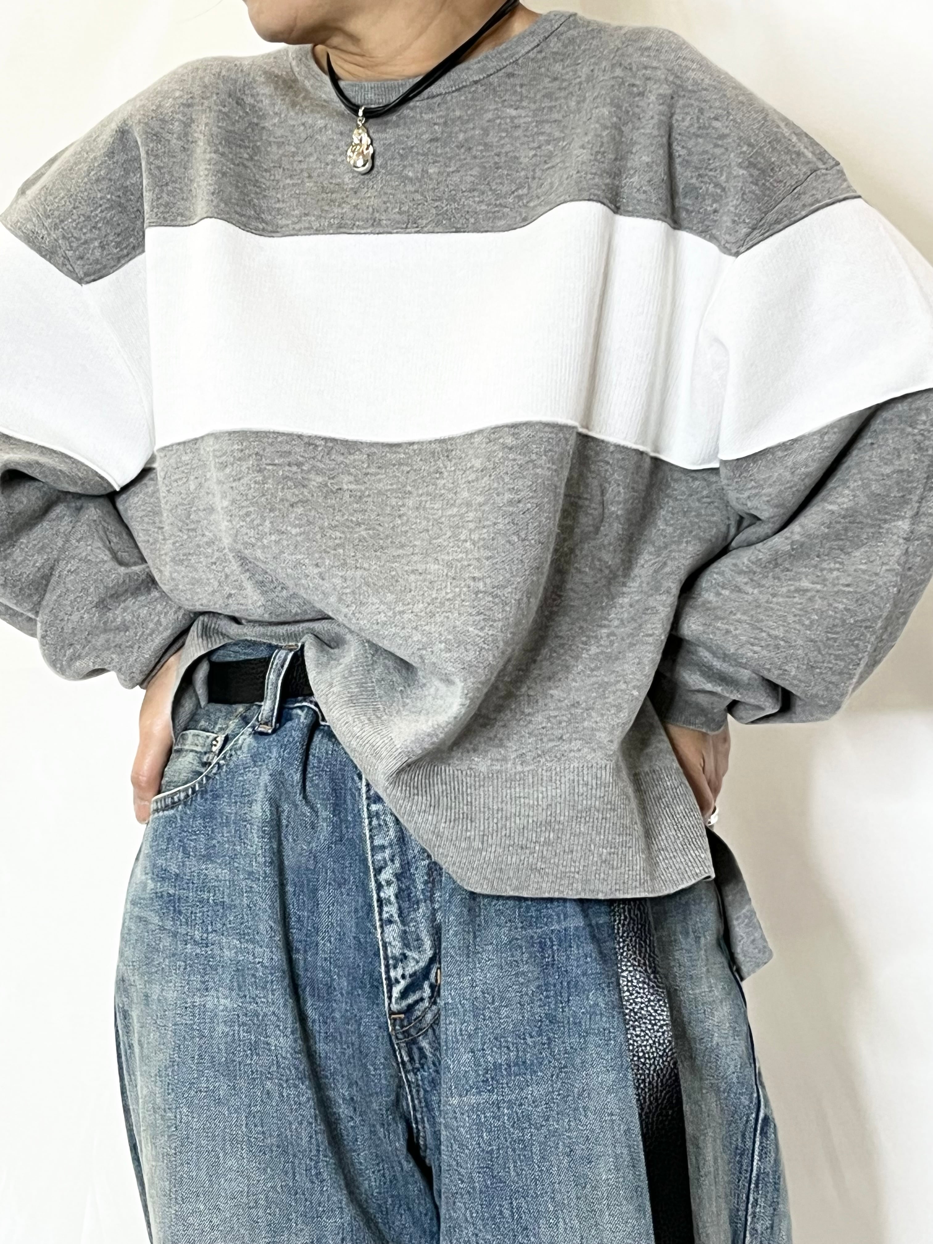 バイカラーデザインが目を引く大人可愛いニットプルオーバー。