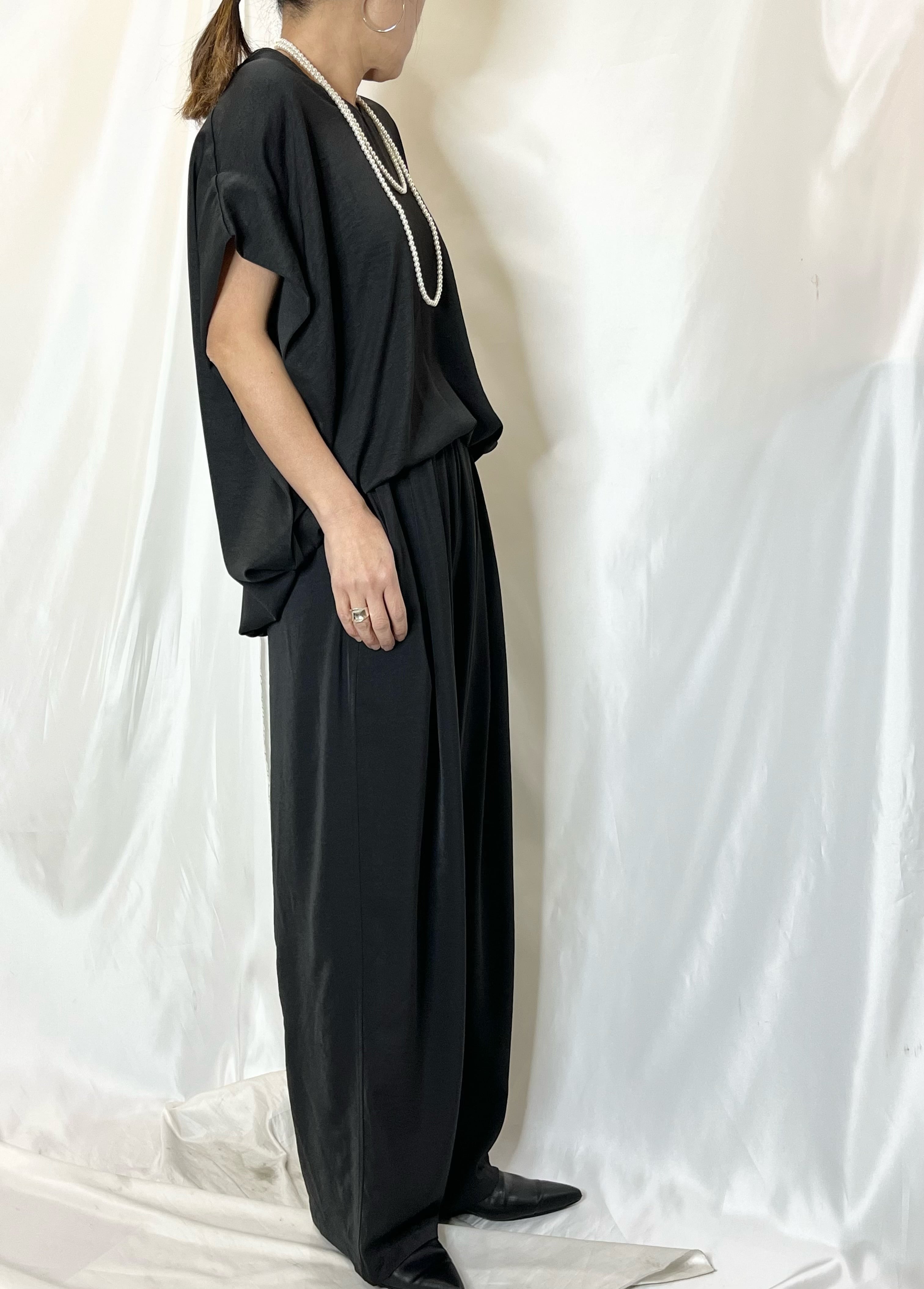 デシンのような質感と光沢感が特徴のカットソー素材を使用。