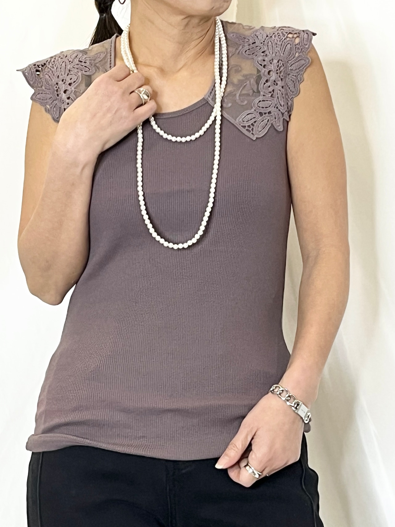tranoi 肩レースフレンチT
