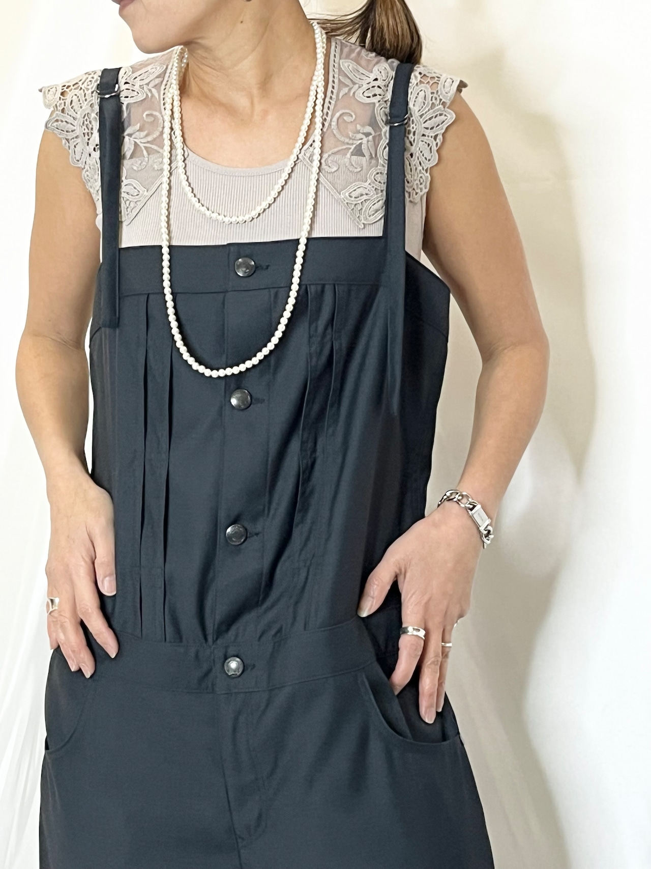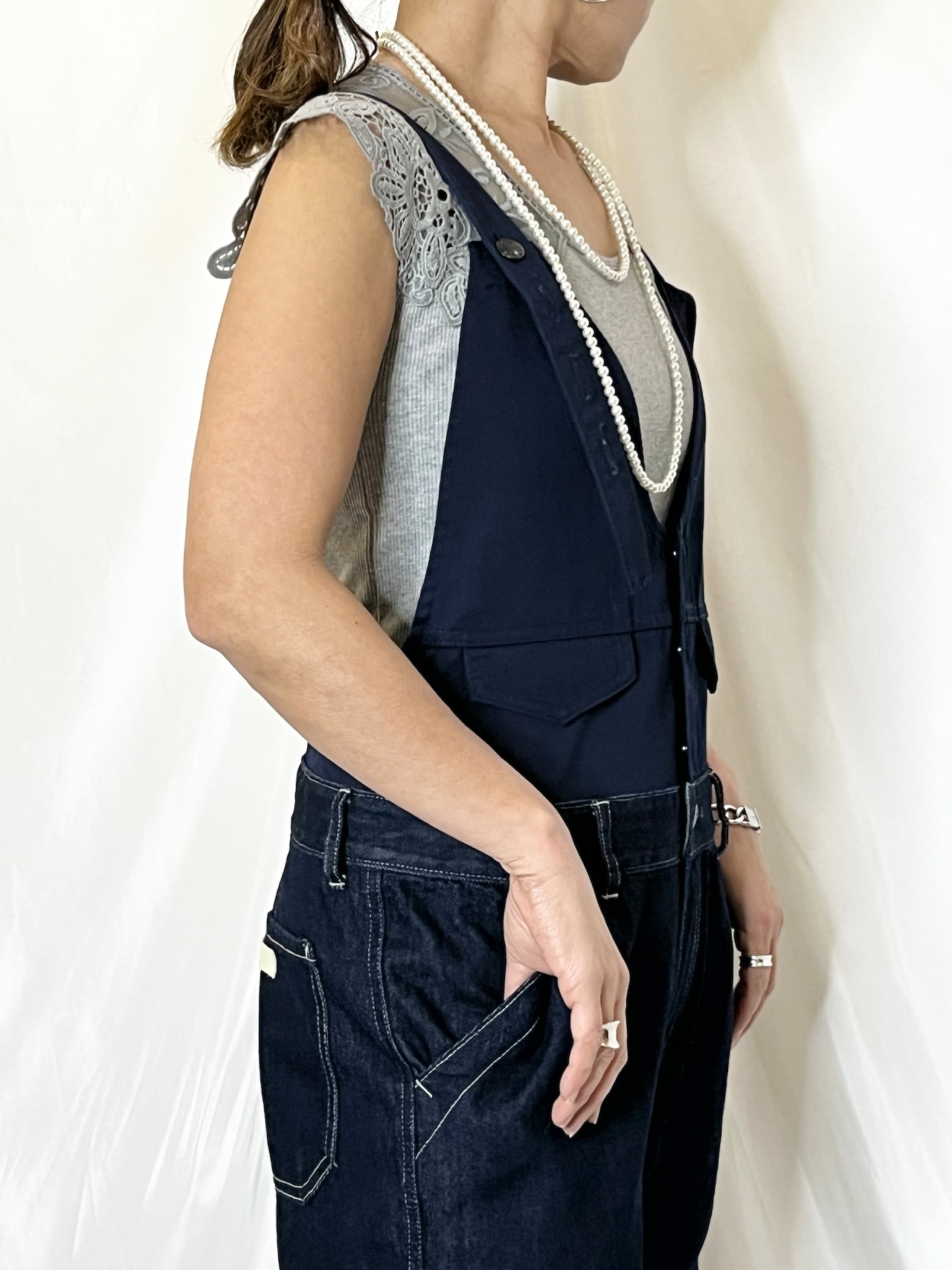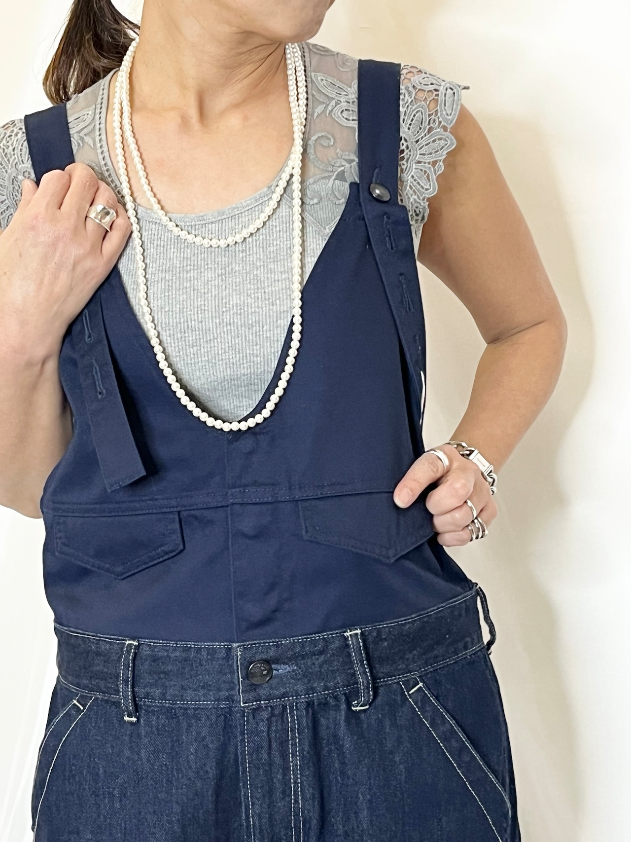 サロペットなどと合わせても大人っぽくコーディネートが楽しめるオススメアイテムです。
