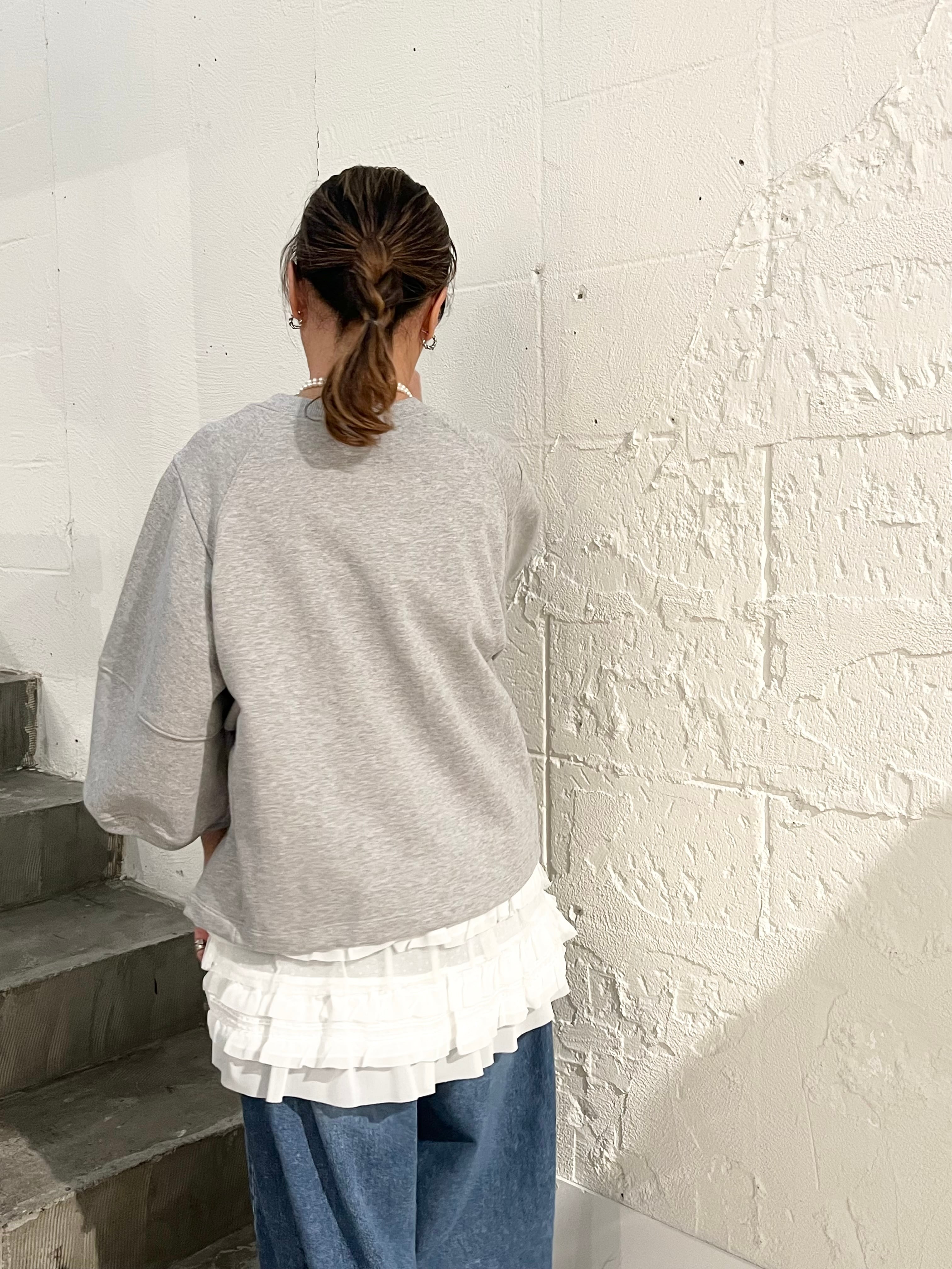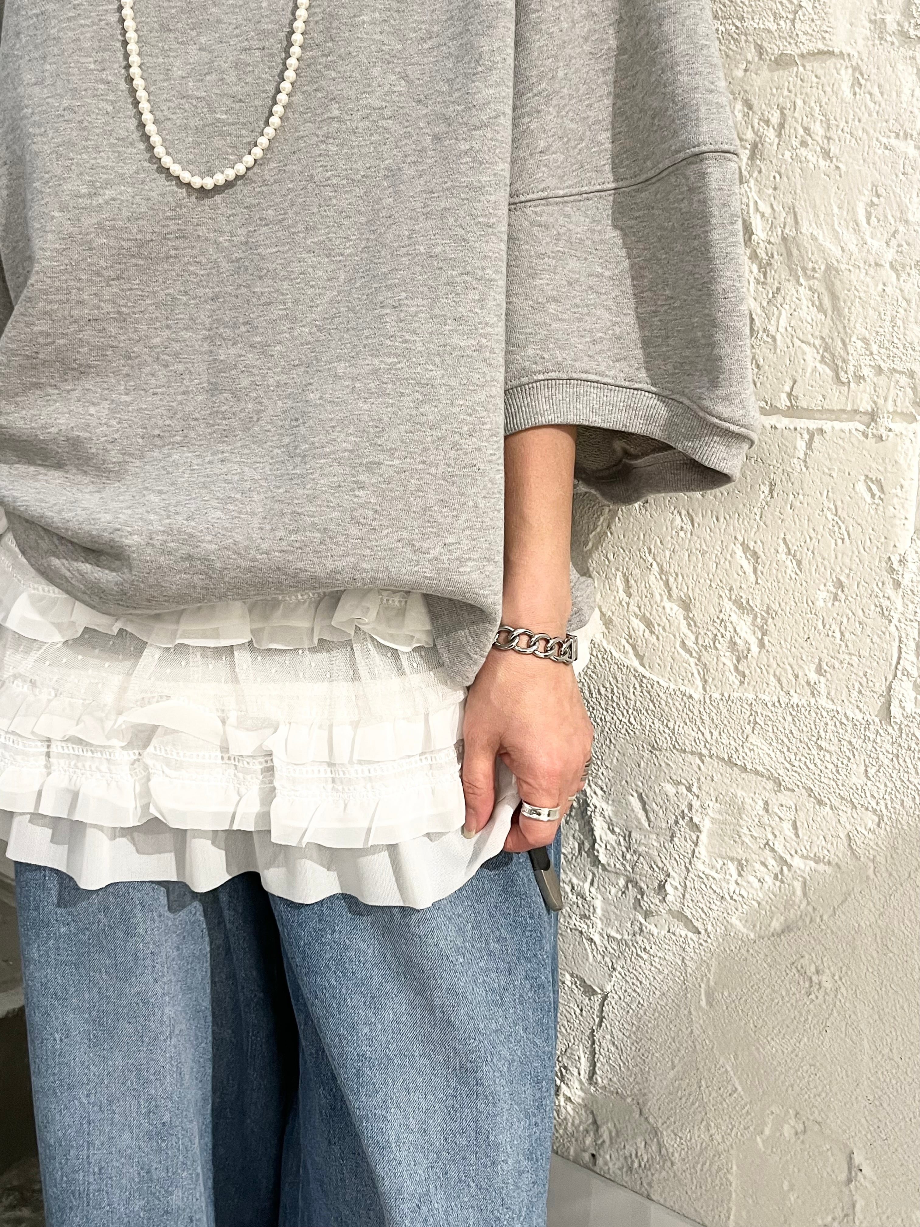 いろんなレイヤードが楽しめる裾がフリルのメッシュタンクトップ。