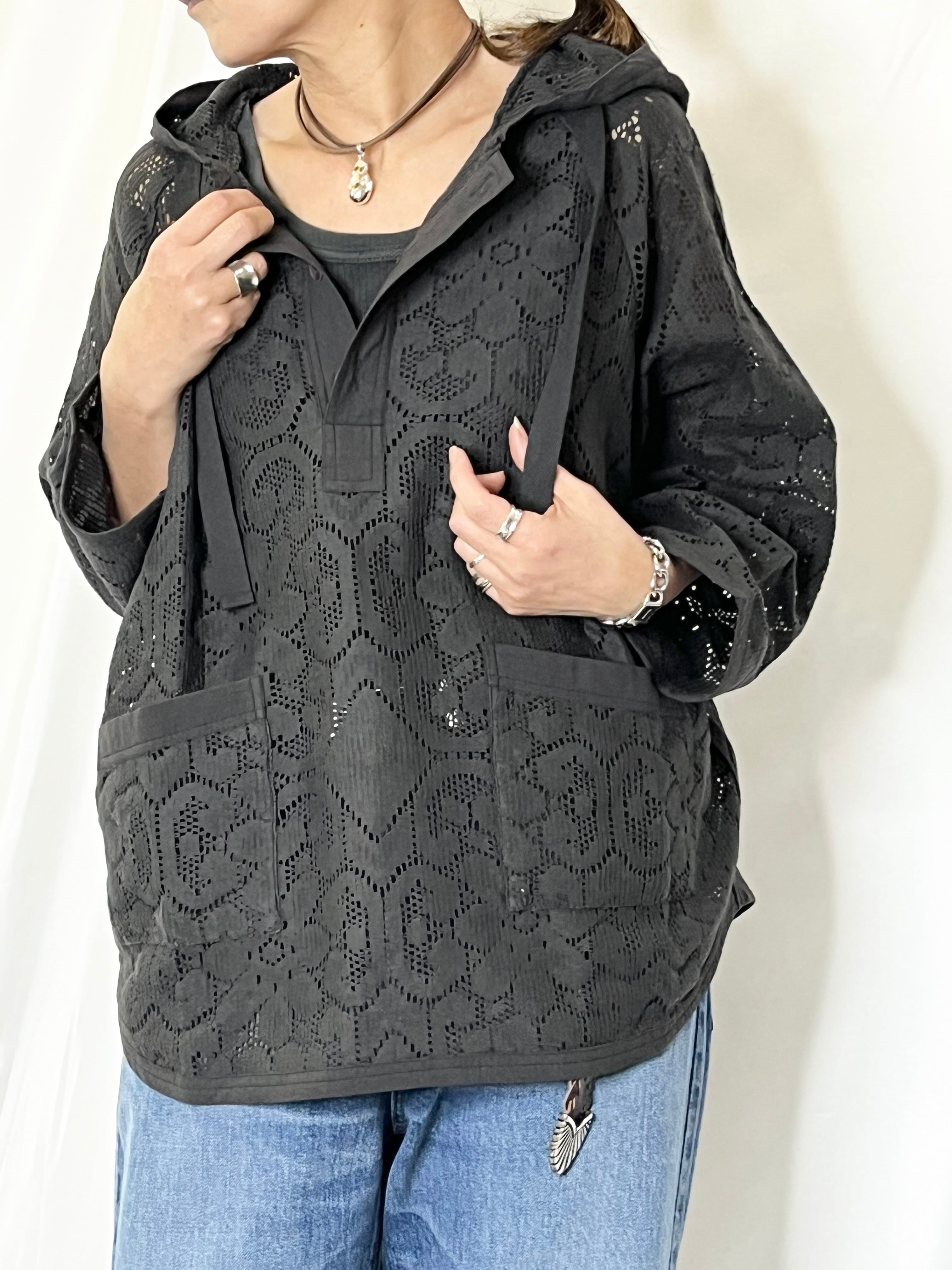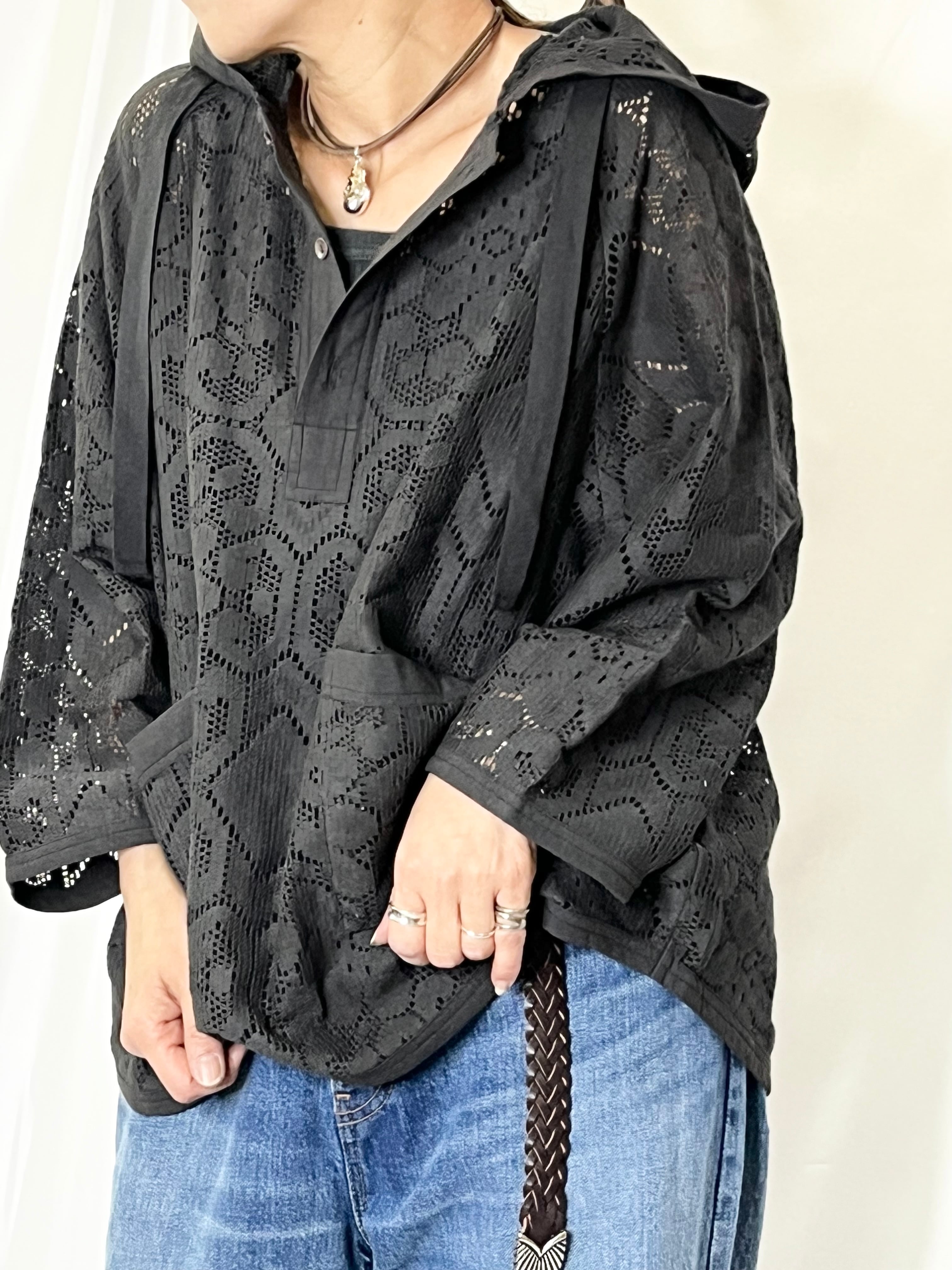 インドレースを使用したフーディタイプのブラウス。