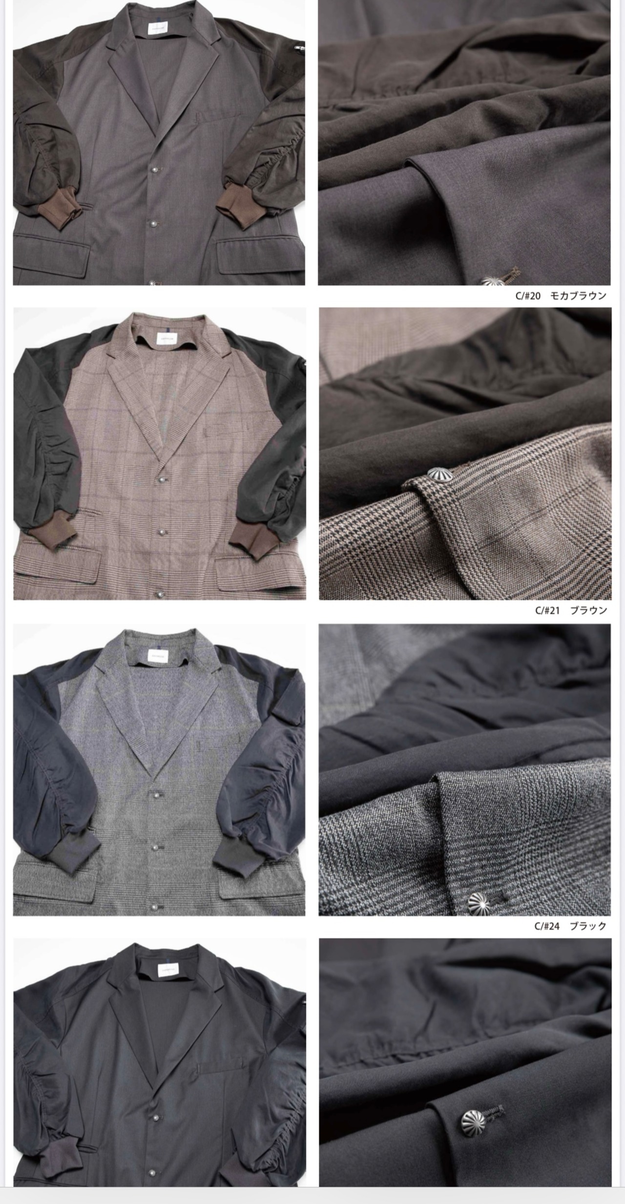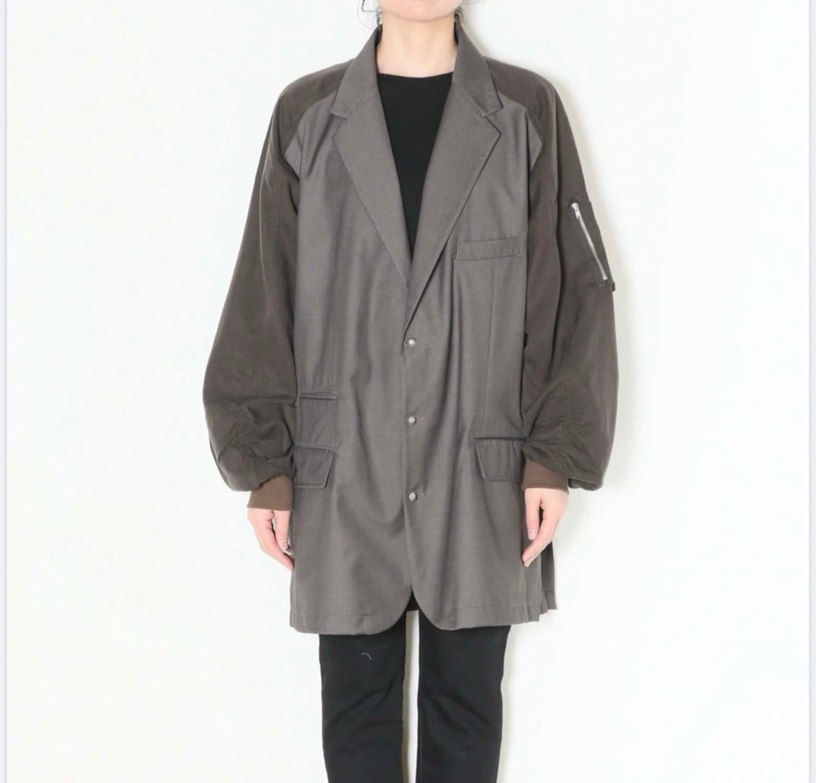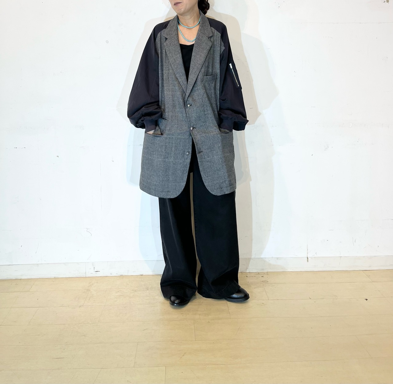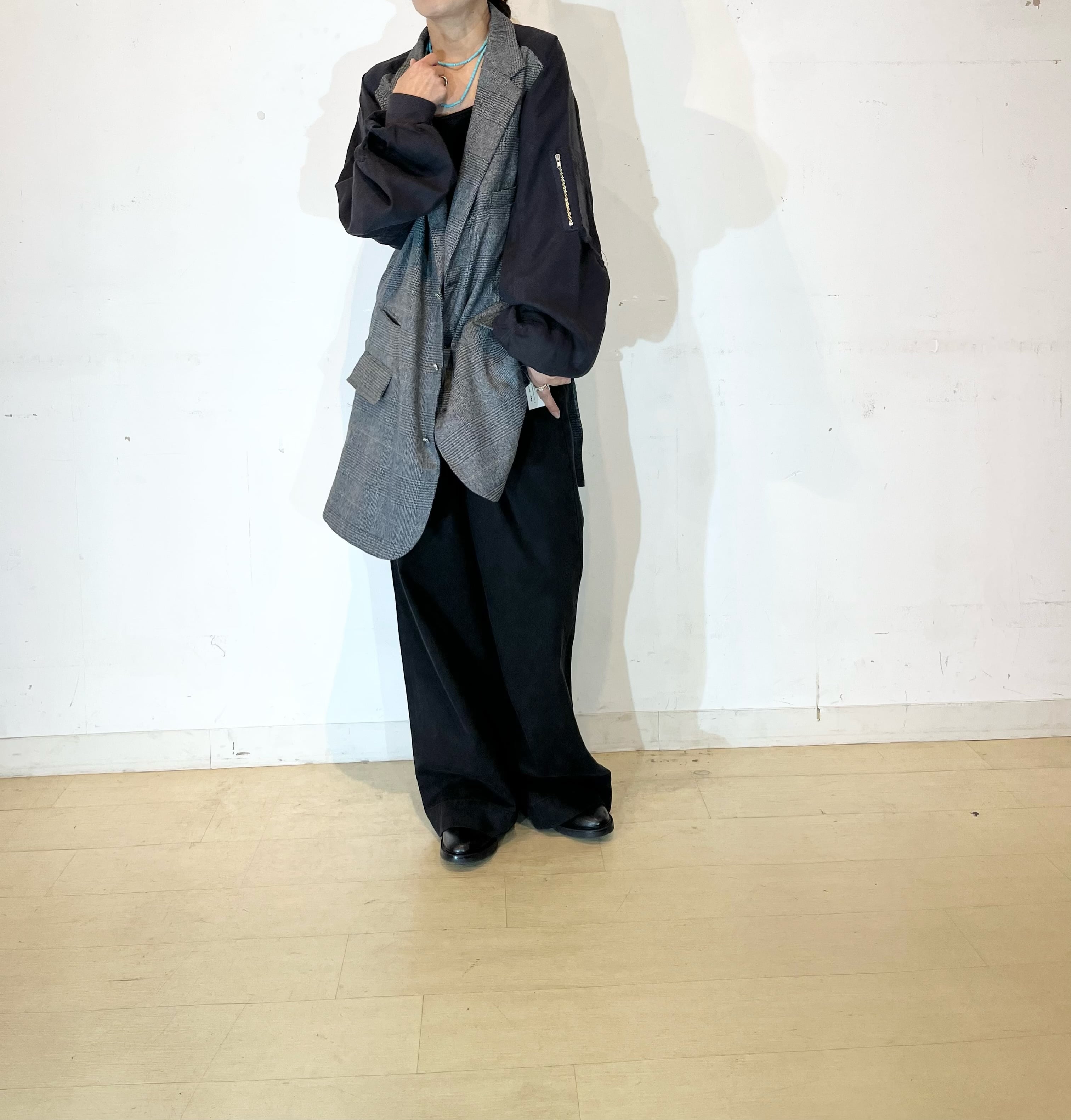 前回展示会で人気だったテーラードジレにMA-1スリーブをドッキングした新モデルが登場。
