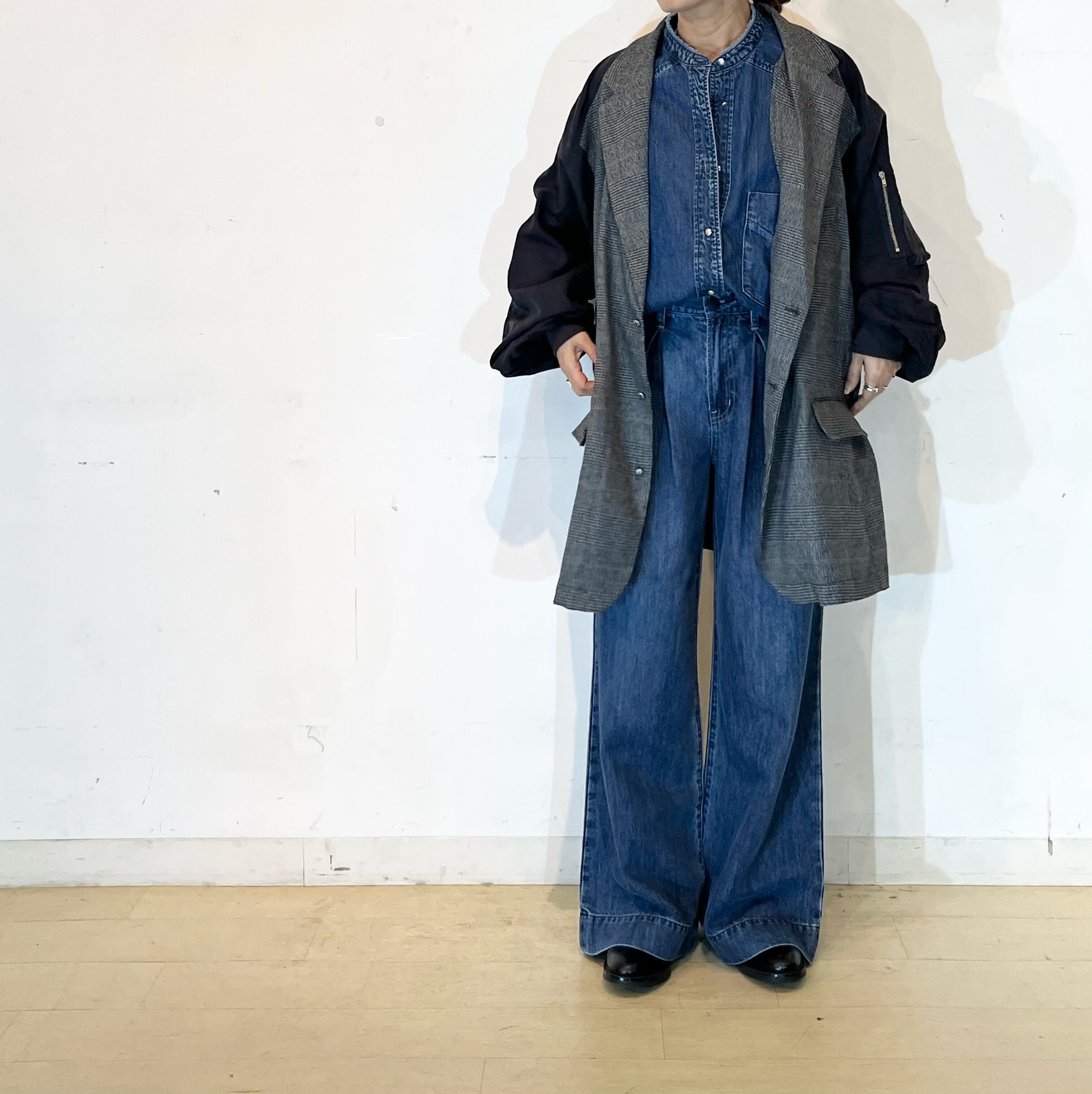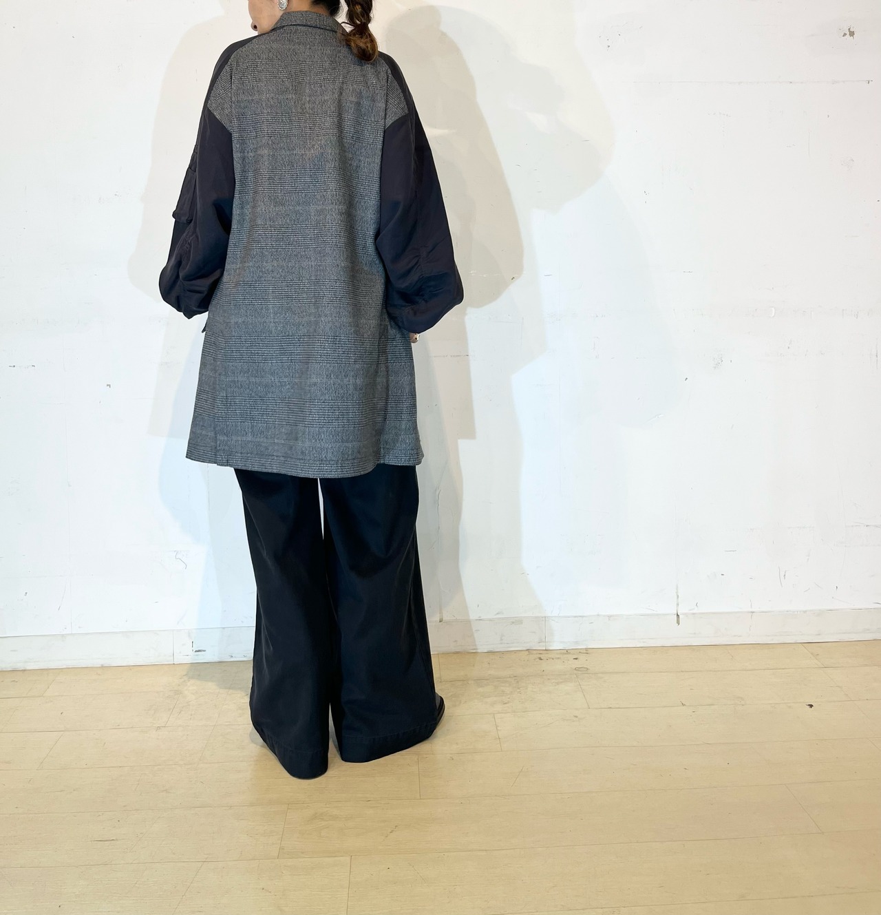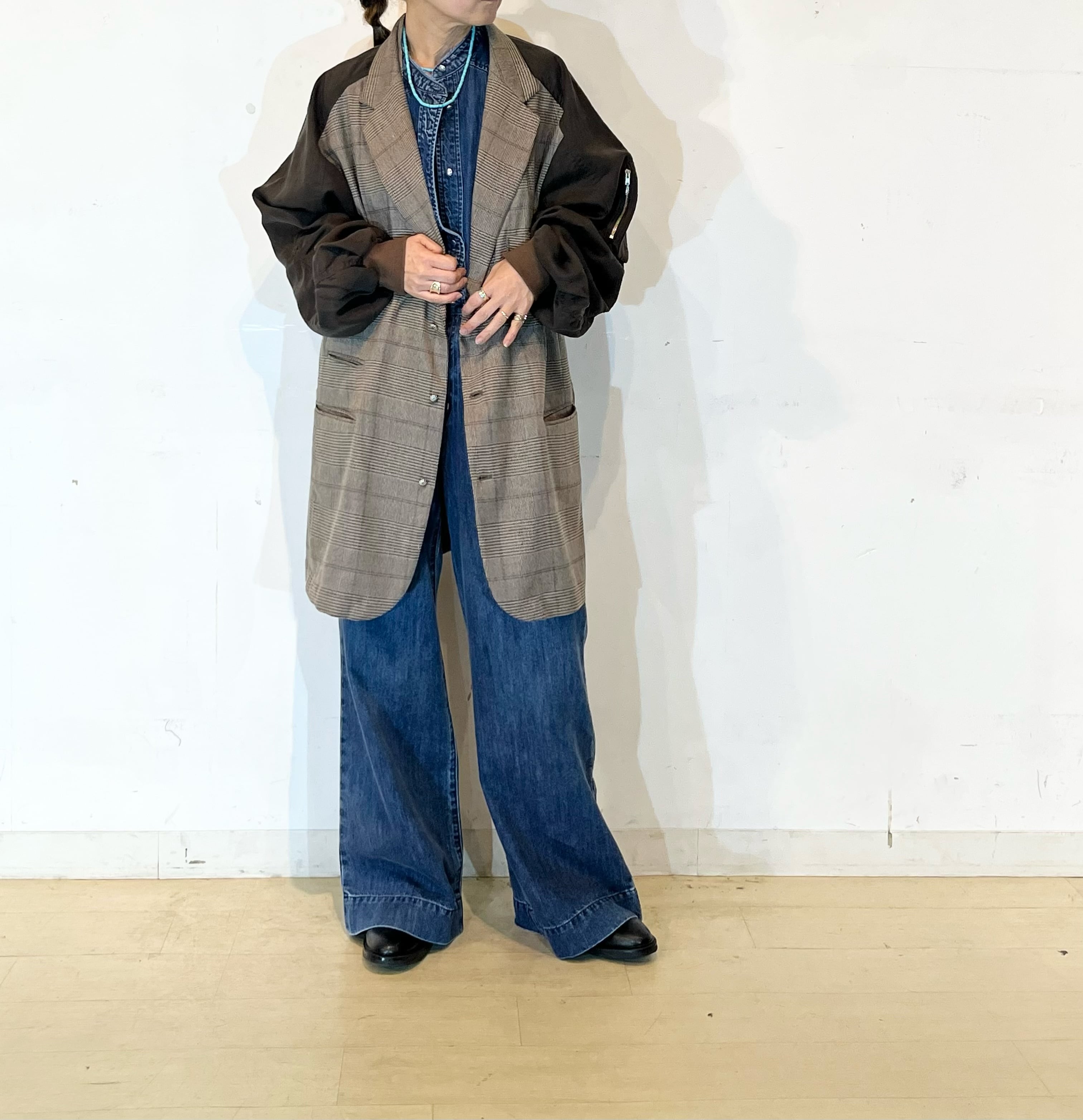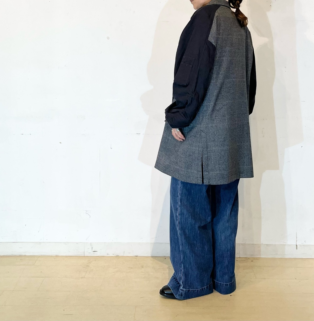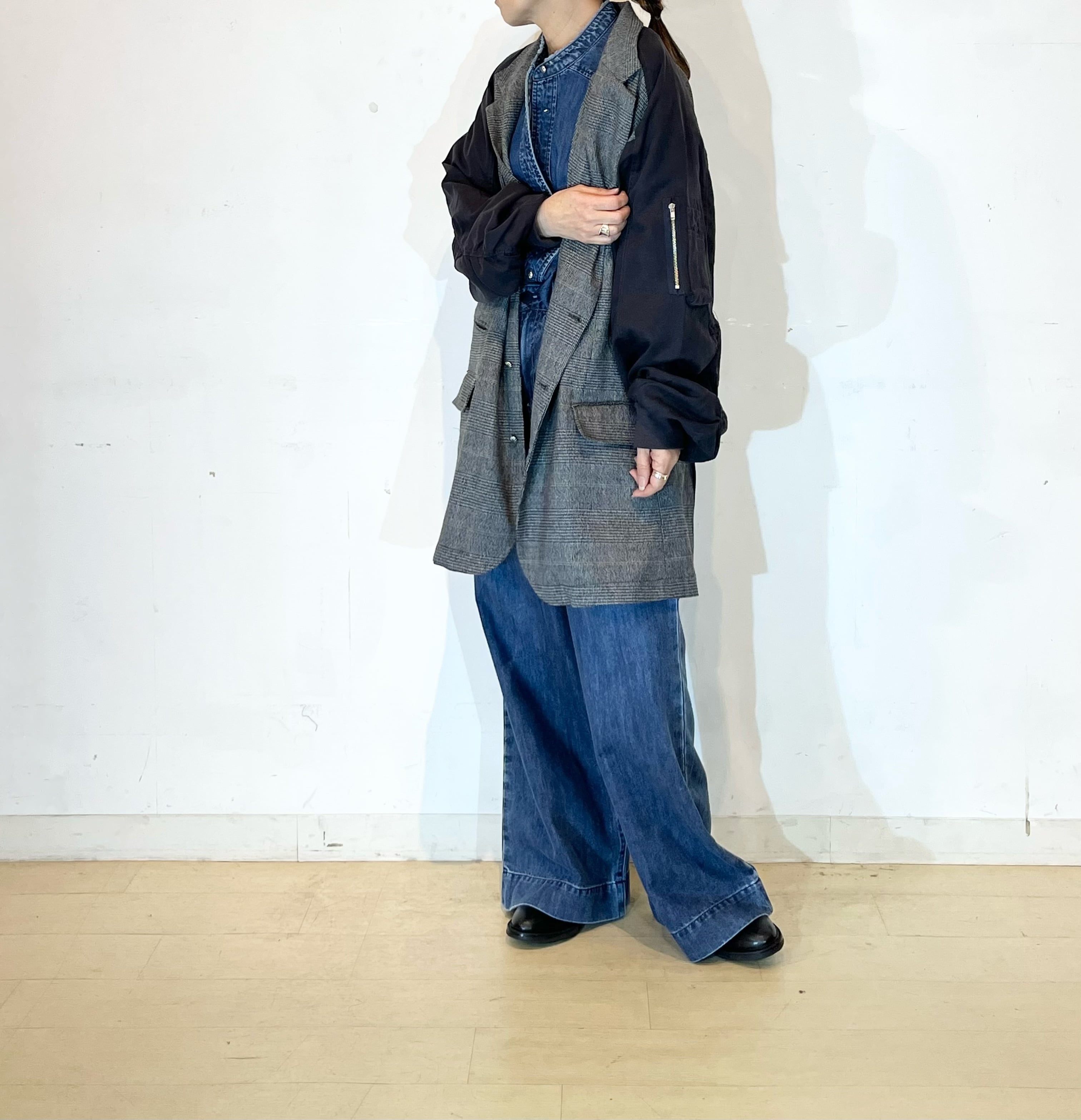前回展示会で人気だったテーラードジレにMA-1スリーブをドッキングした新モデルが登場。