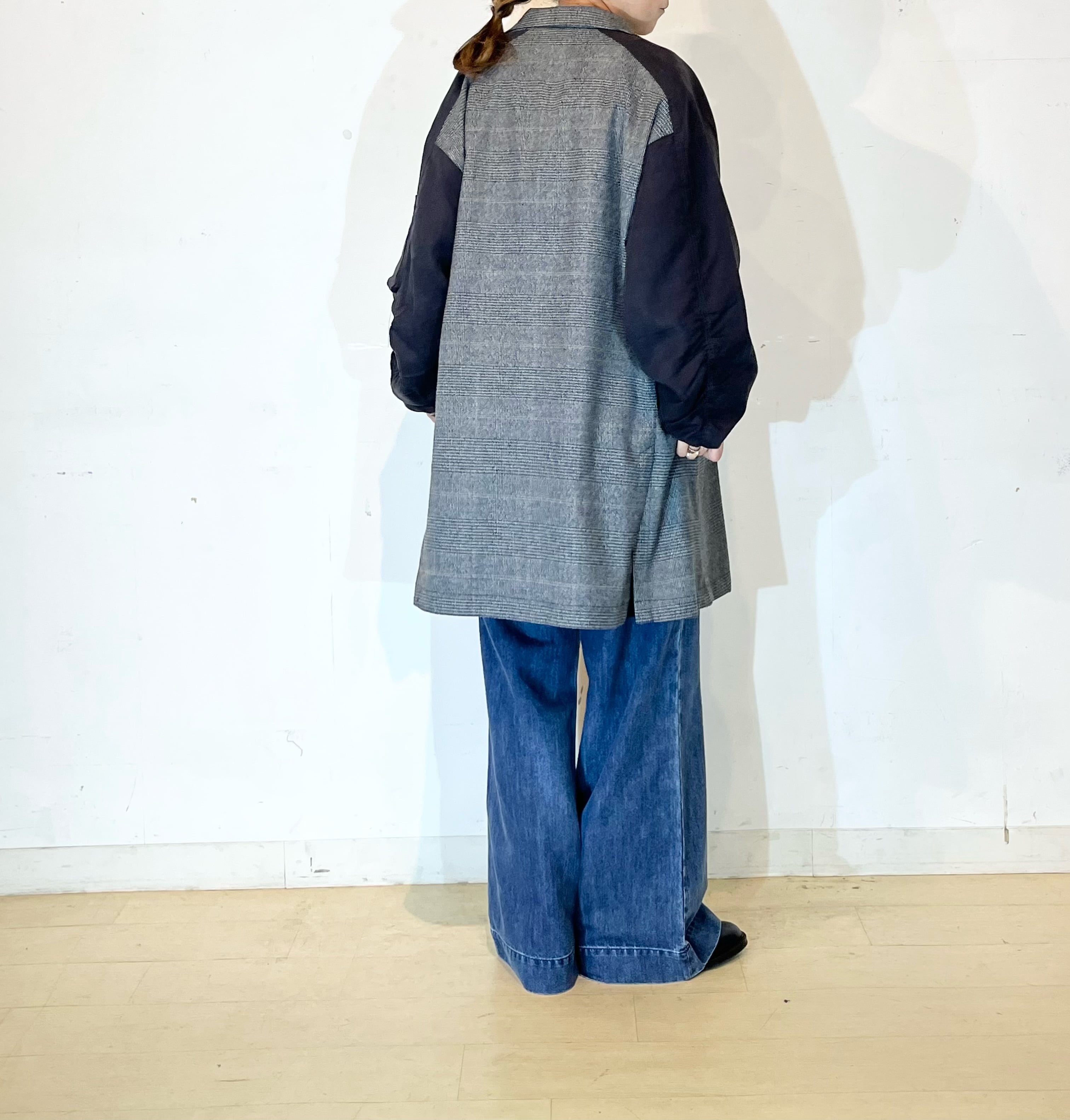 裾部分には洗いざらし感のあるテンセル素材を使用し、身頃との素材コントラスを演出。