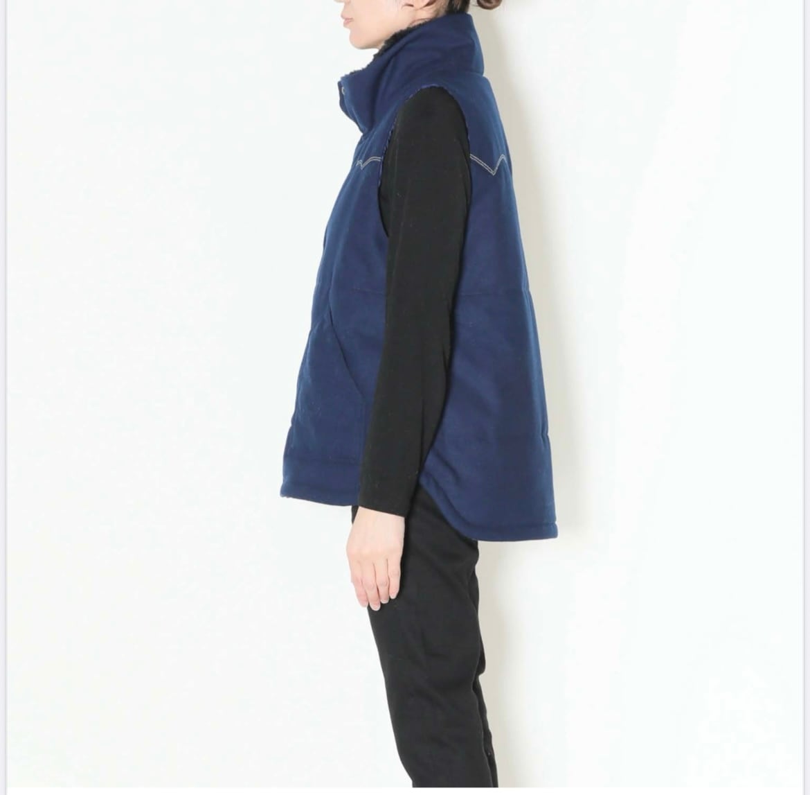 中綿はボリュームを抑えた分量に設定し着ぶくれせずすっきりとしたシルエットで着用して頂けます。