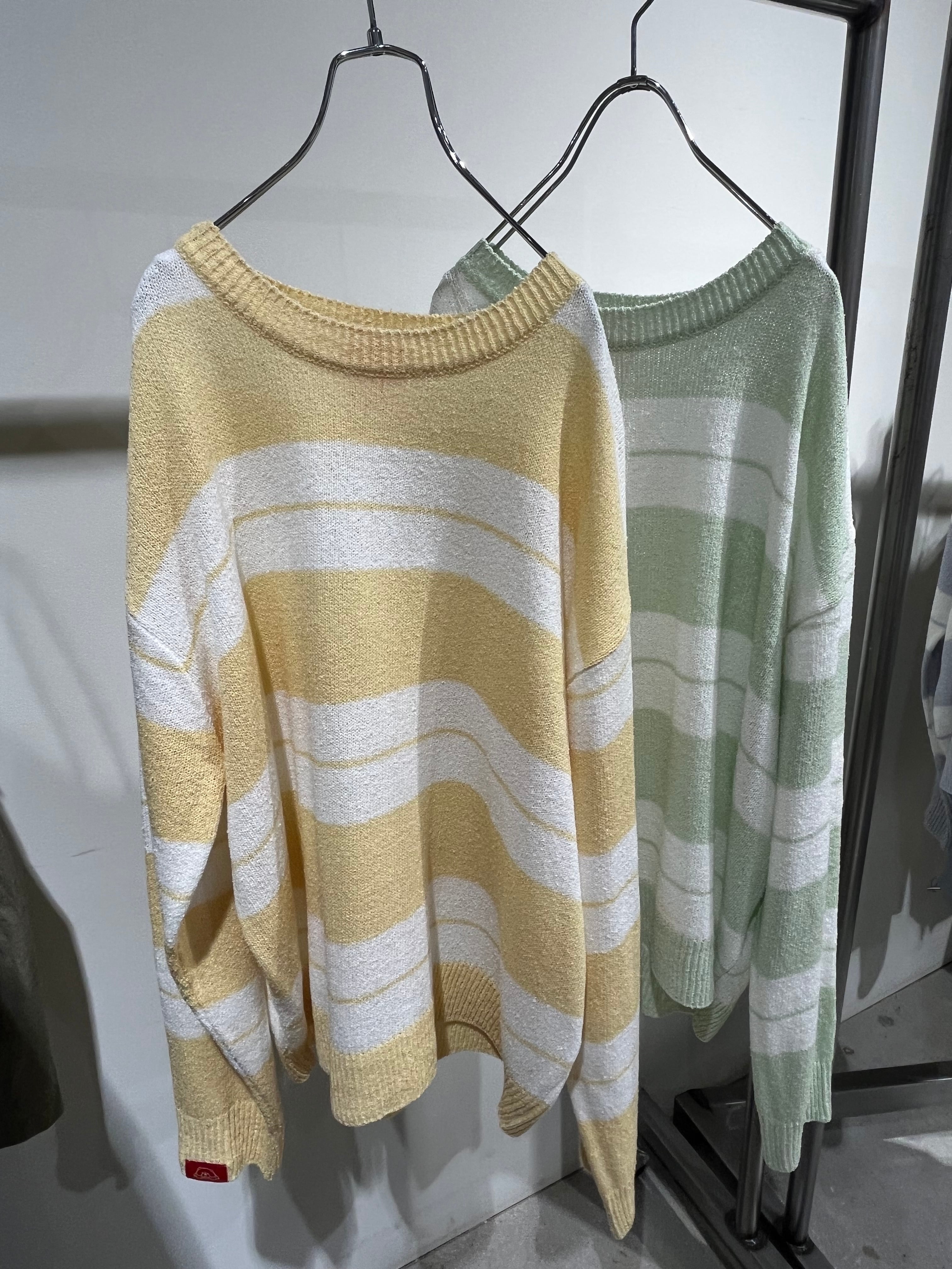 ぼかしボーダーオーバーニット