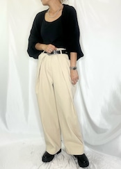 凹凸感のある糸をミックスさせた、綿混のニット素材なので季節問わず着用頂けます。
