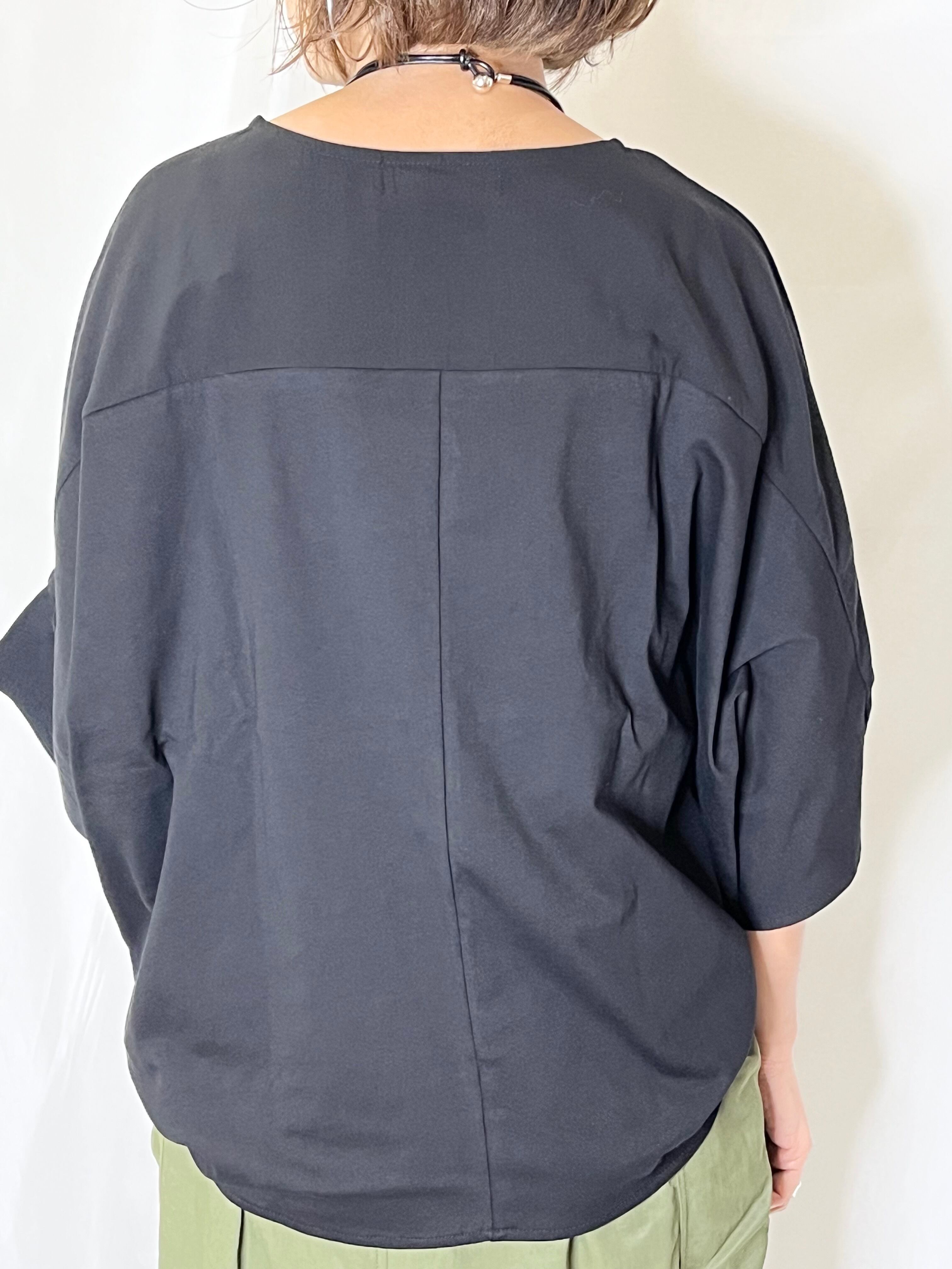 5分袖で気になる二の腕も綺麗に隠せて、自然に抜け感の出るデザインになっています。