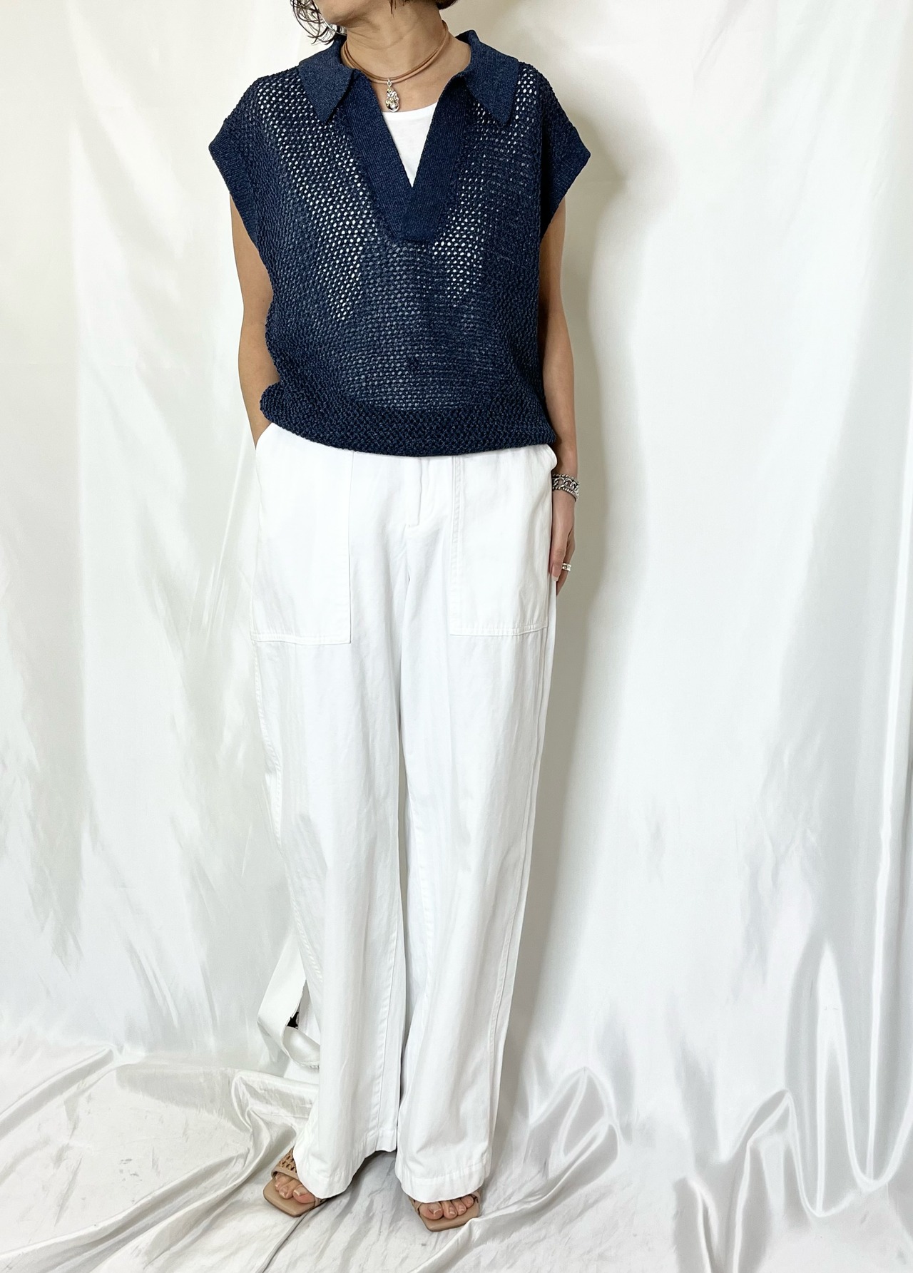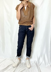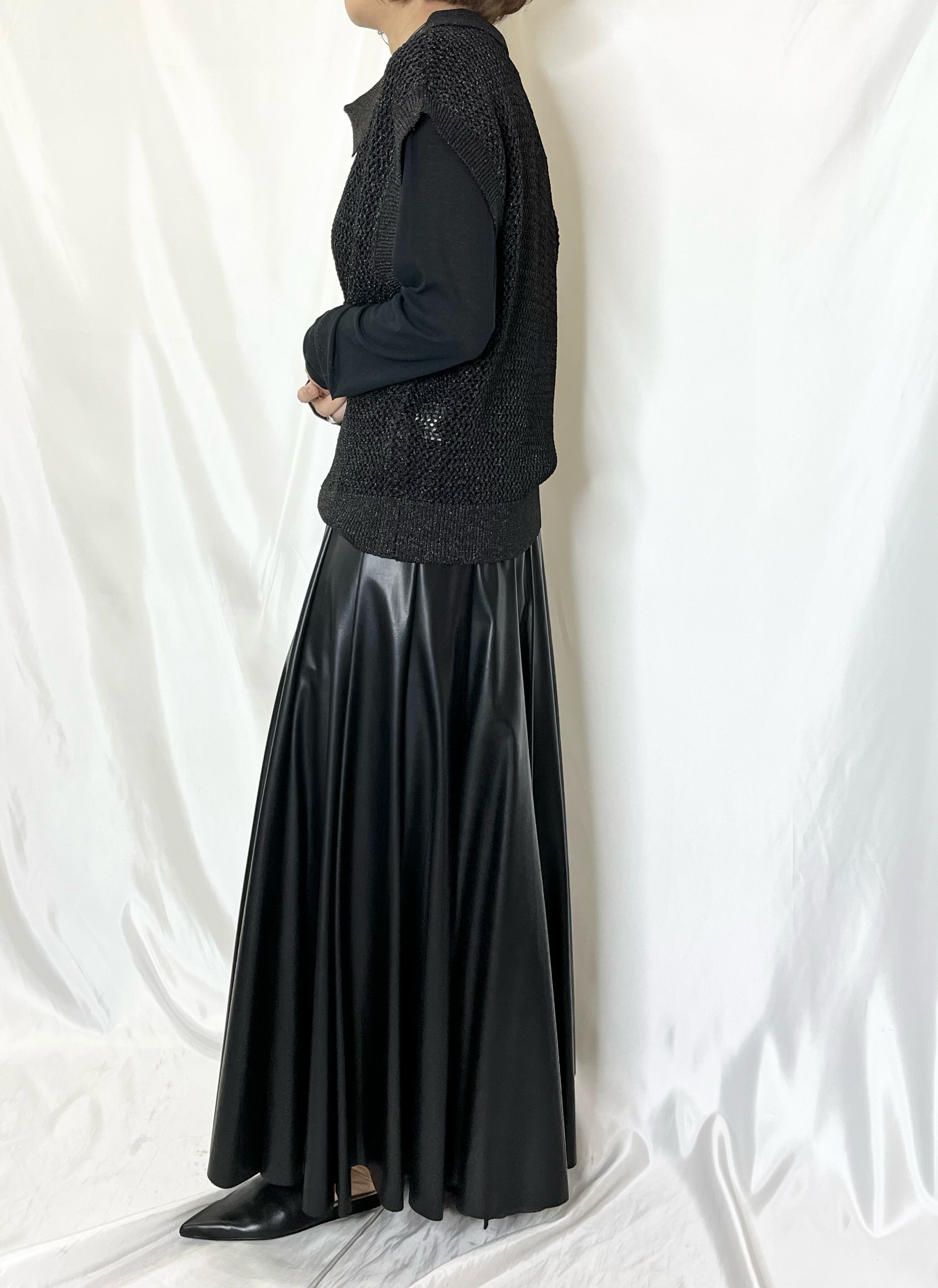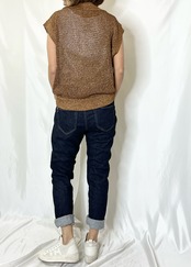 光沢のある糸を織り交ぜ、メタリックでモードに仕上げたメタリックスキッパーニットベスト。