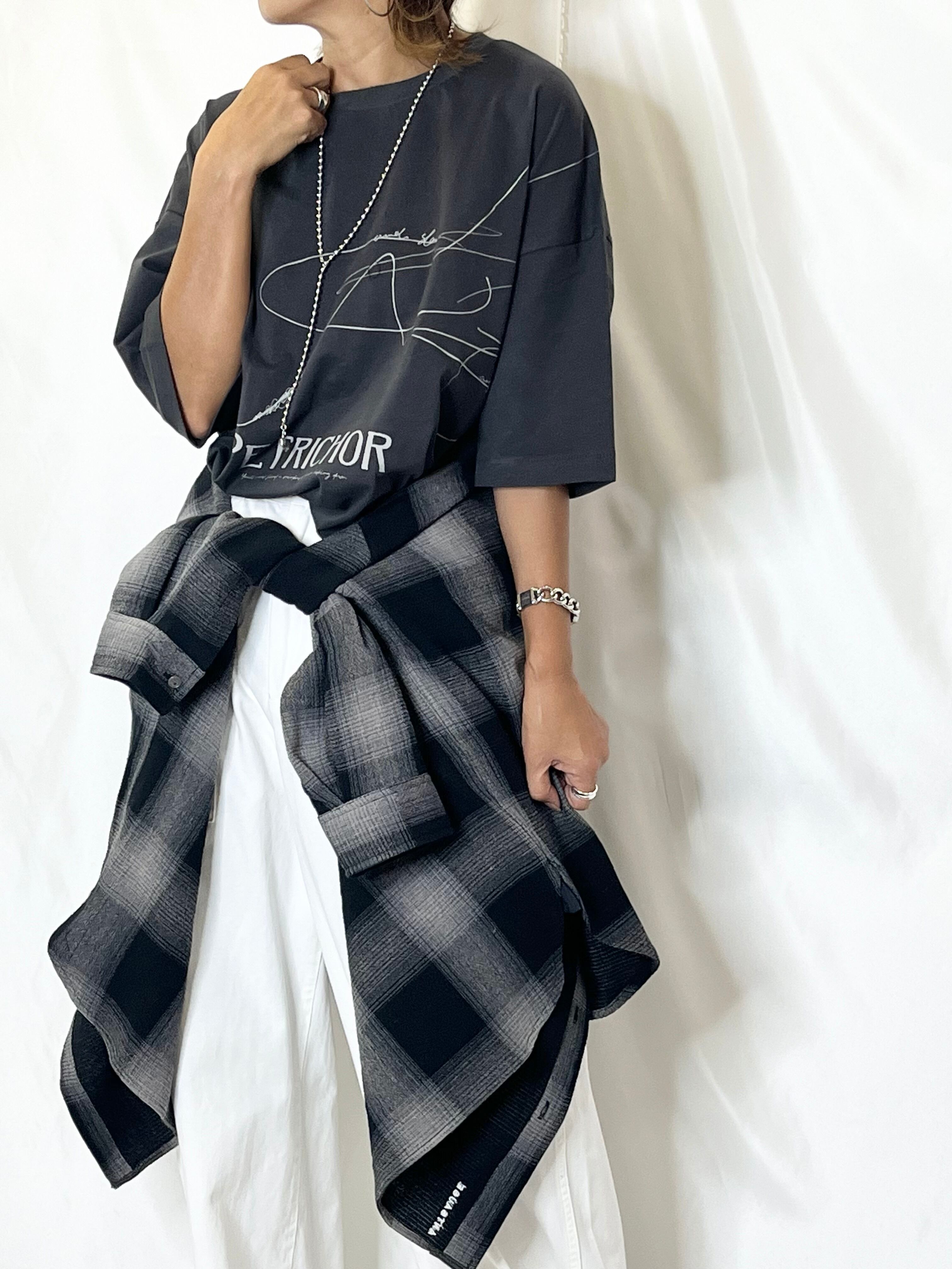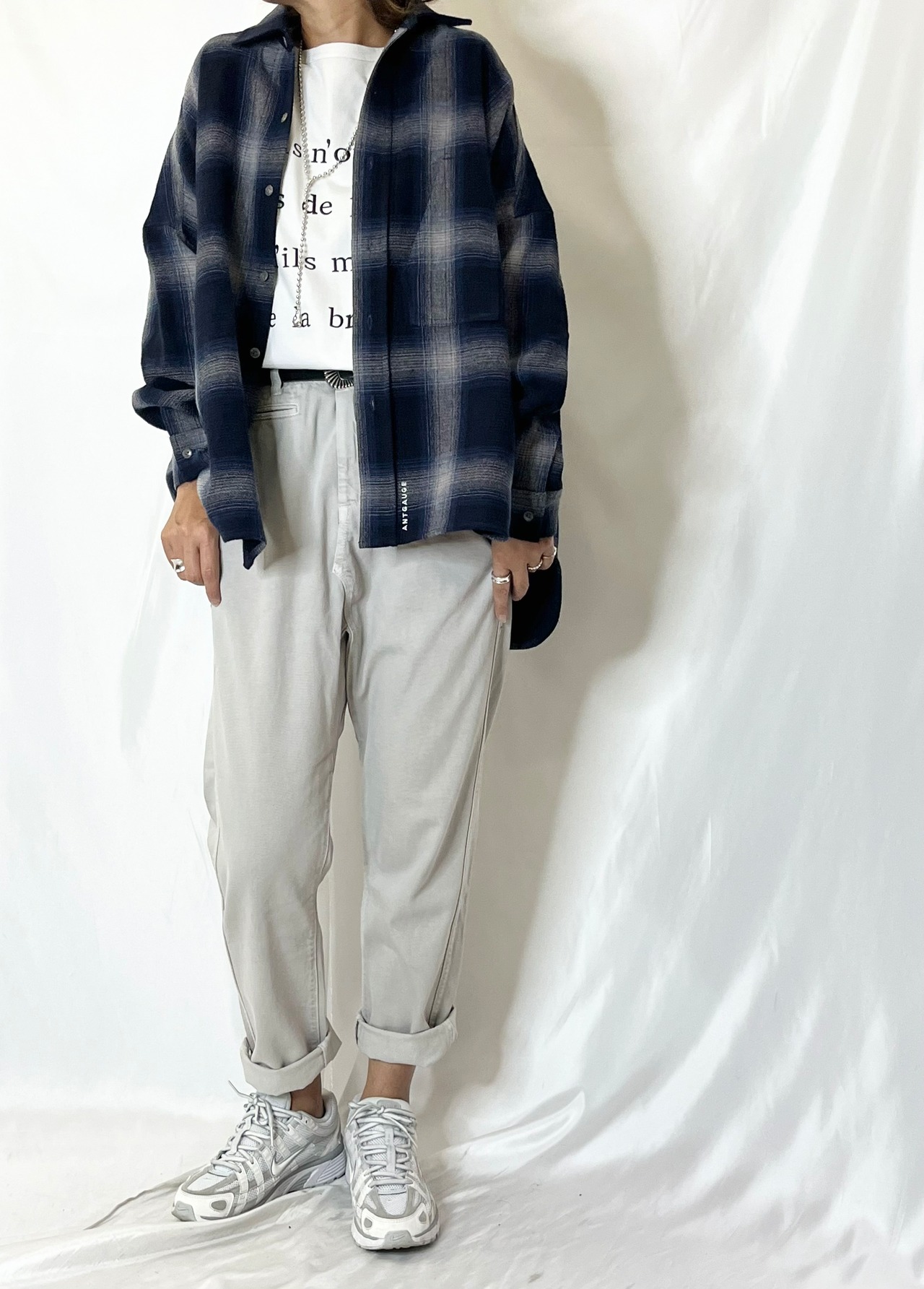 ゆったりしたシルエットで、ドロップショルダーによる抜け感があり、メンズライクながら大人カジュアルに着用できます。