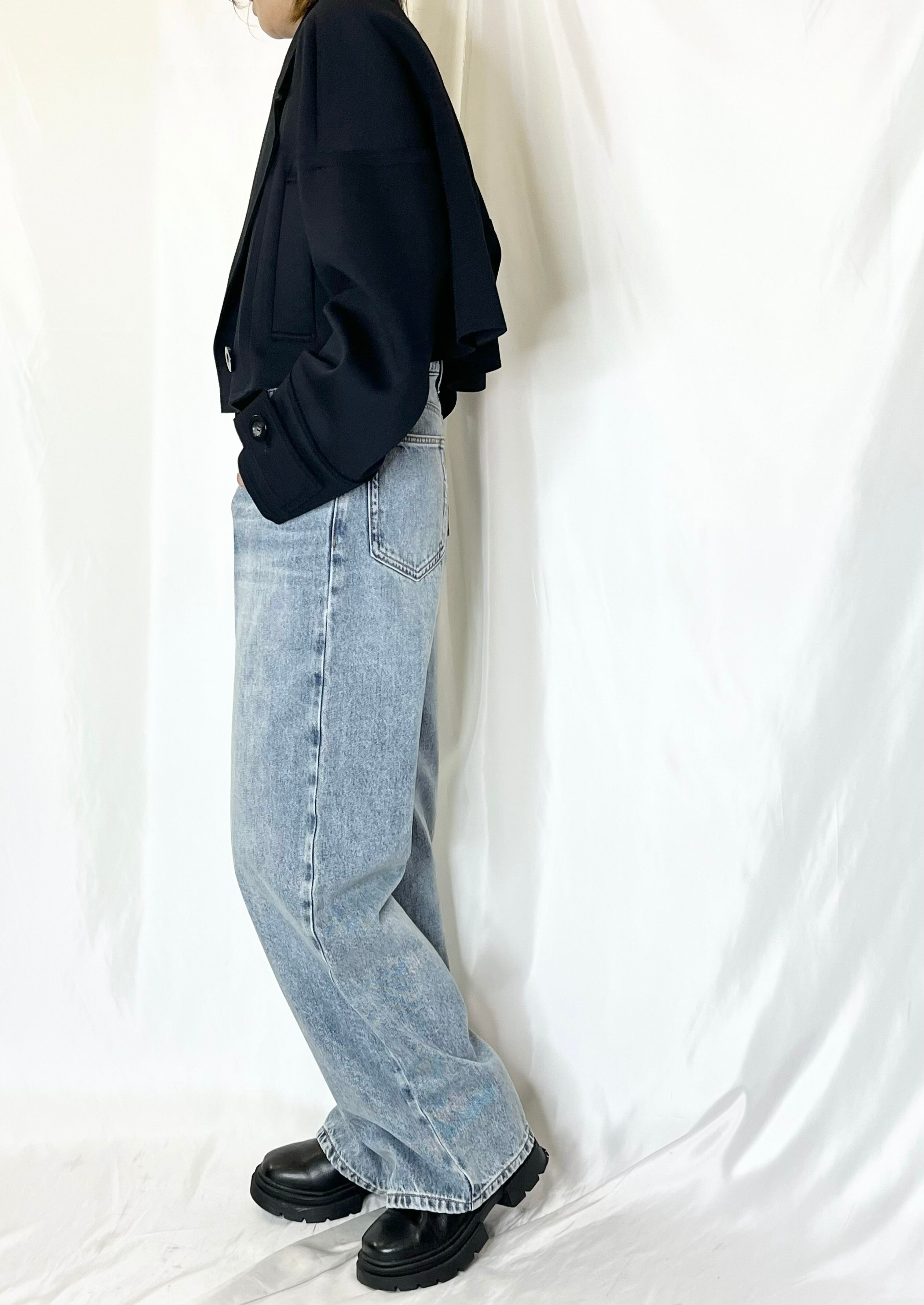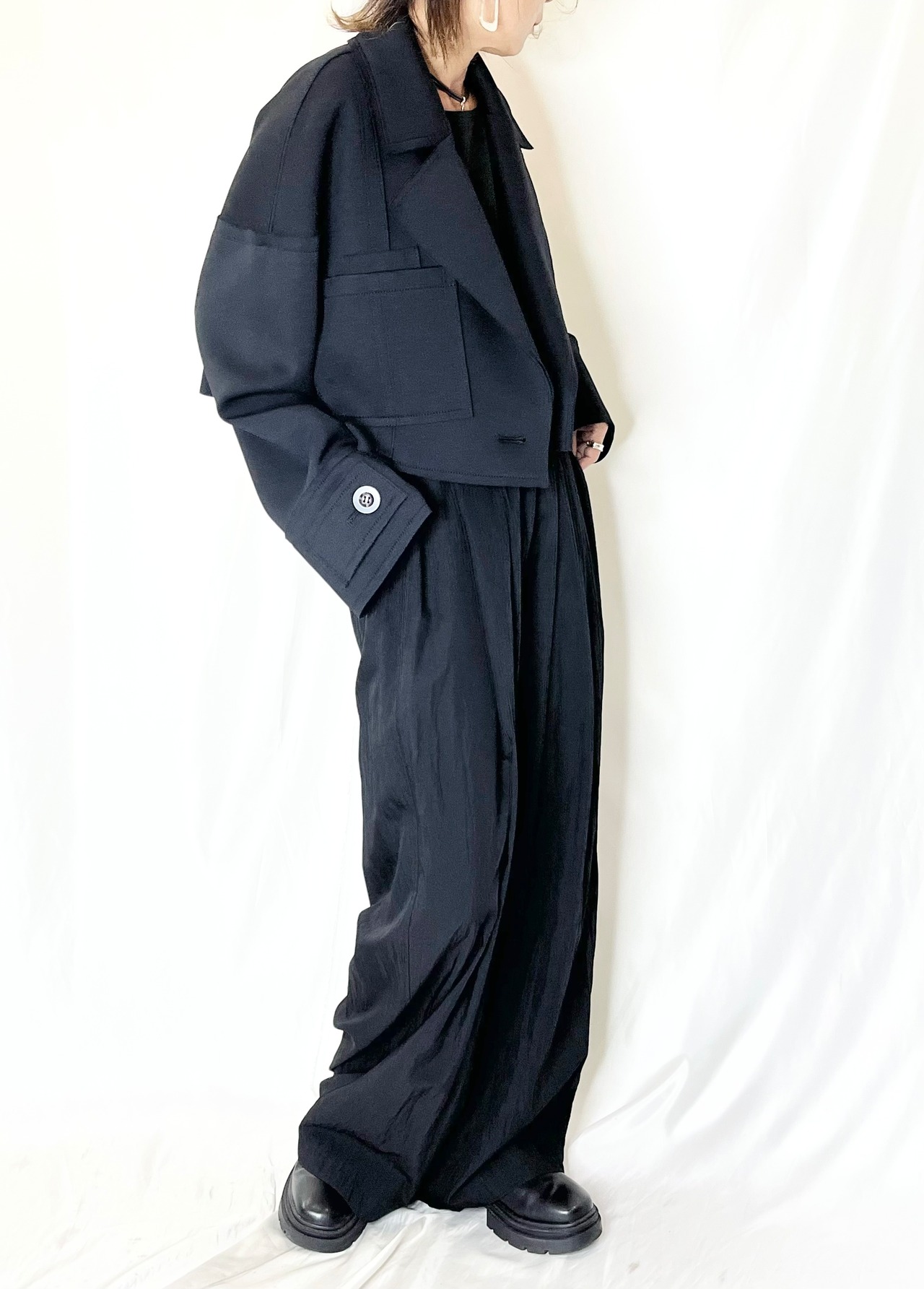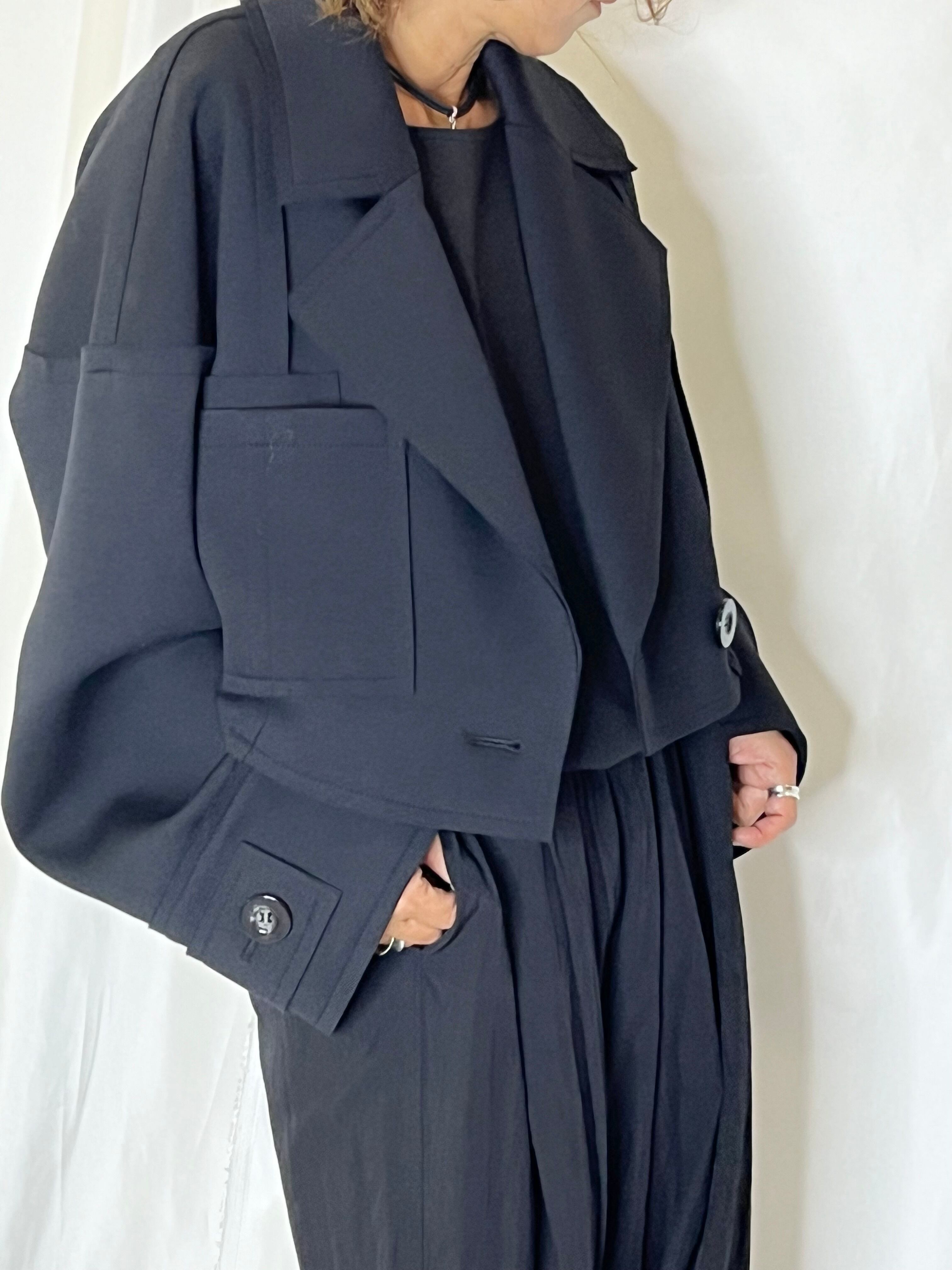 軽量でソフトなダンボールニット素材を使⽤したショート丈ジャケット。