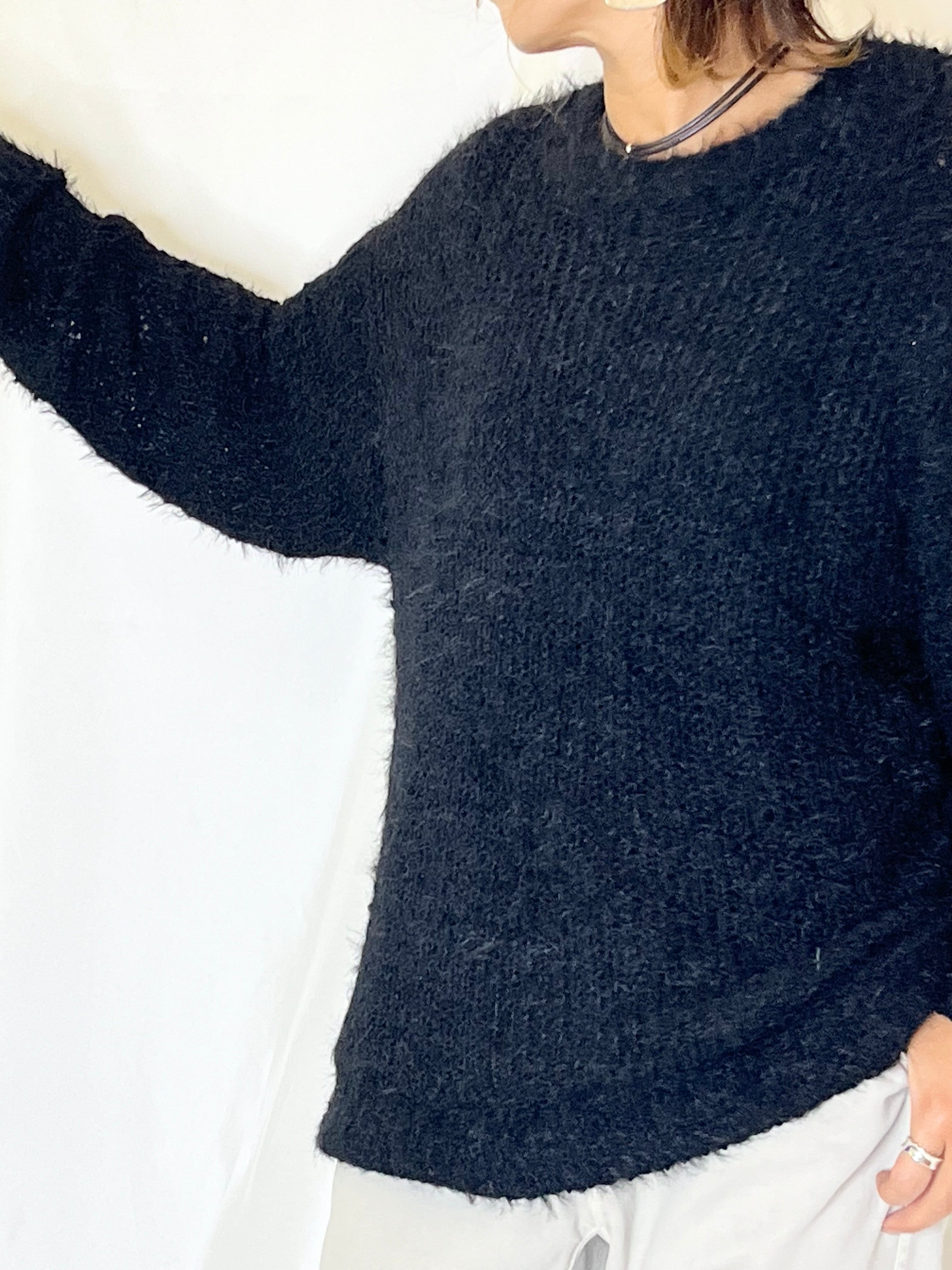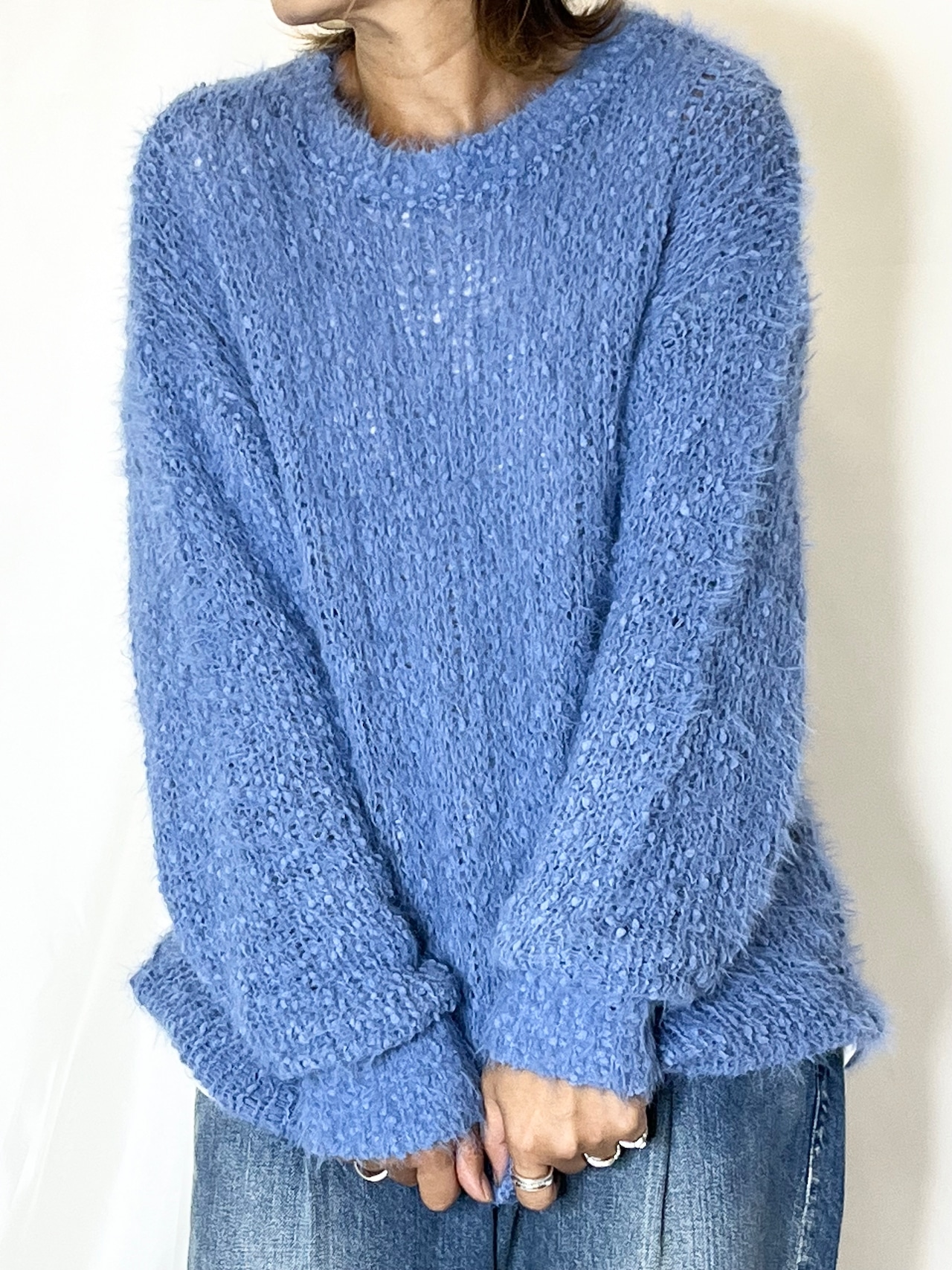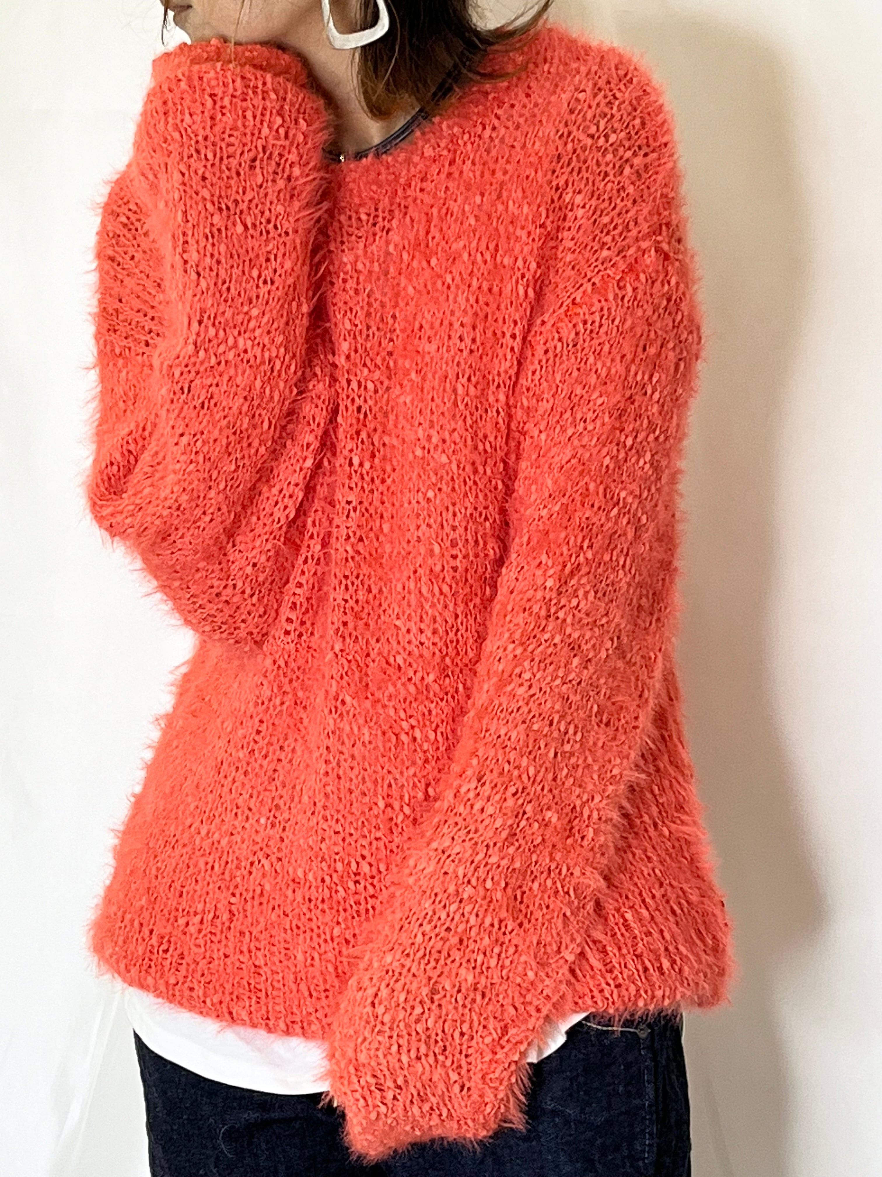 ポコポコしたニットとフェザーヤーンをミックスしたローゲージニット。