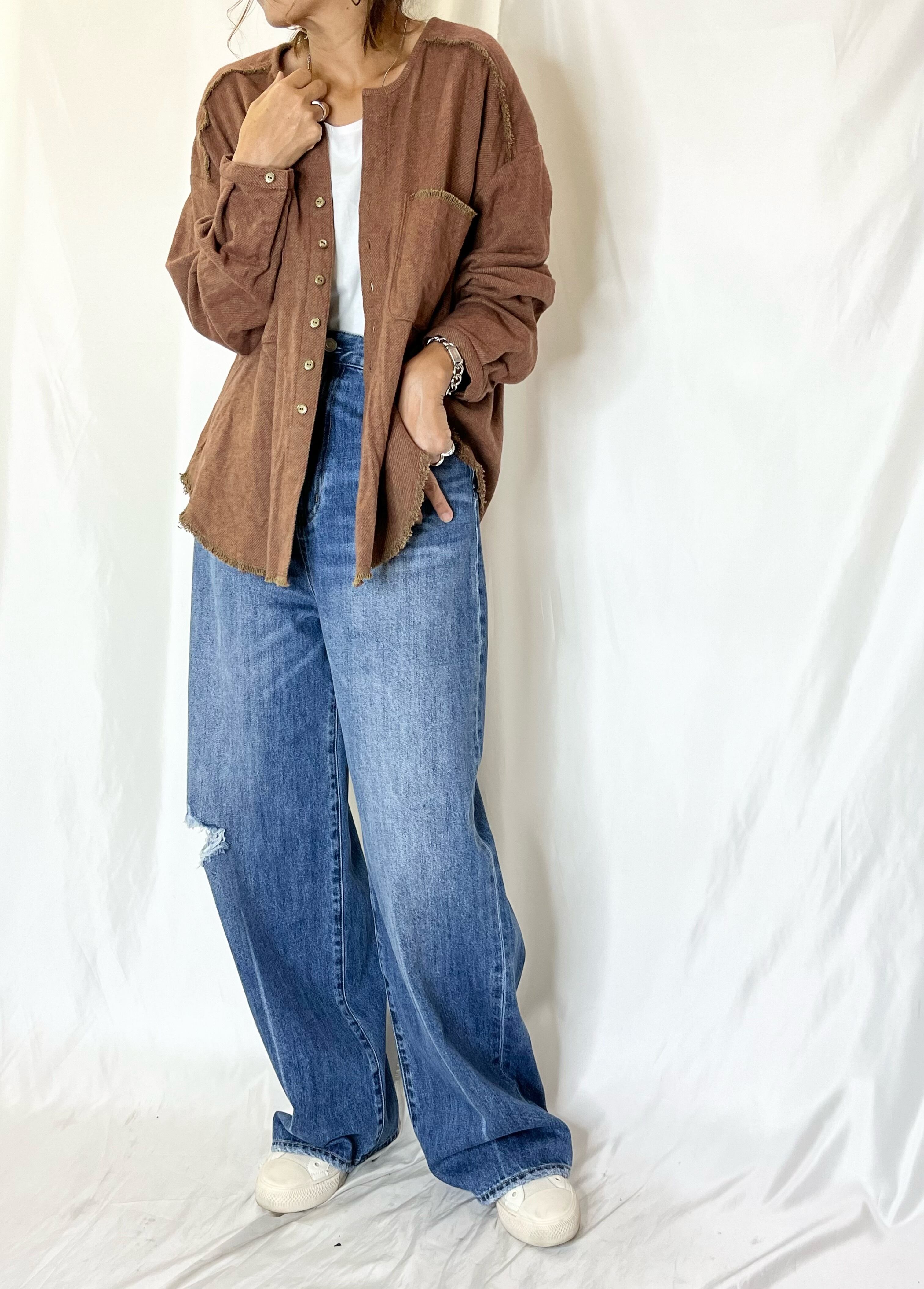 ポケット口、裾ヘムのフリンジ始末がポイント◎