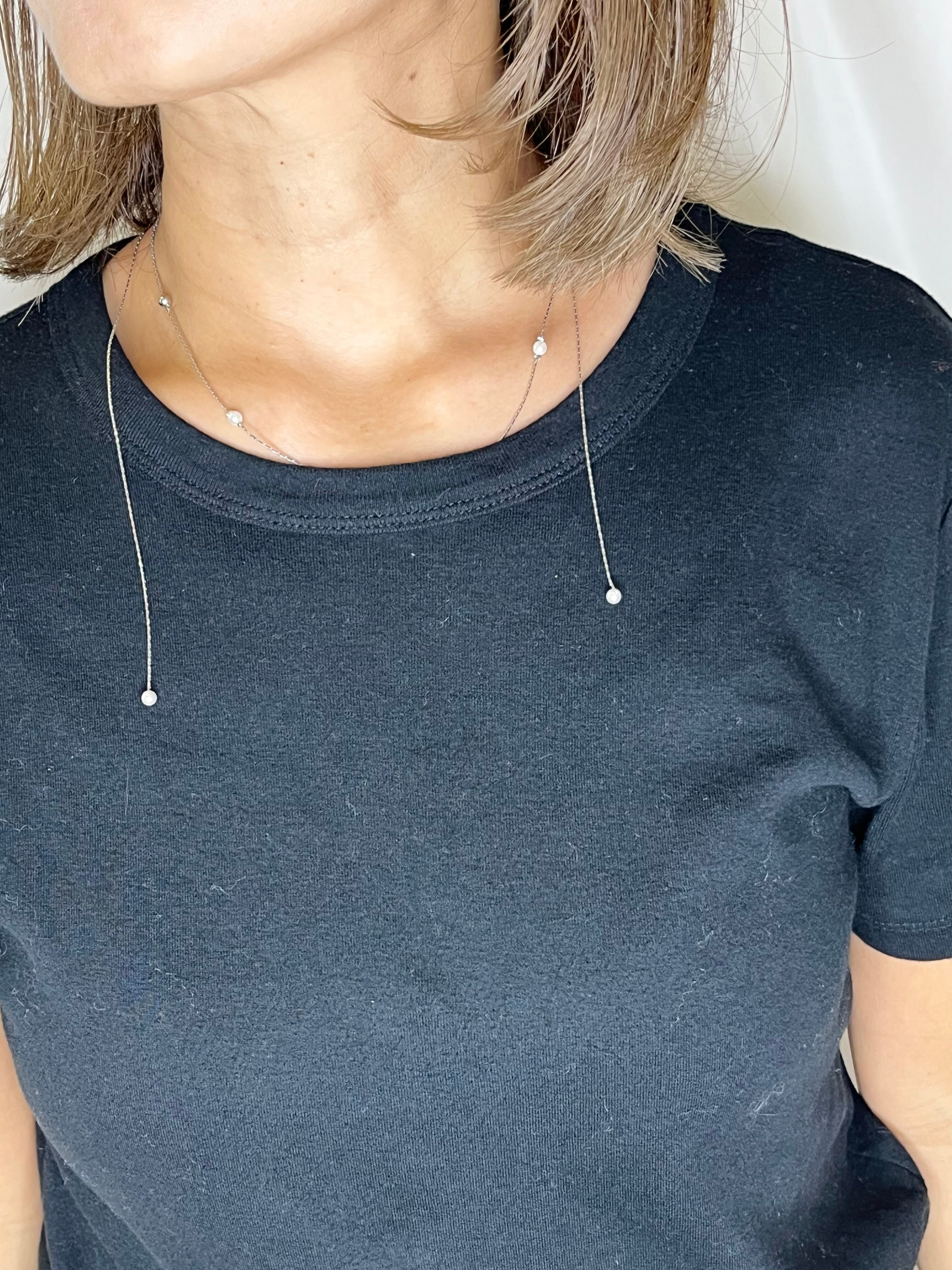 小さめパールと華奢なチェーンがミックスされたネックレス。