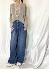 やや深めの股上とボリュームのあるストレートで抜け感をプラス。
