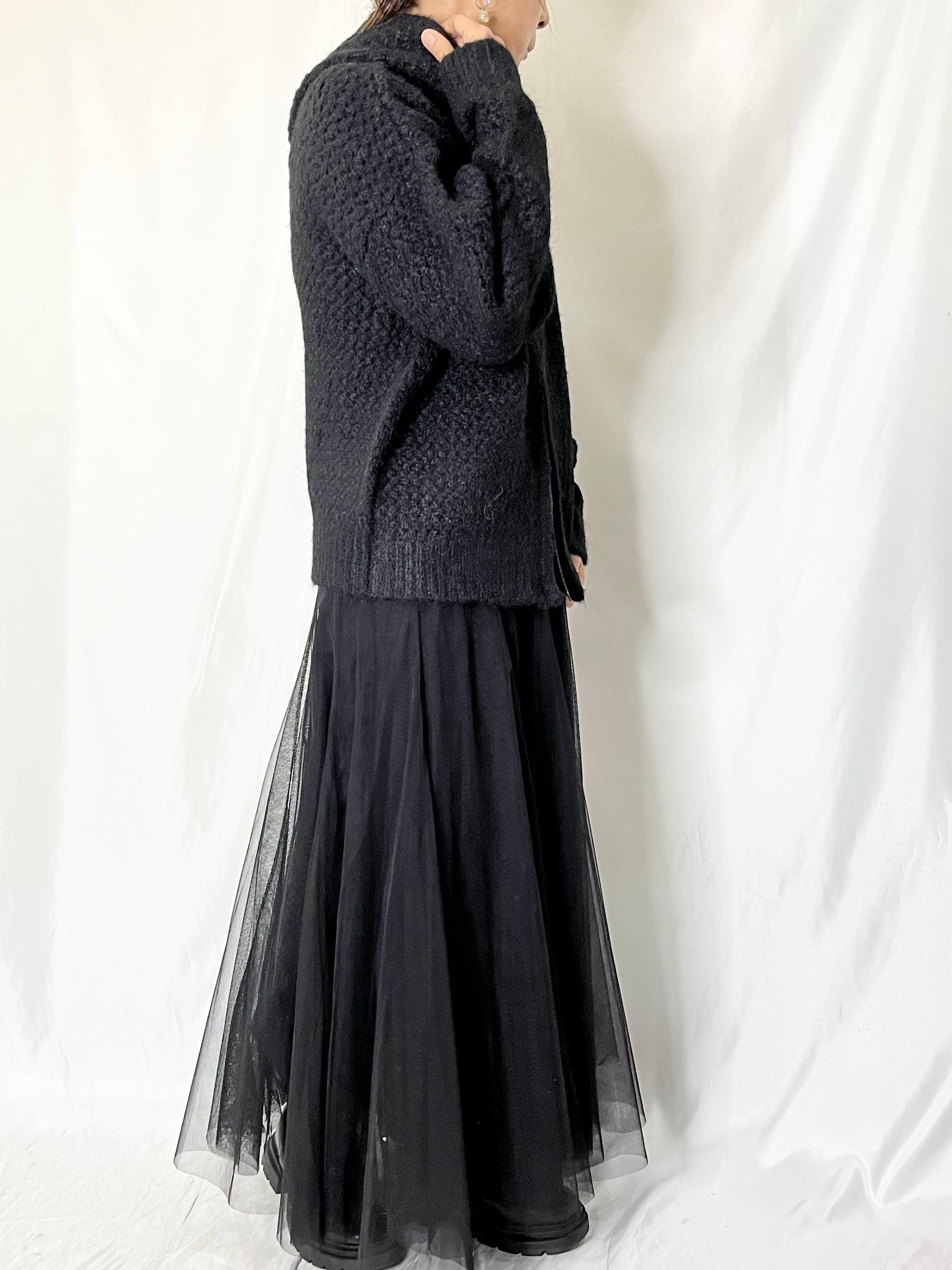 アウターの中にも着やすいサイズ感で、パンツ、スカート共にスタイリングしやすいデザインです。
