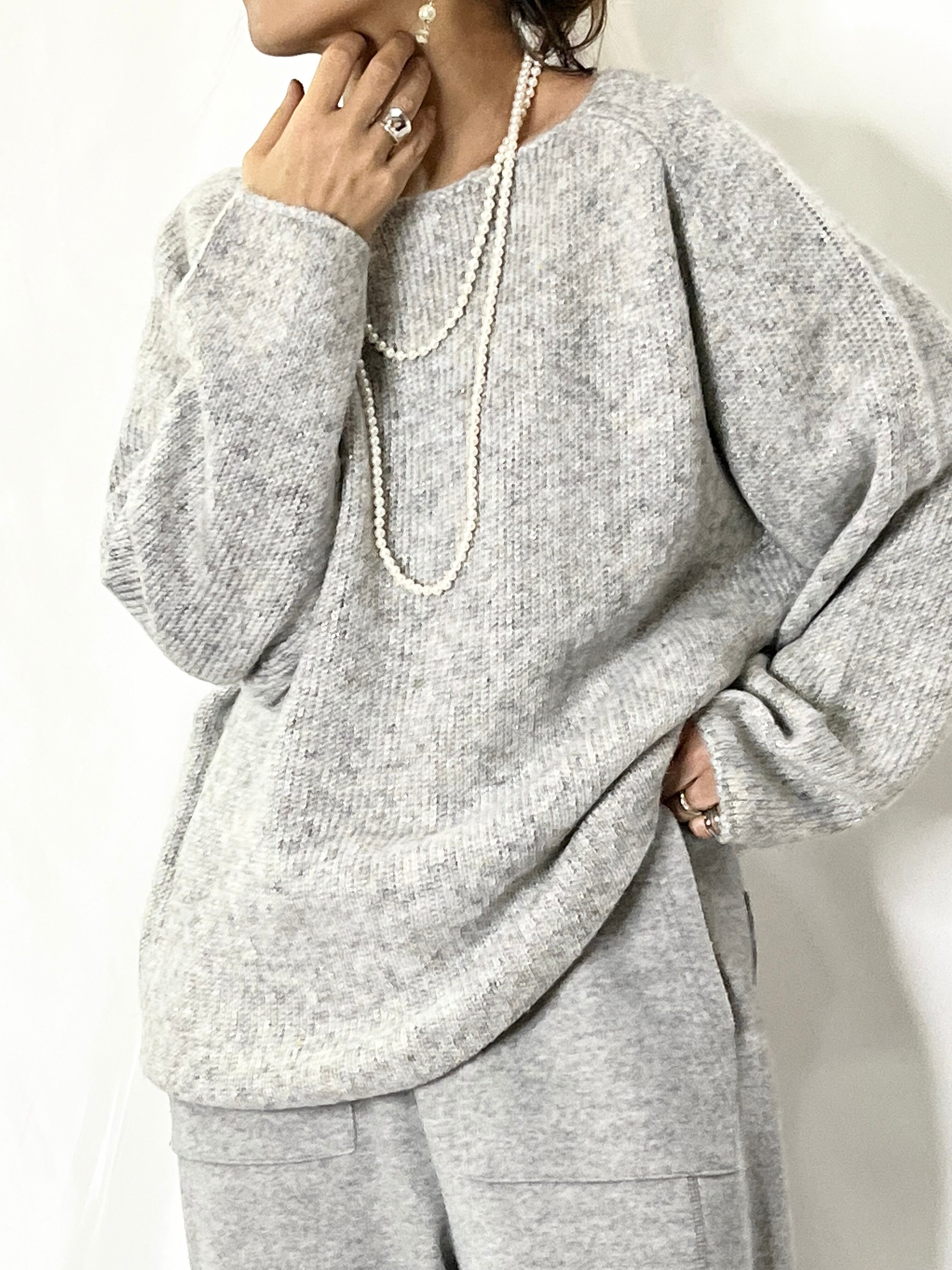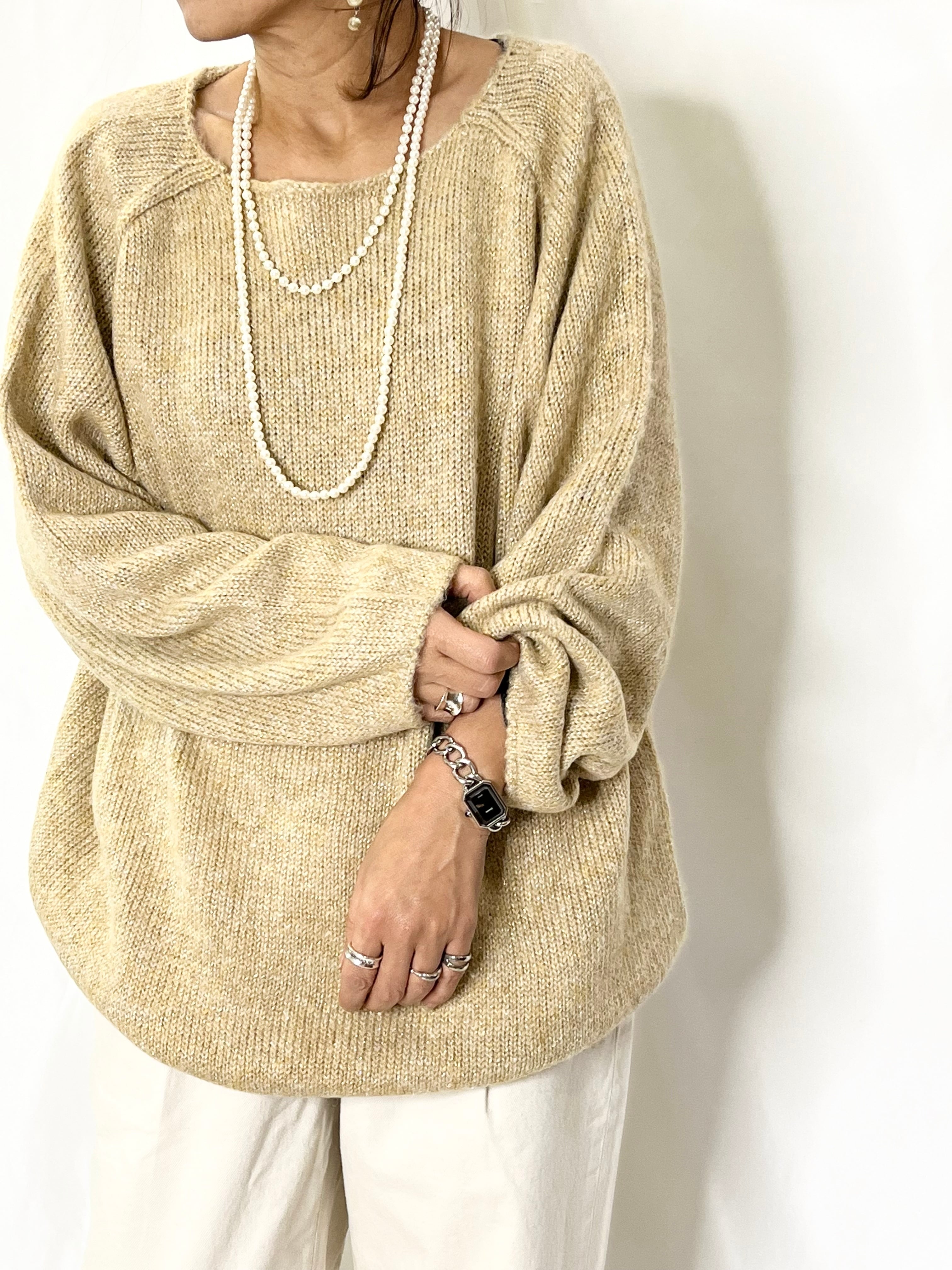 ラメが入ってる事でカジュアルになりすぎず、ルーズさの中に女らしさが入った可愛いニットです。