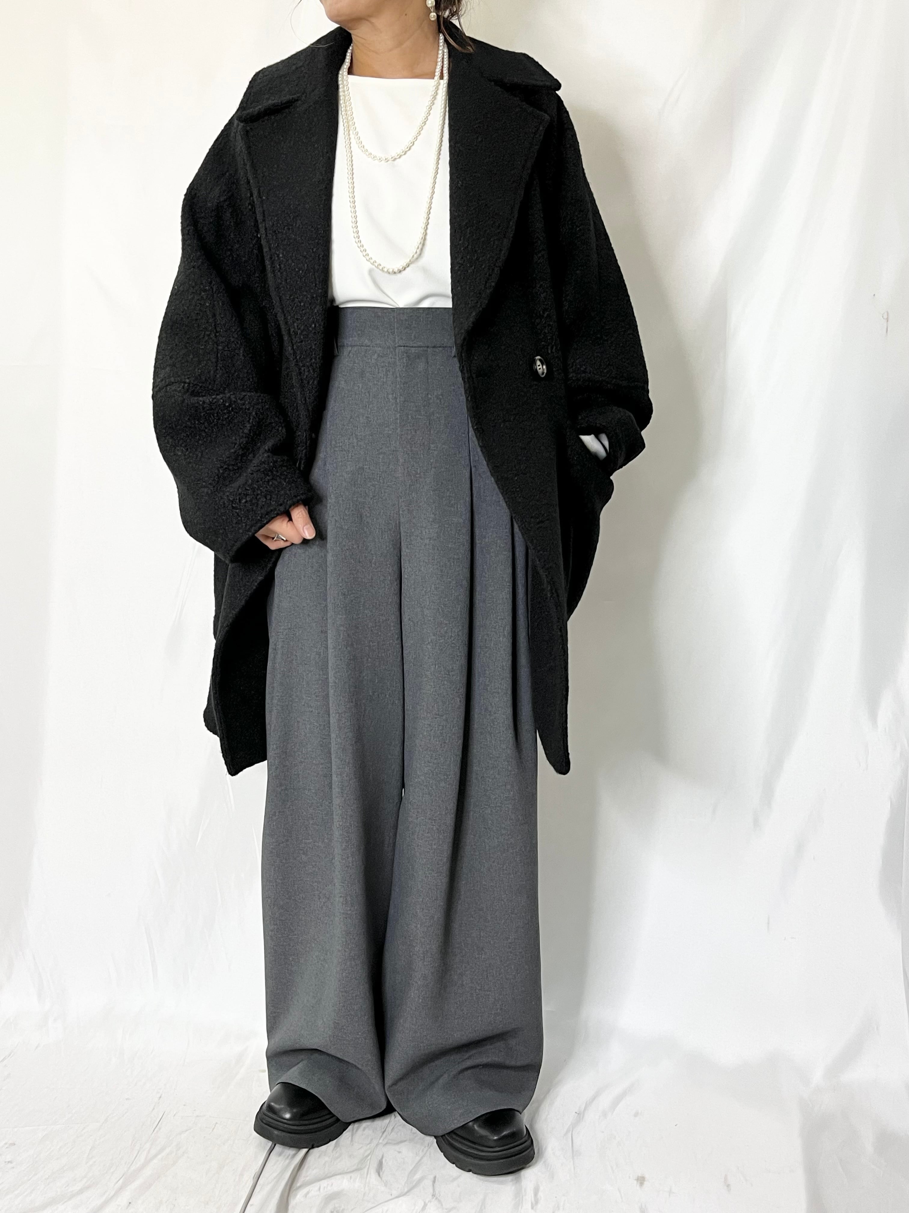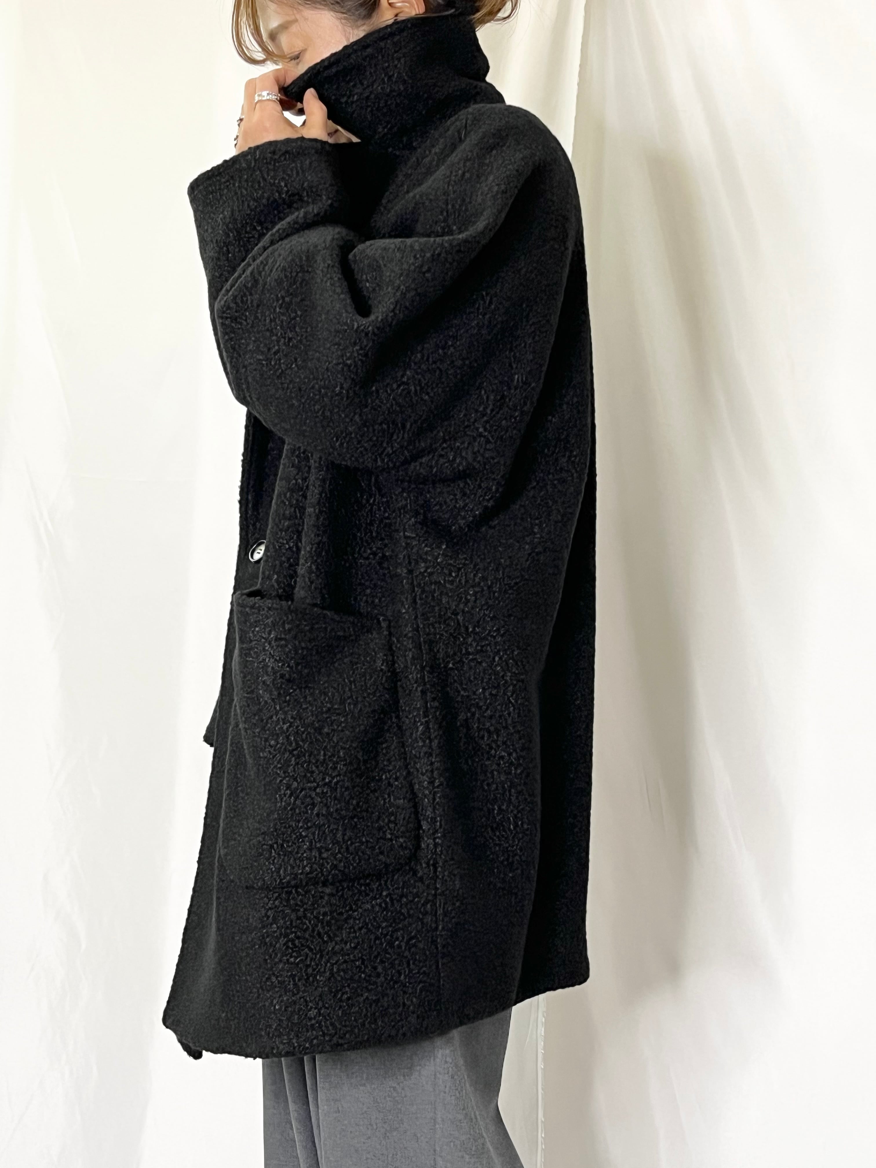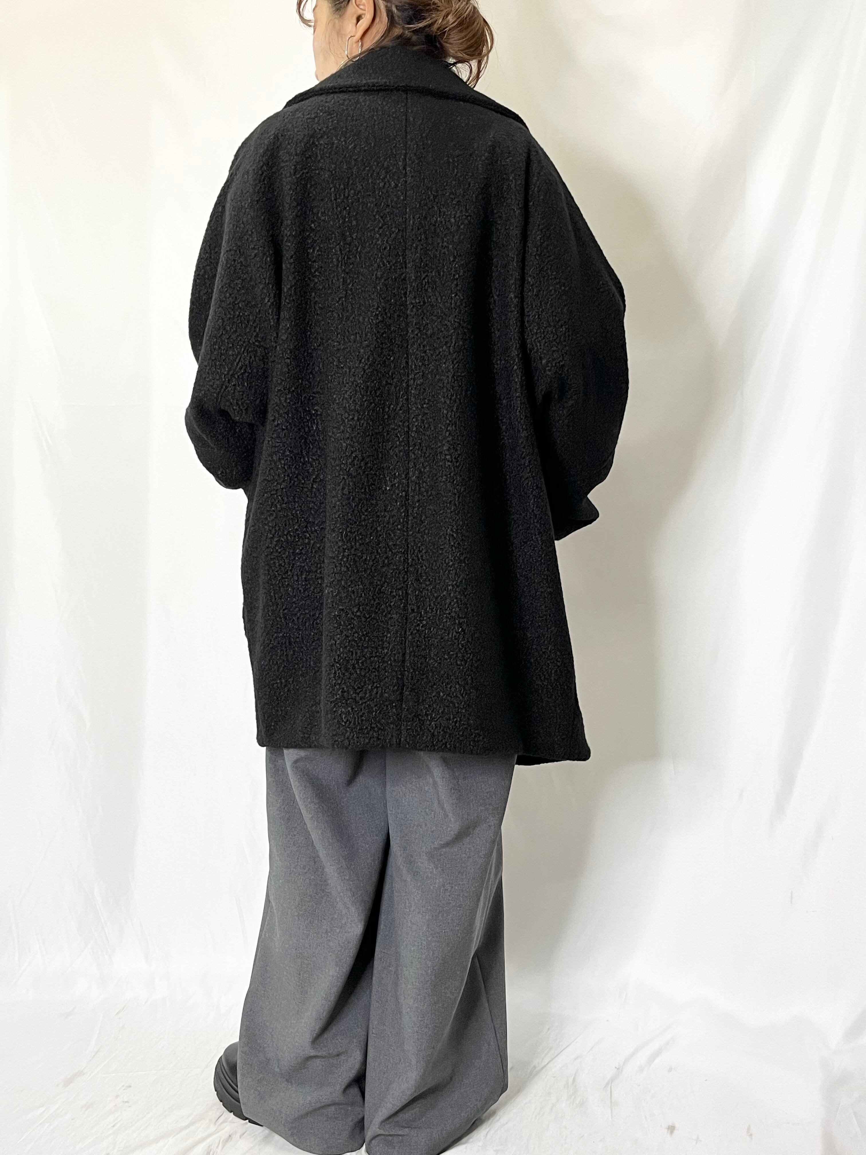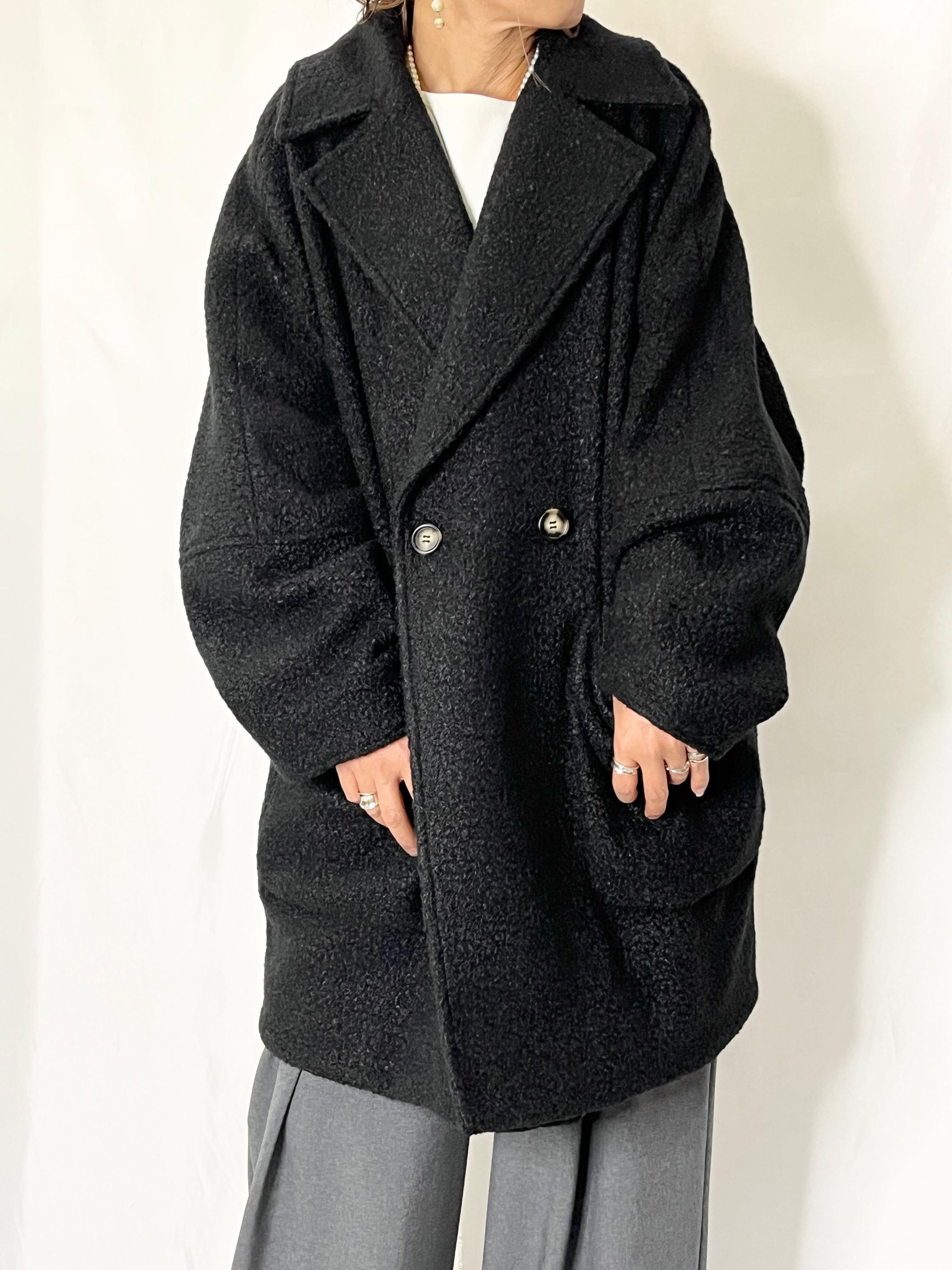 ブークレーの表情のある生地を使用したゆったりコートです。