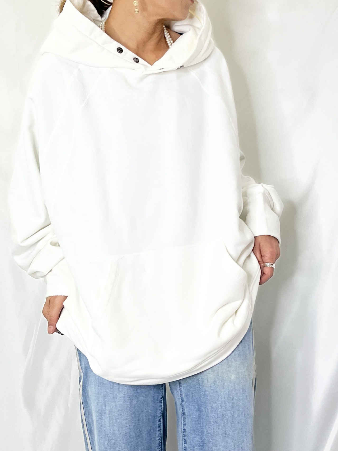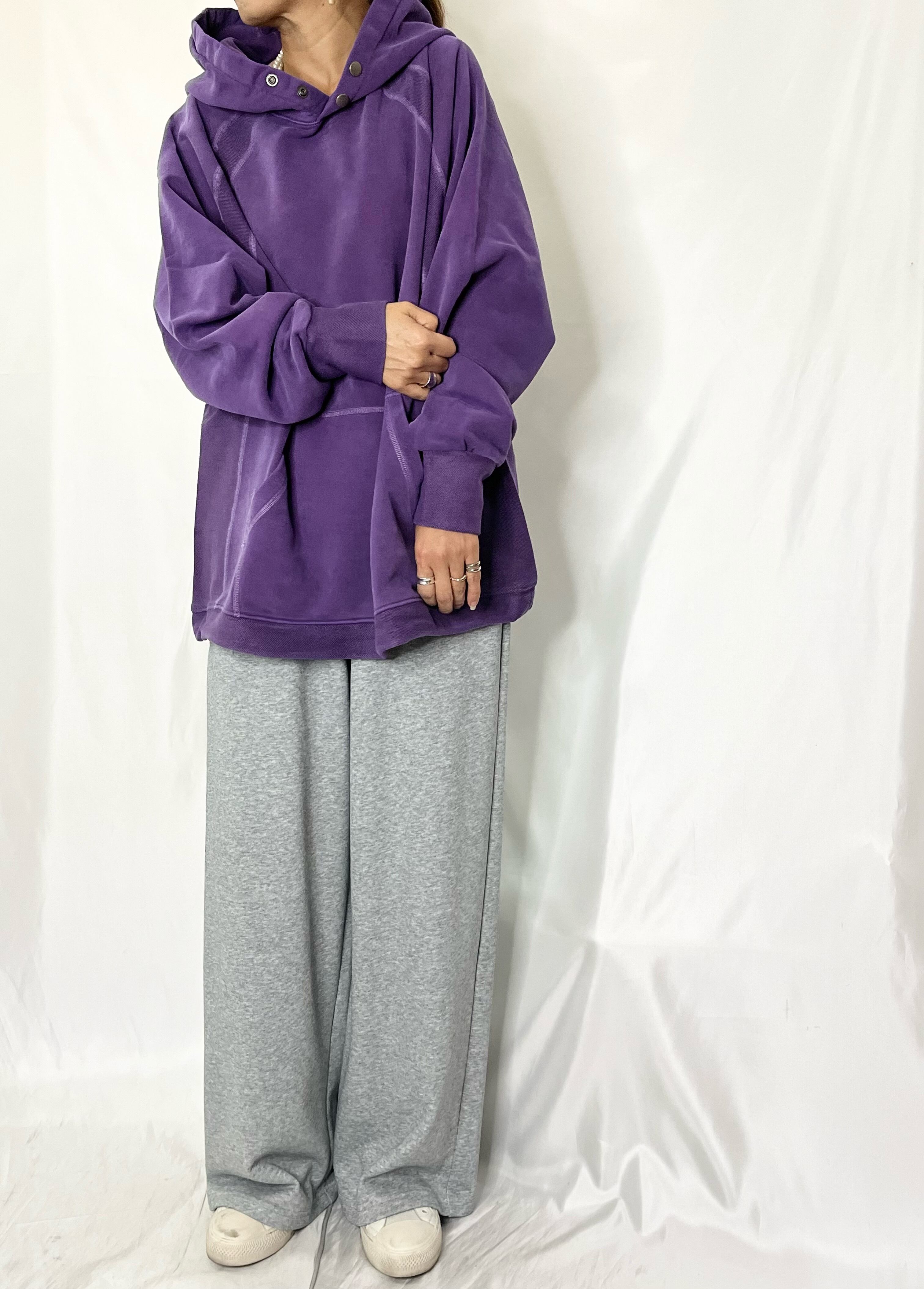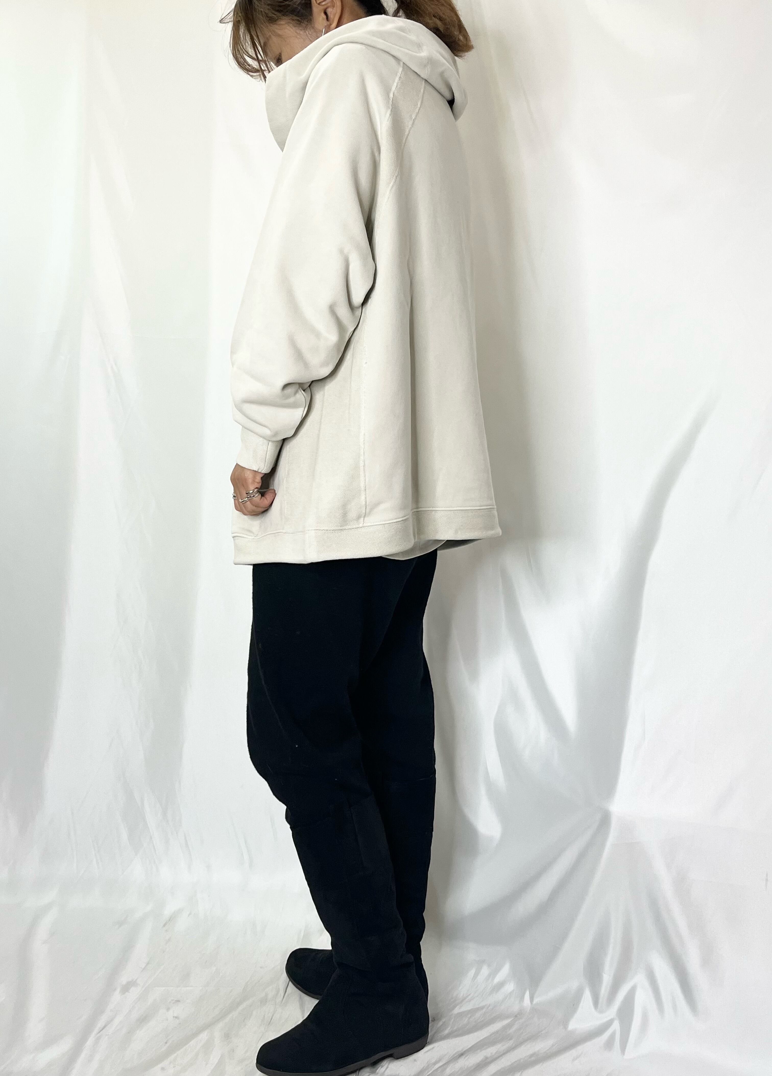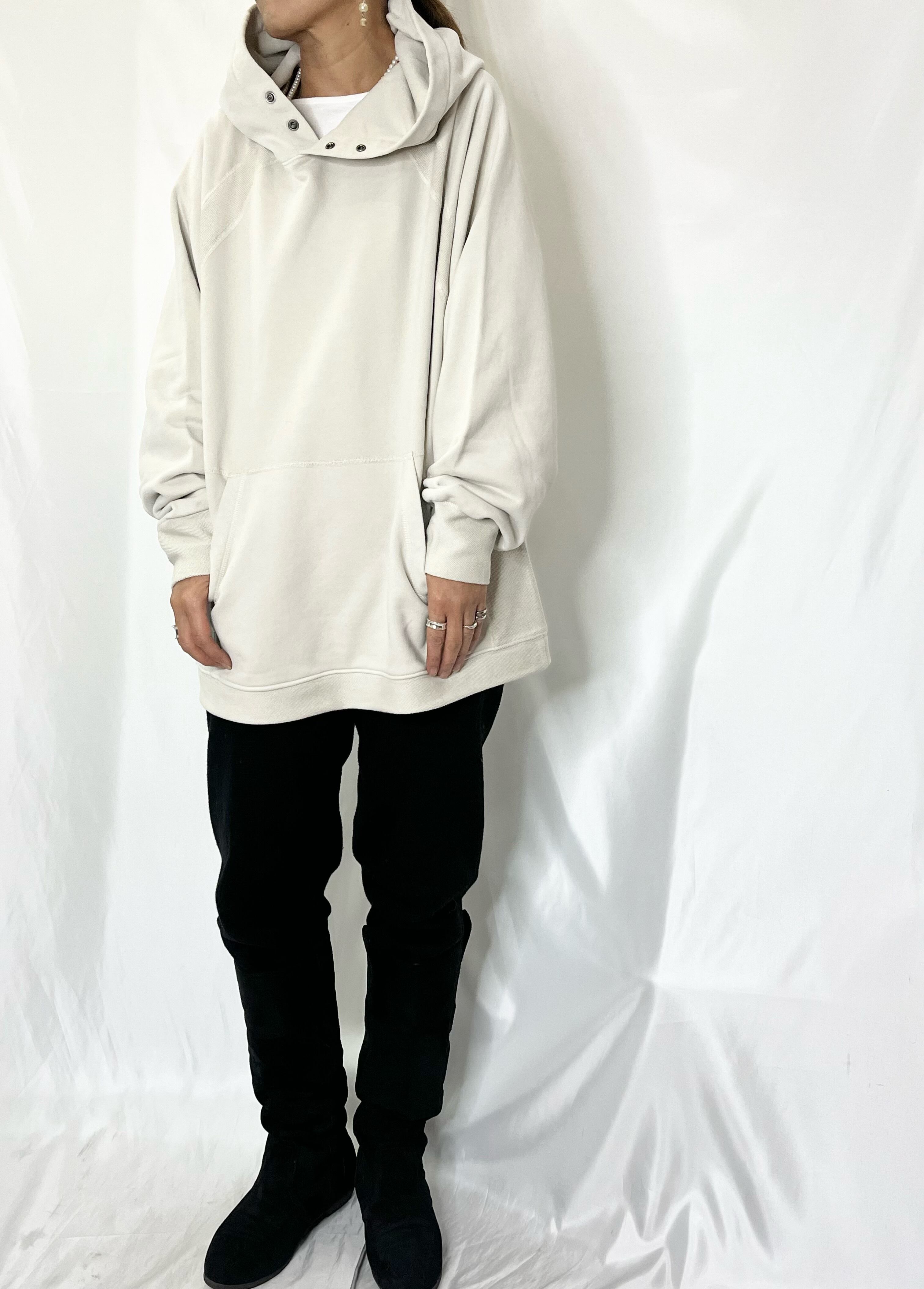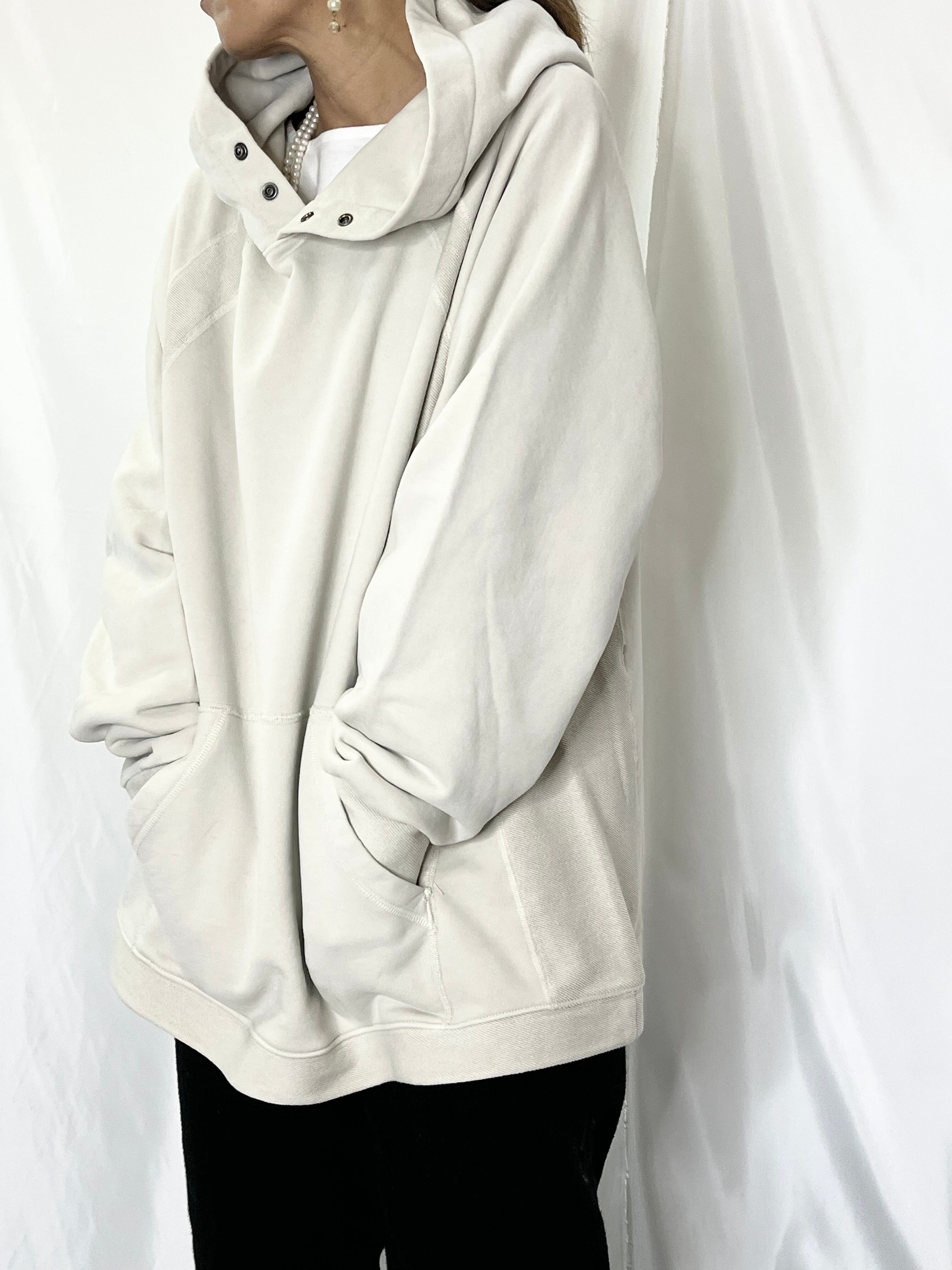 裏毛スウェットよりも柔らかく表面がしっとりした温かみのある素材を使用したフードプルオーバー。