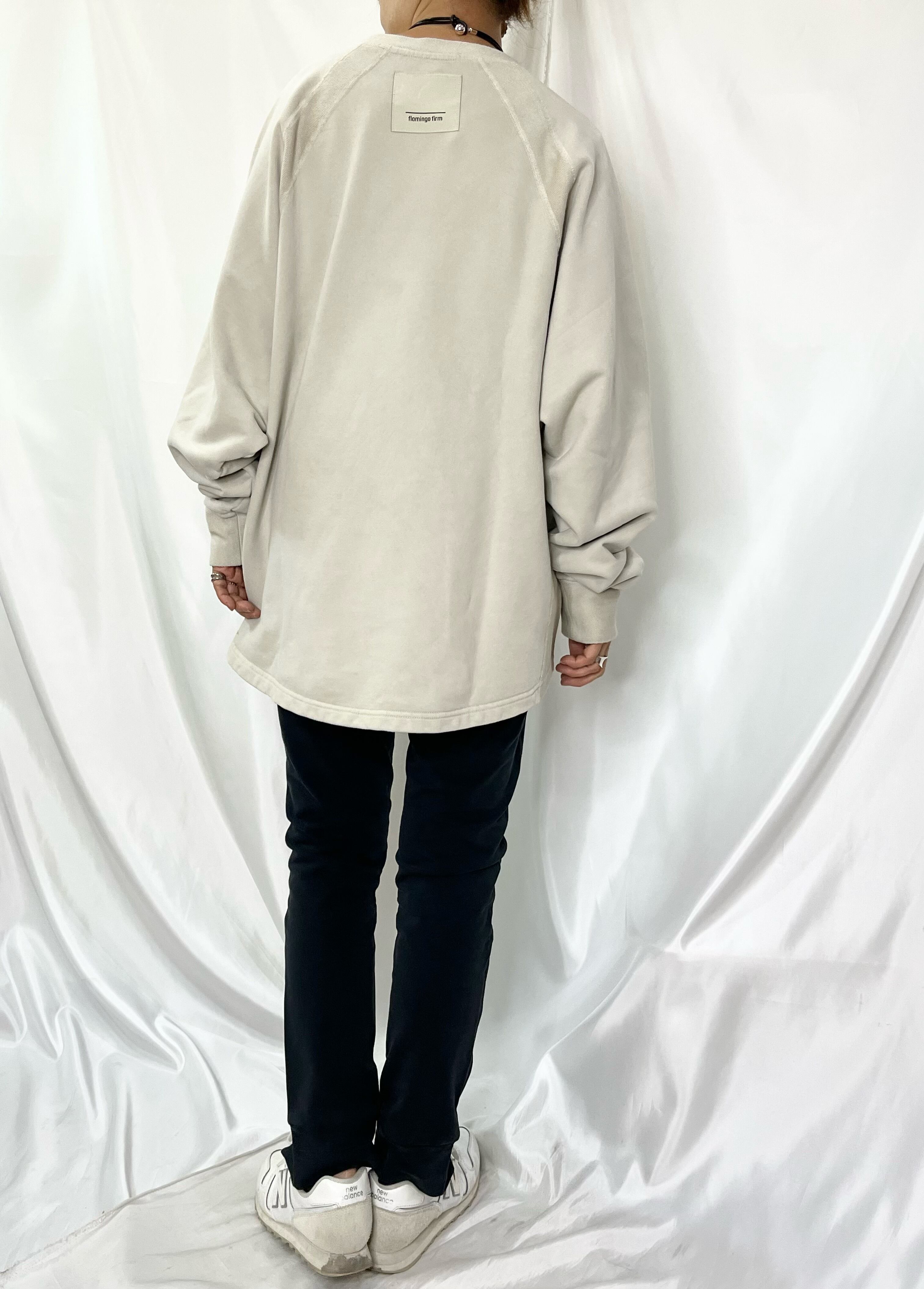 flamingofirmらしいピグメント加工されたカットパンツ。