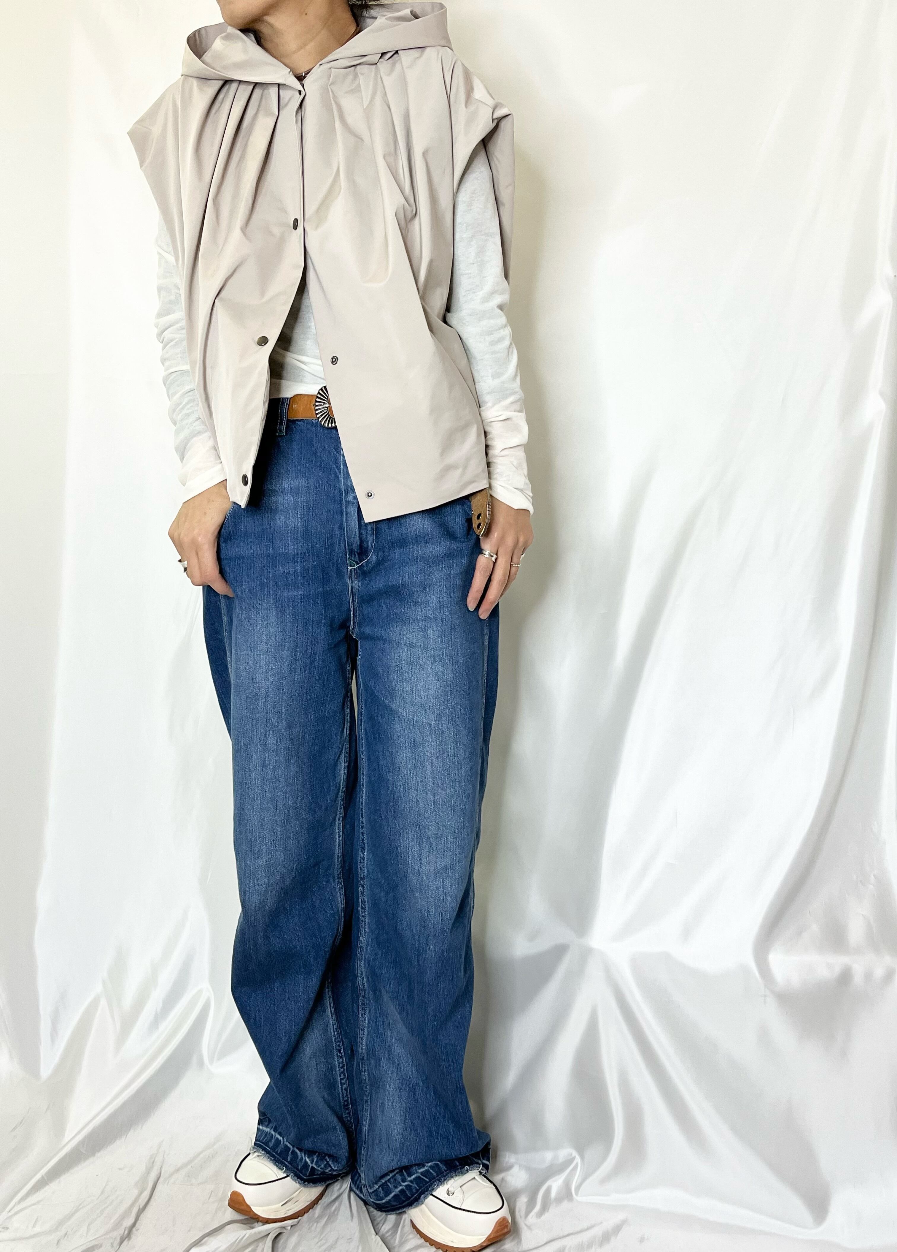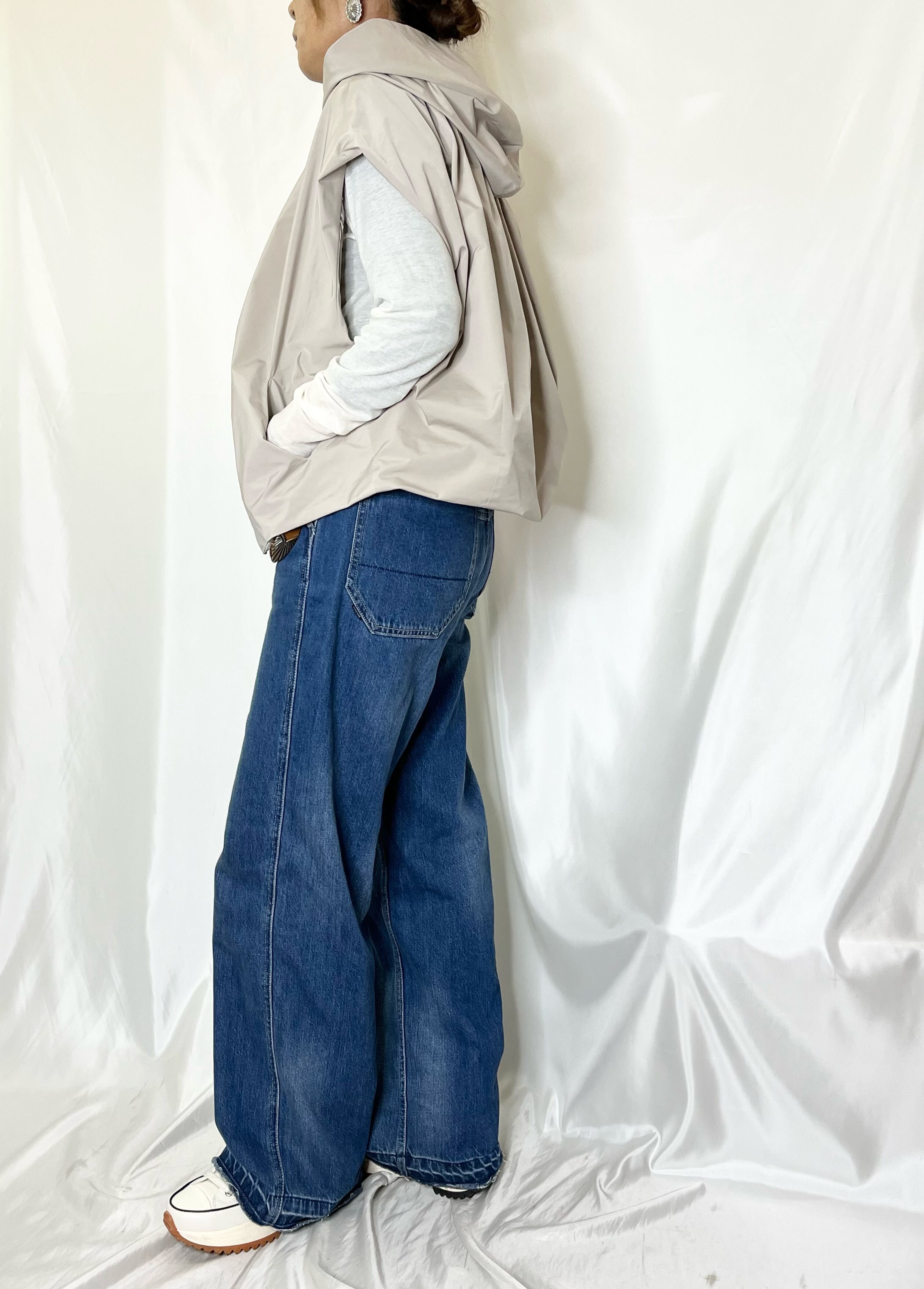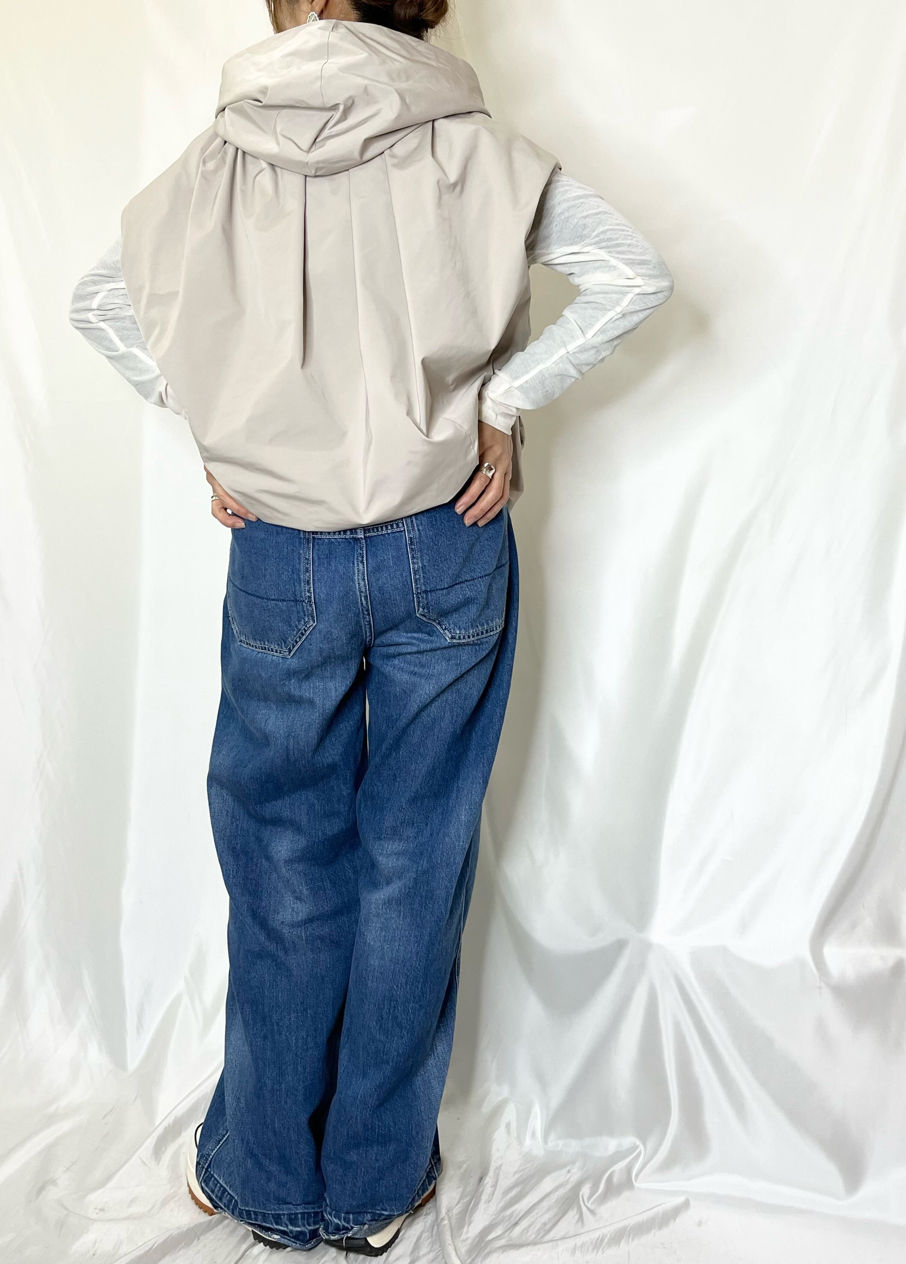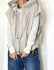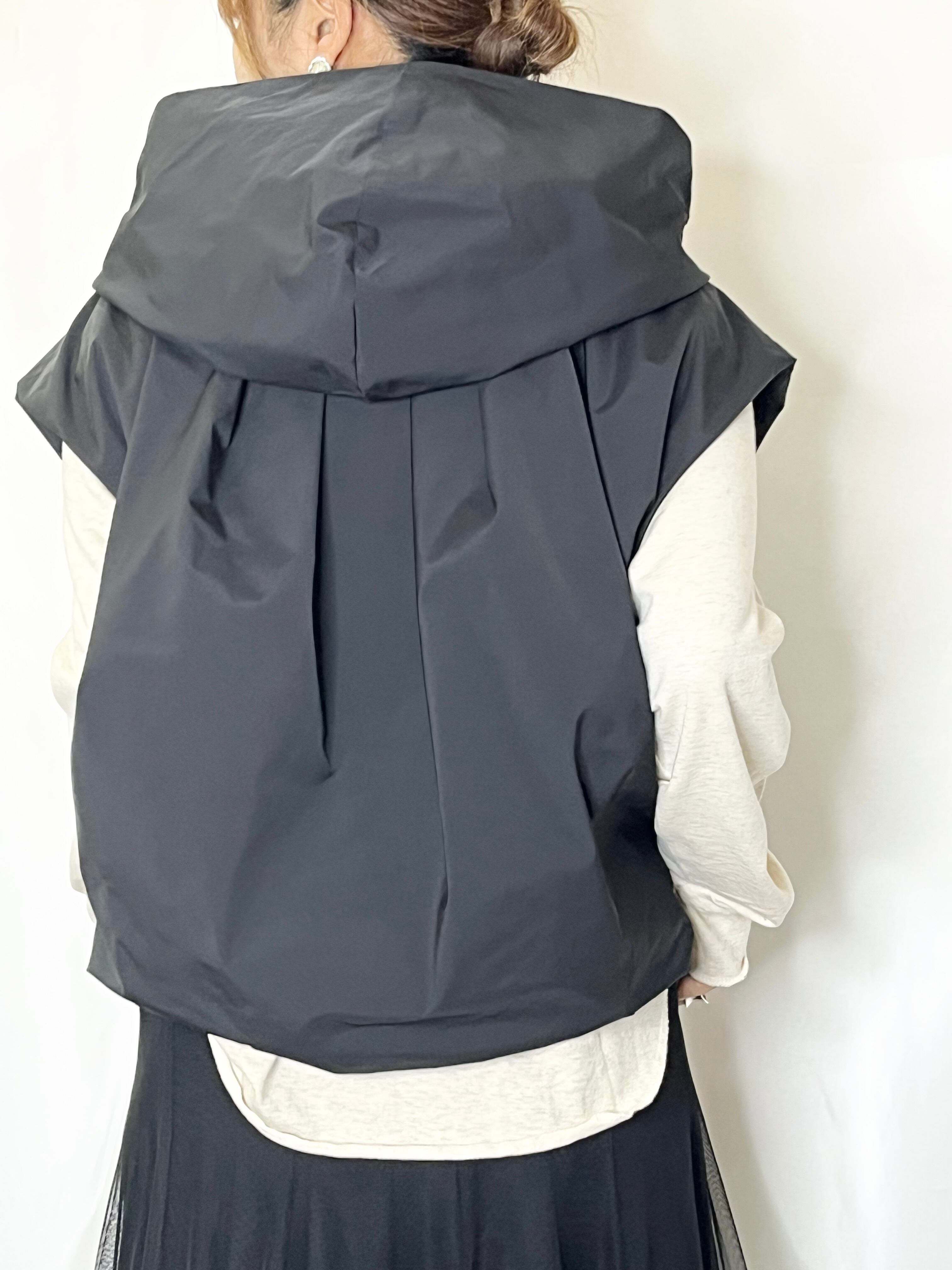 ゆったりバルーンシルエットのタフタベスト。