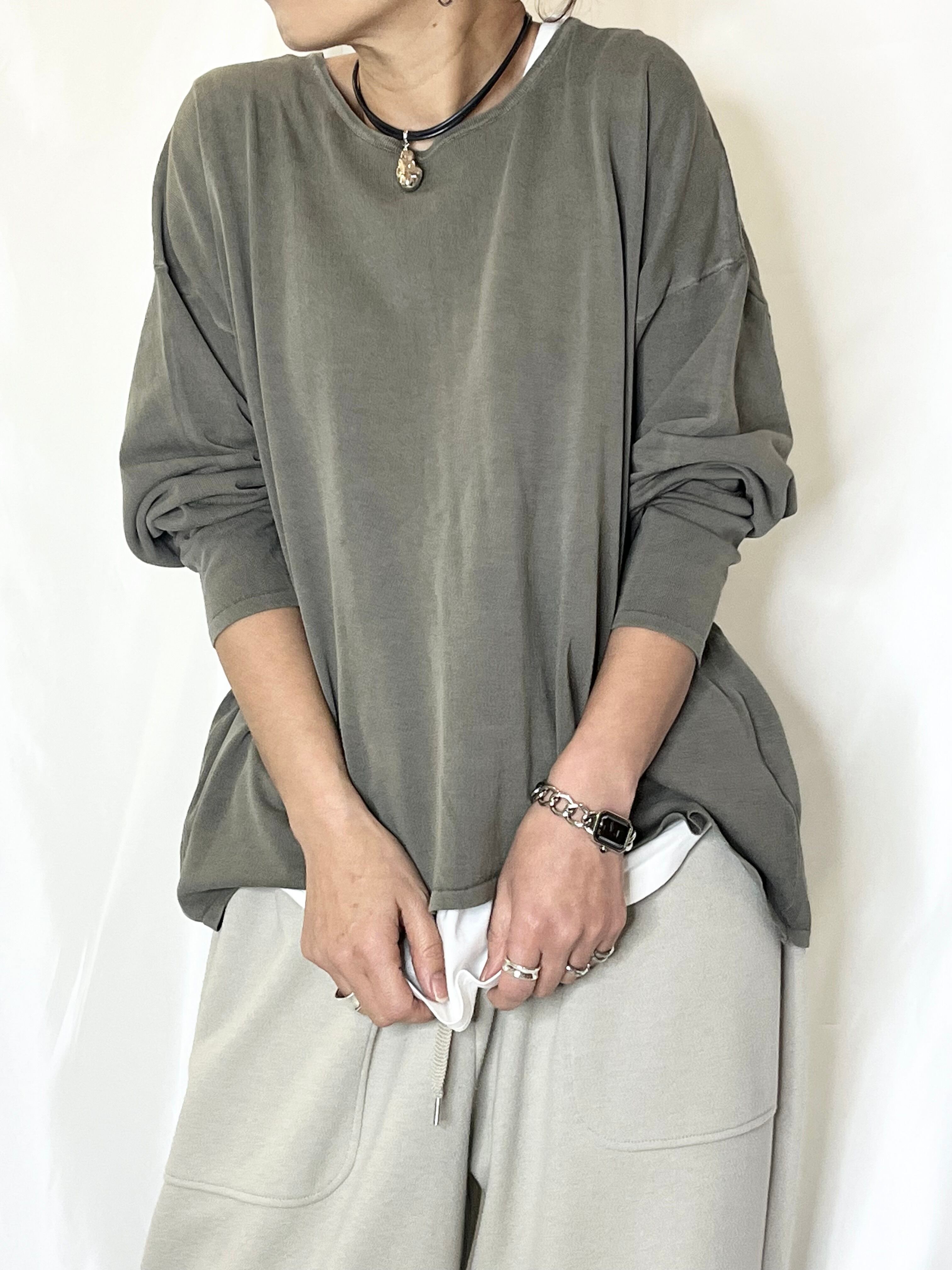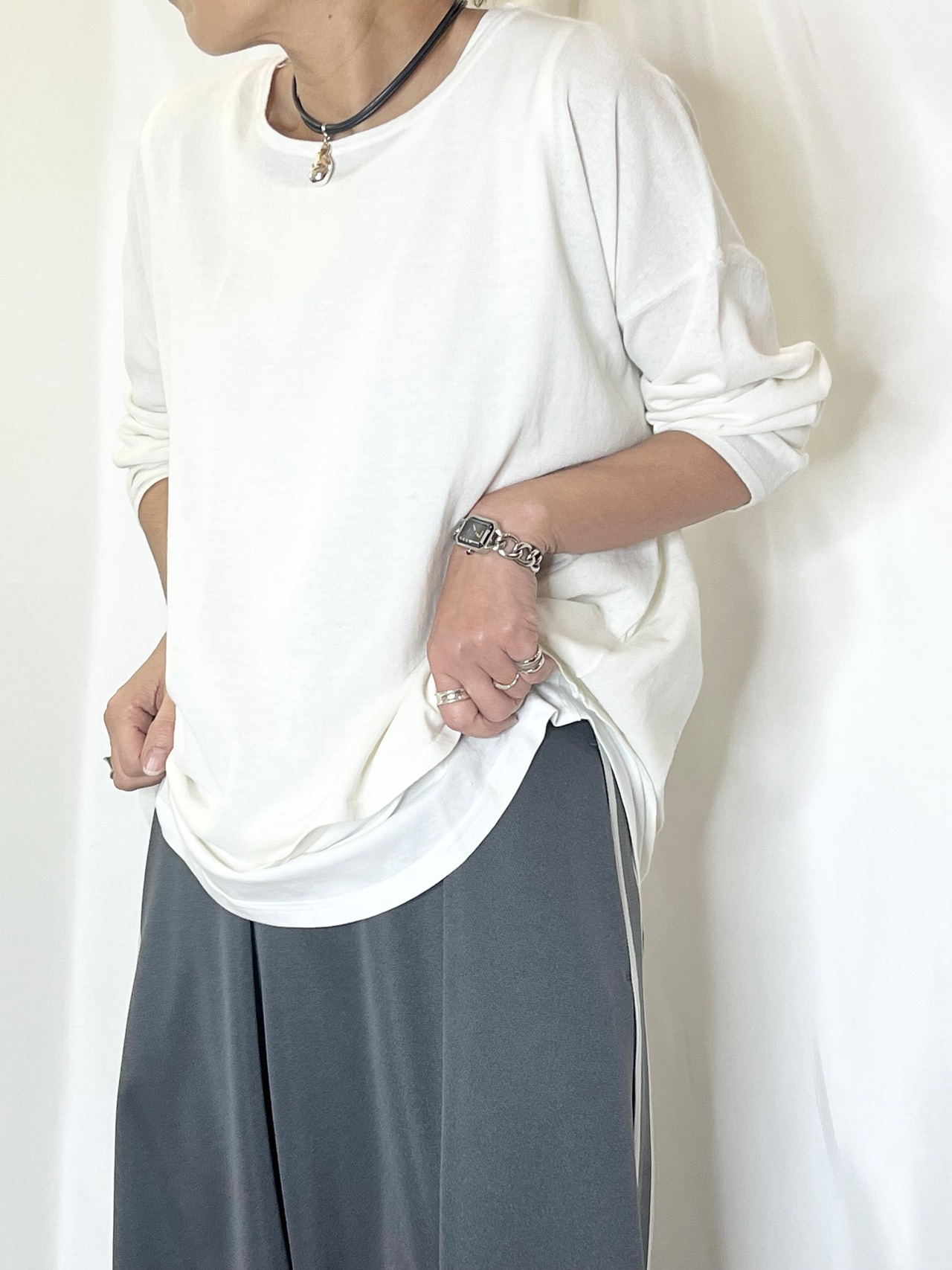 少しショート丈なので、タンクトップとのレイヤードもオススメ。